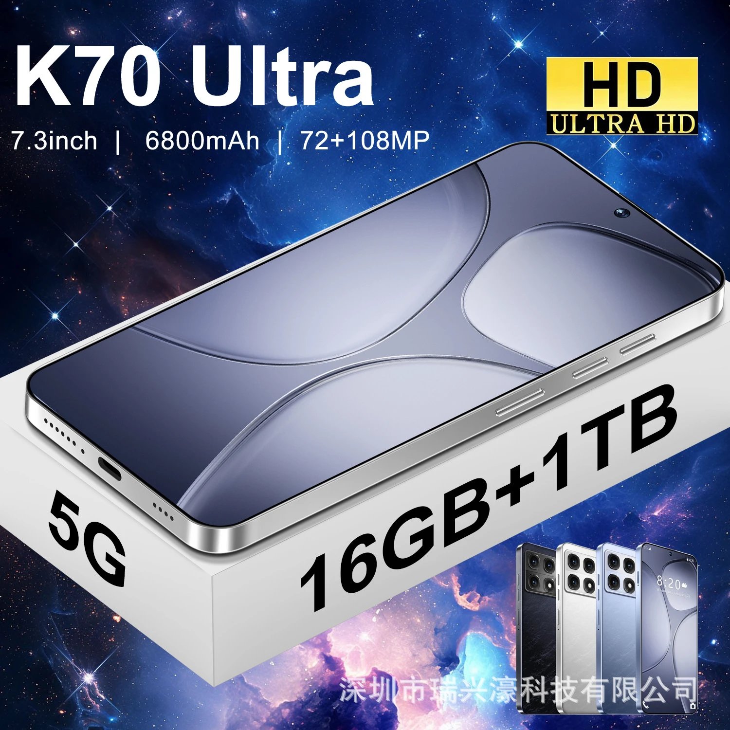 手机 新款K70 Ultra穿孔7.3大屏16+1TB 安卓13 爆款便宜