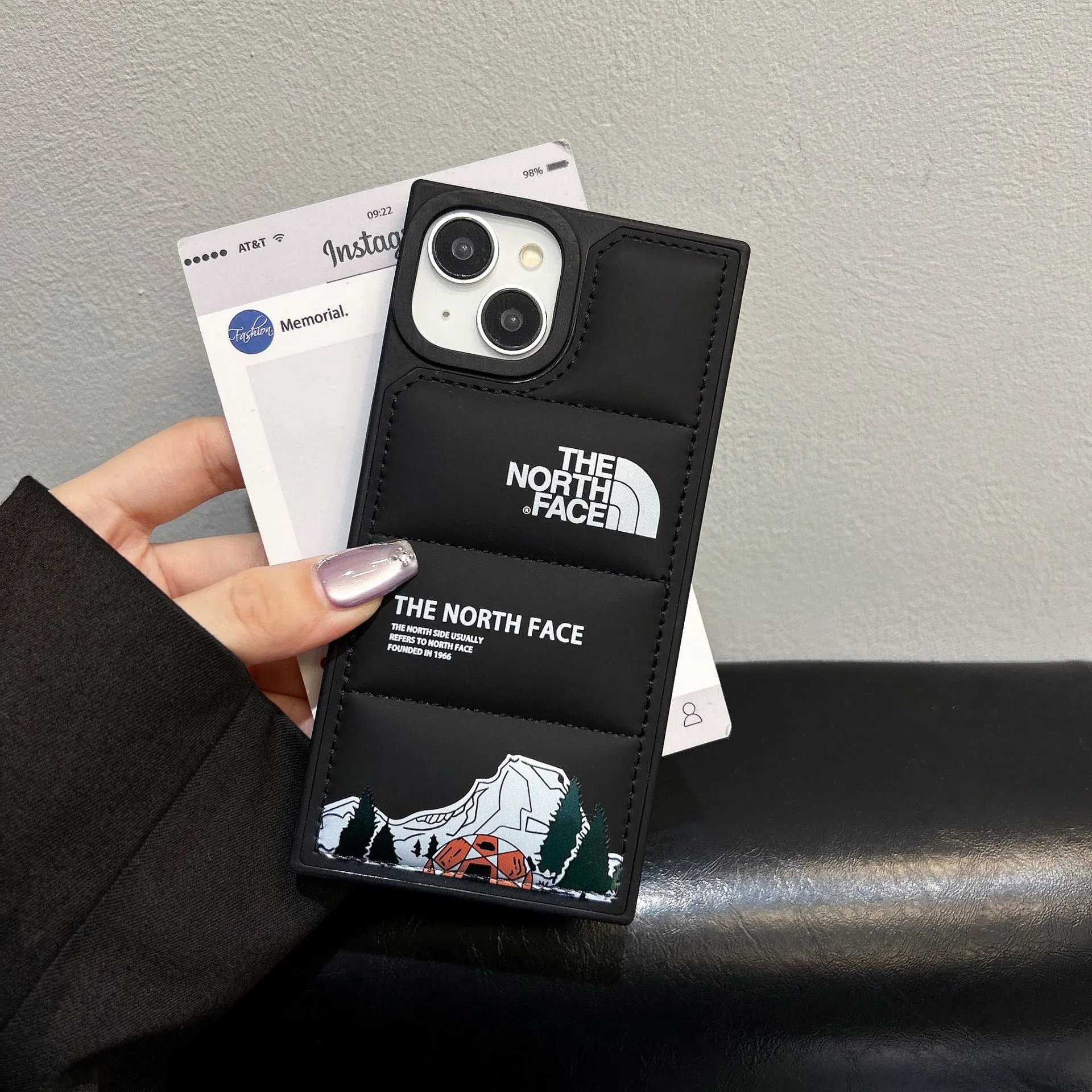 方形充棉皮质羽绒服苹果16promax手机壳iPhone1315PM情侣