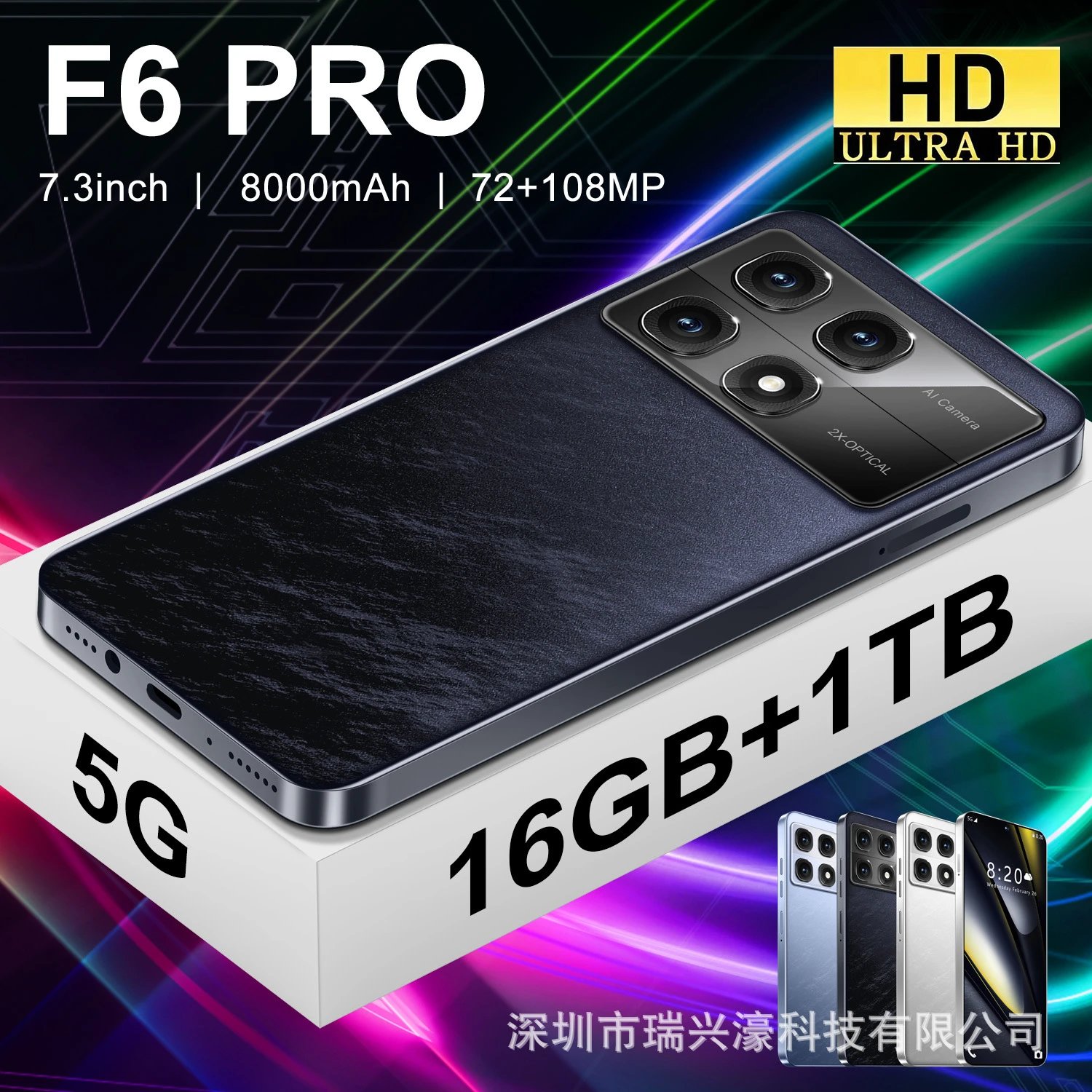 2025新款手机 F6 PRO 16+1TB穿孔7.3安卓13爆款便宜手机