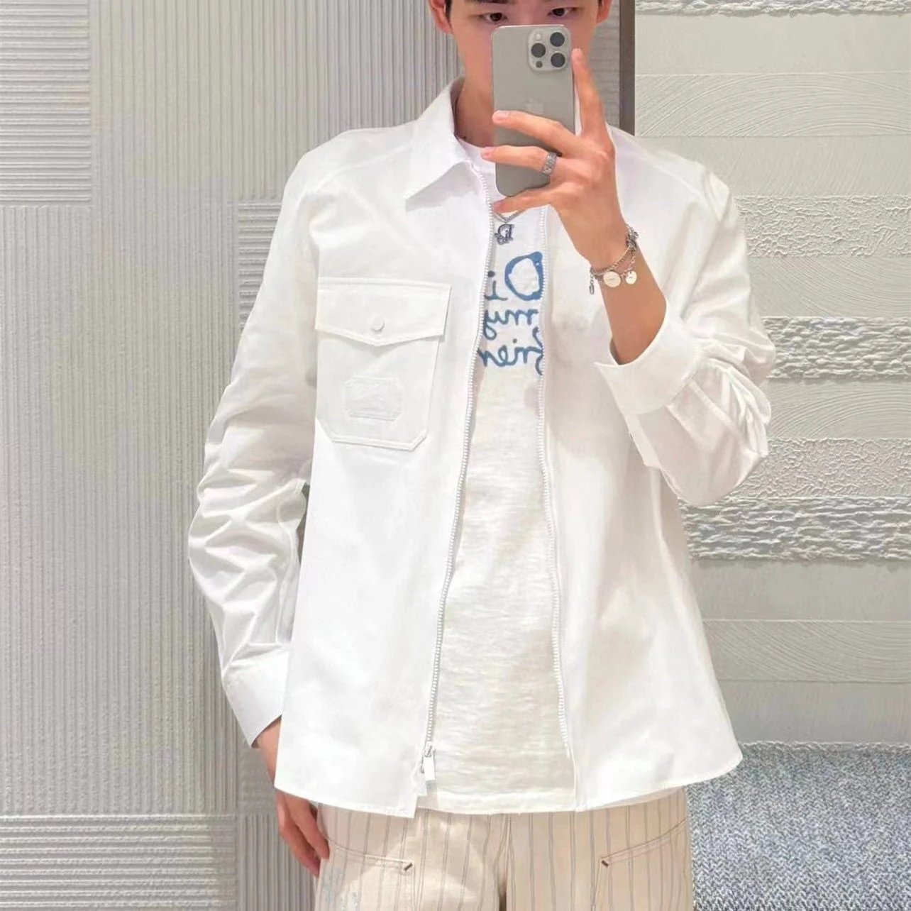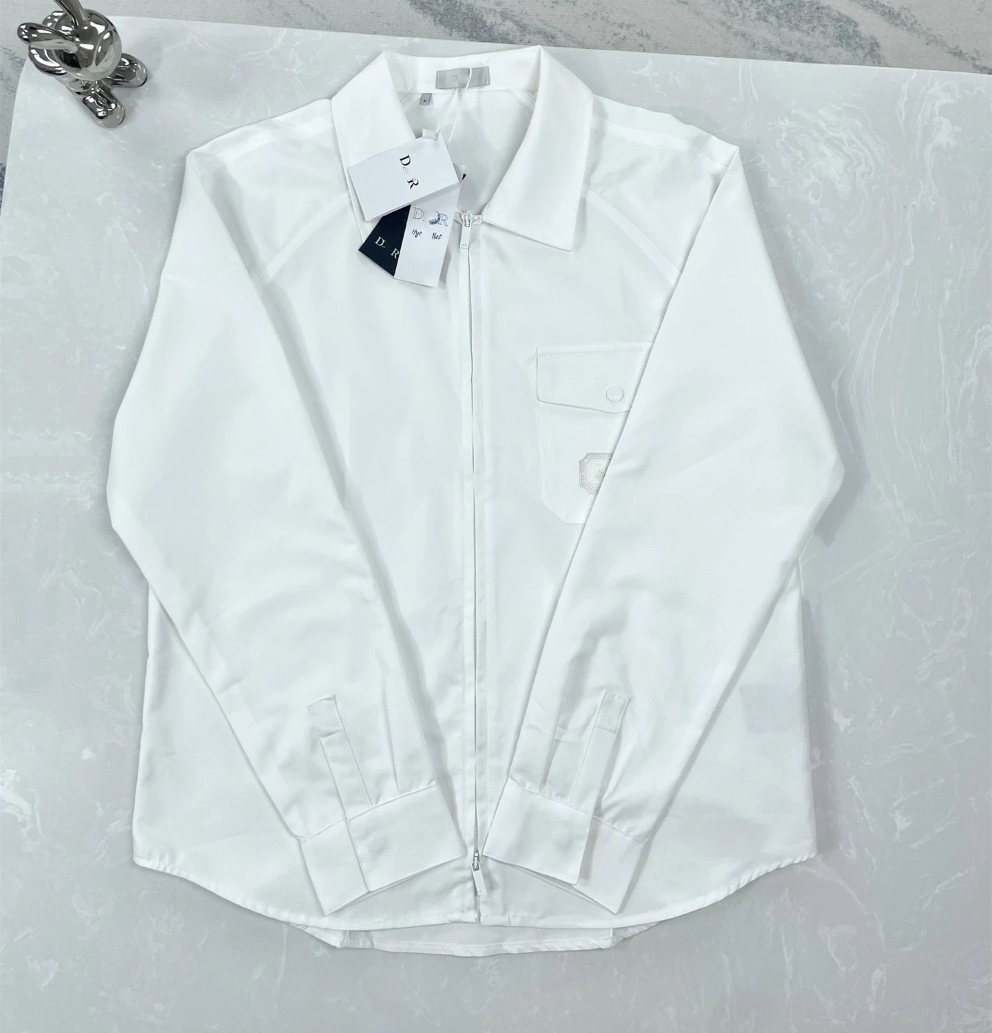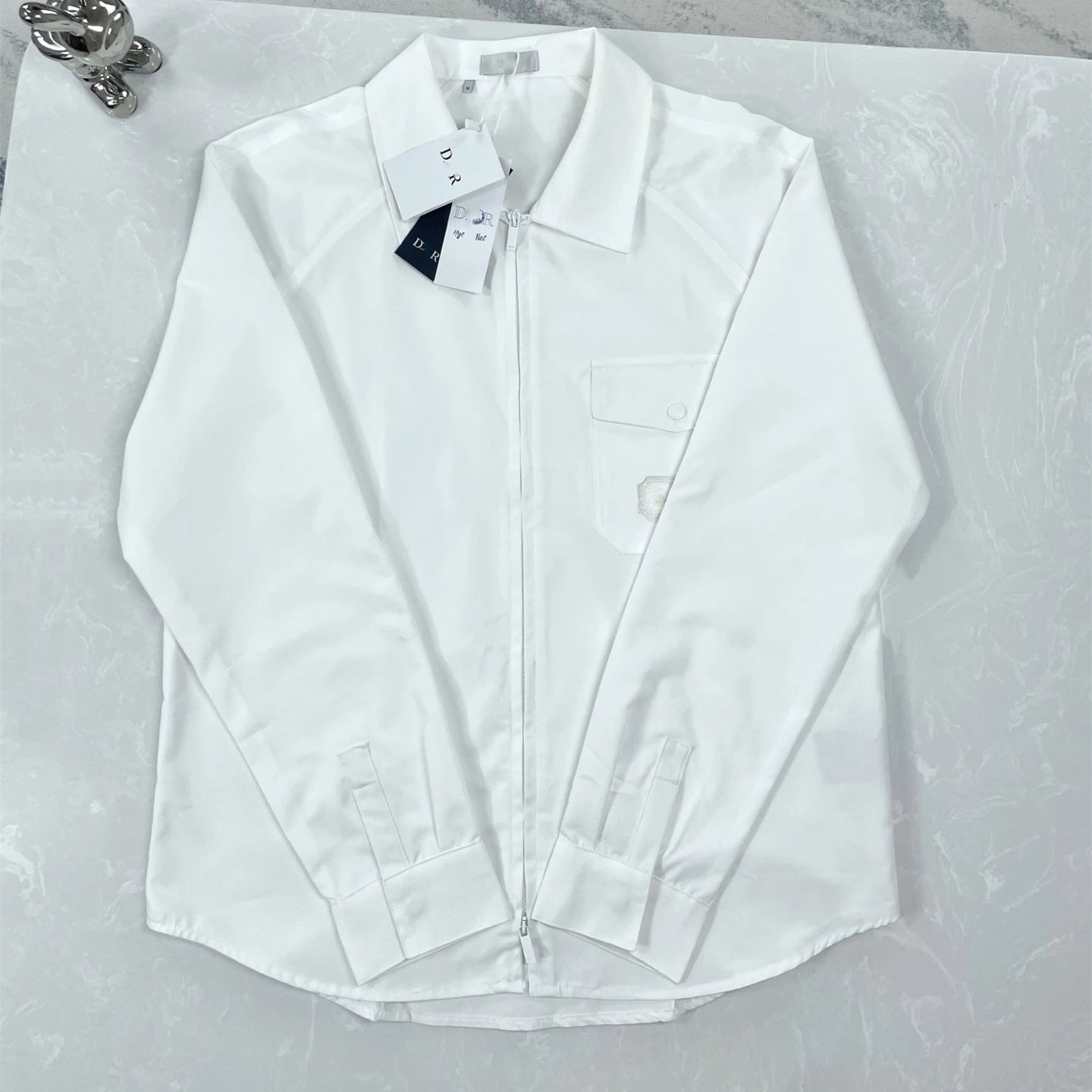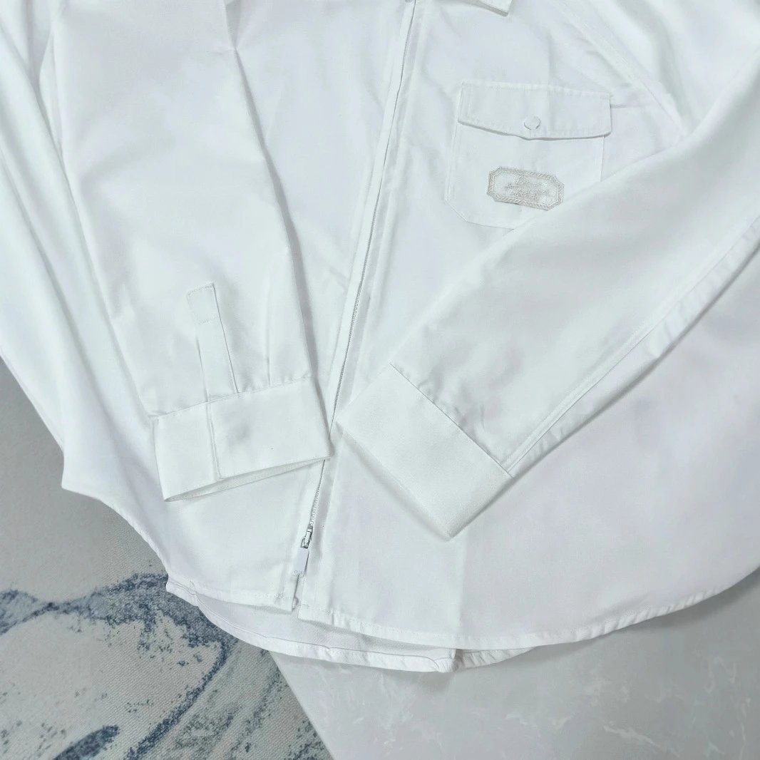 本2025早秋新款DI家白色棉质斜纹布拉链白衬衫开衫男女