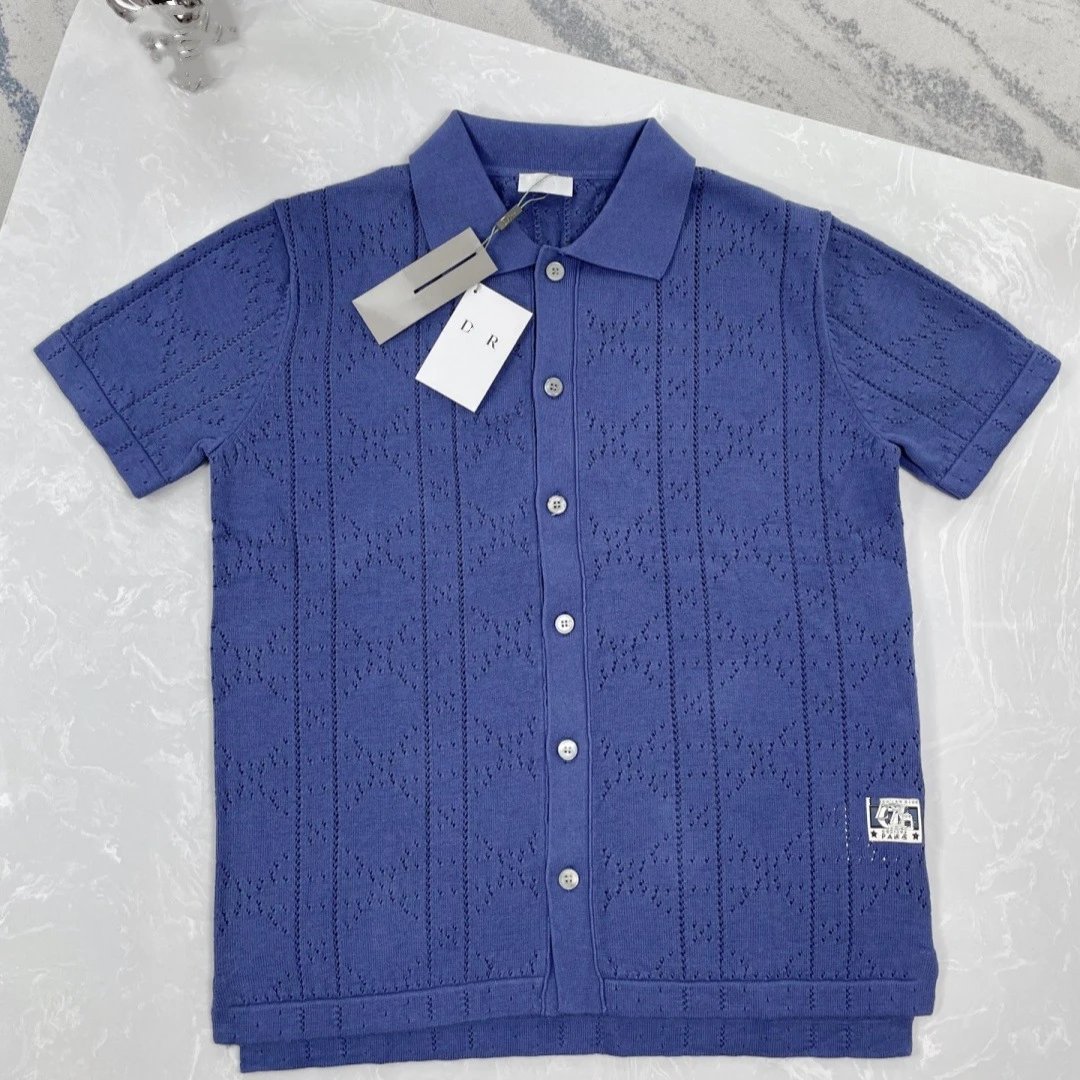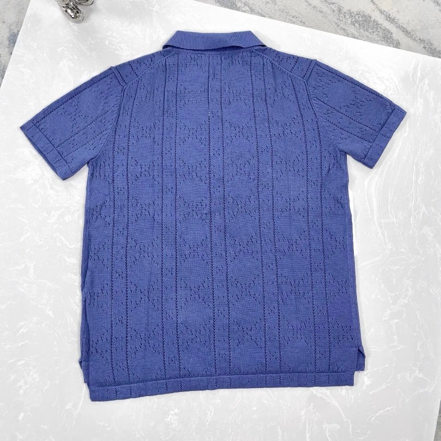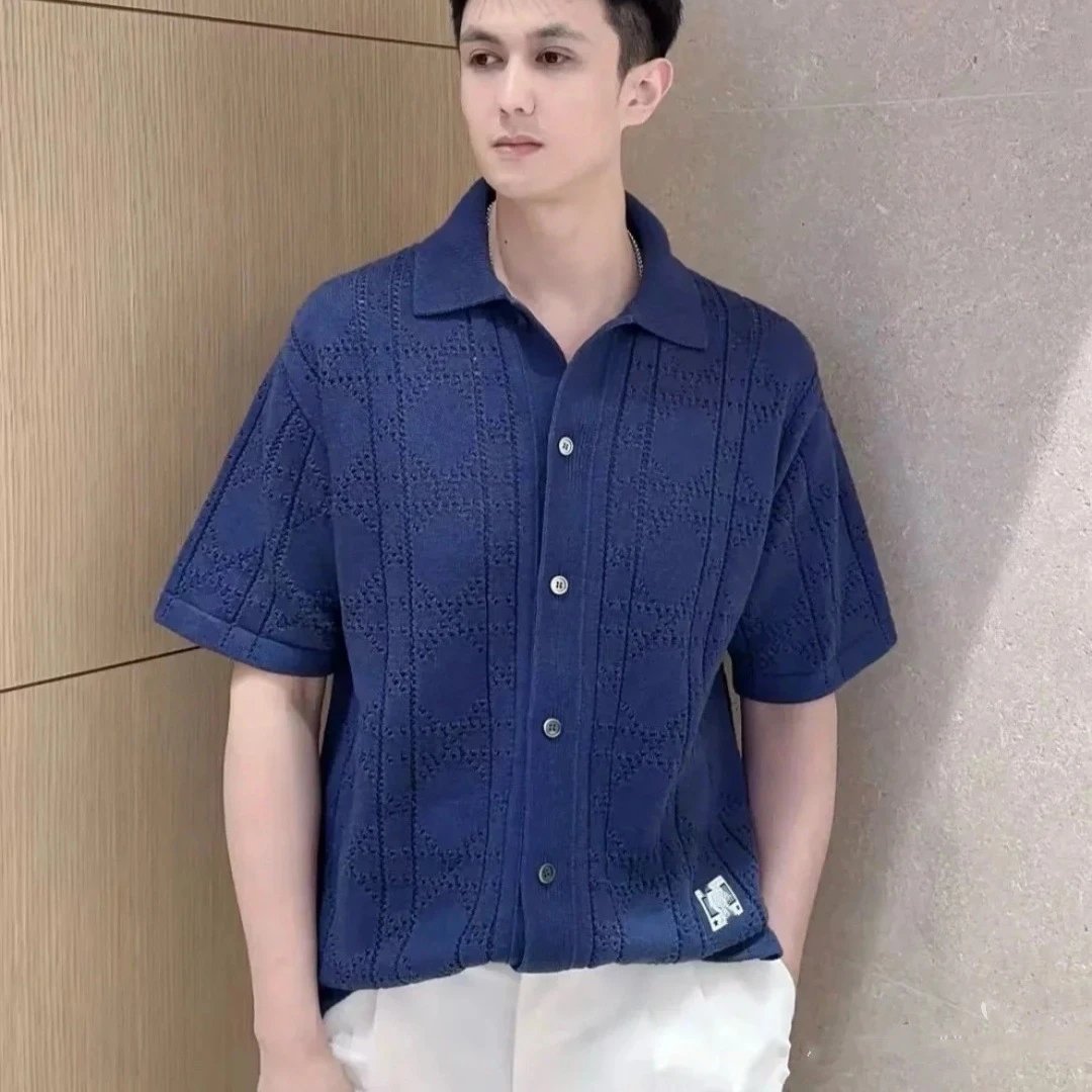 2025夏季新款DO家菱形镂空针织翻领POLO衫针织短袖T恤