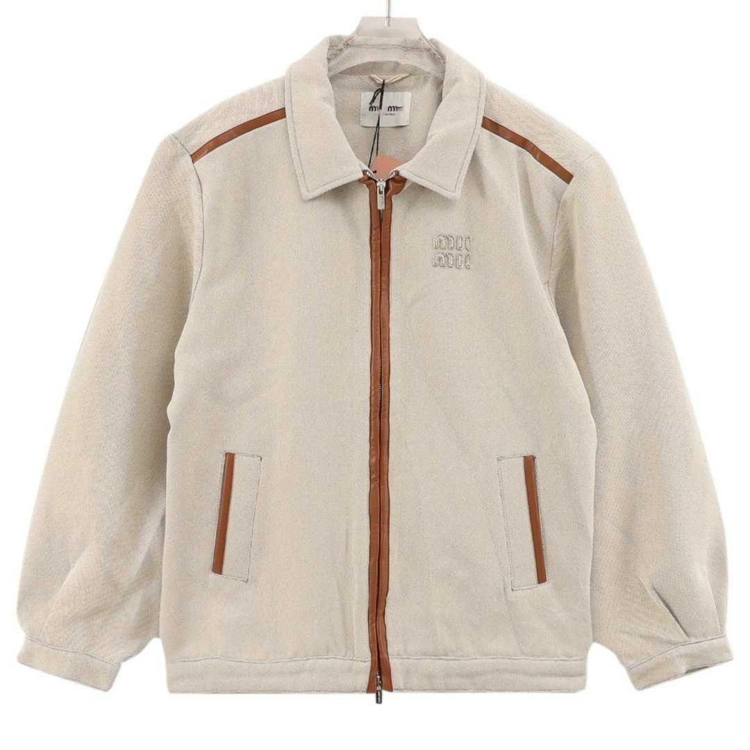 本2025早春新款MIU家贴布刺绣帆布拼接双拉链夹克外套