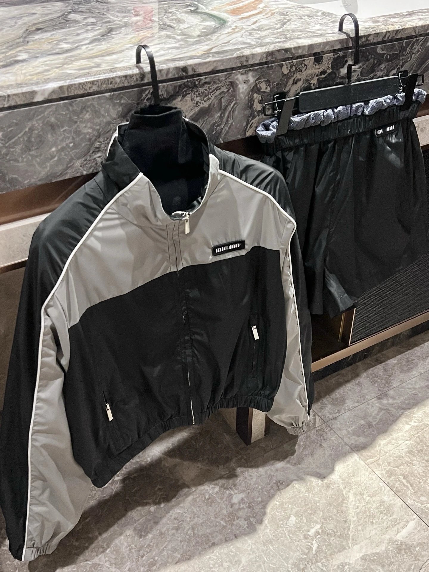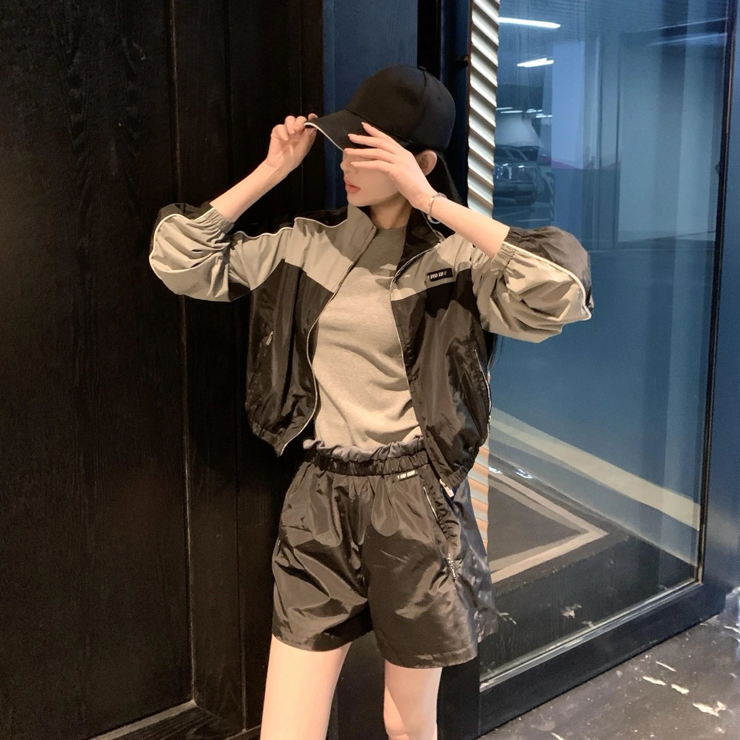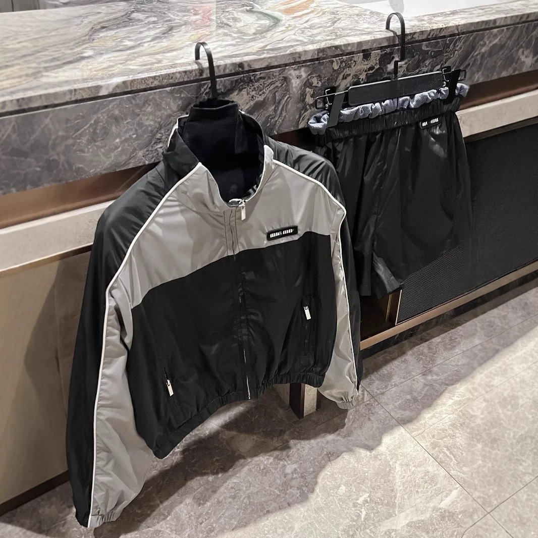 2025夏季新款MIU家走秀款复古校园风短款冲锋衣外套短裤套装