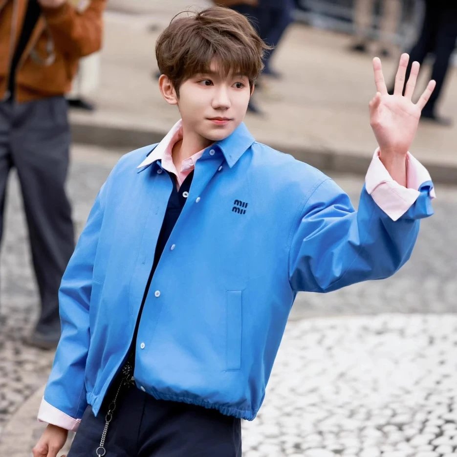 2025早春新款MIU家王源同款MIU 刺绣字母翻领衬衫外套夹克