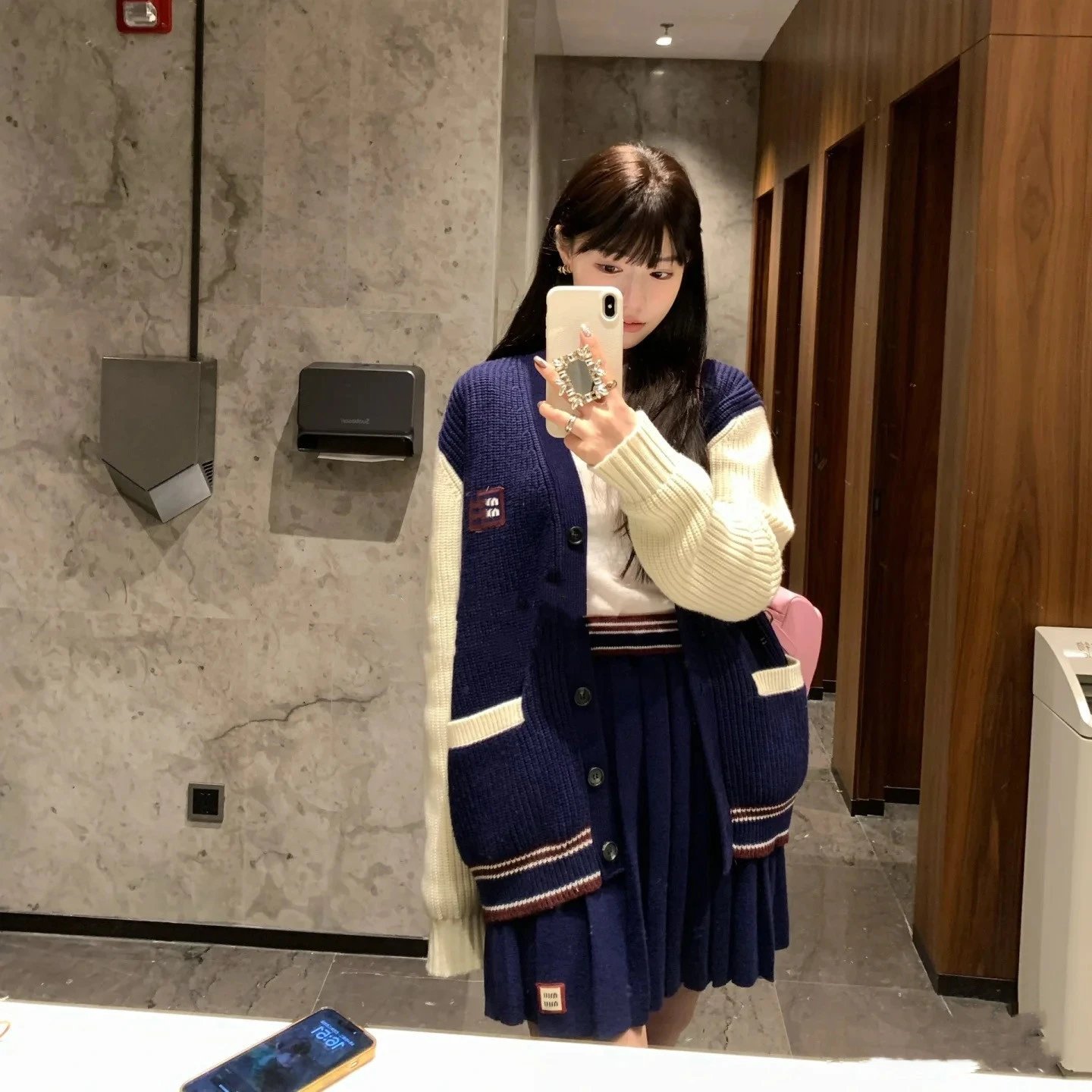 本2025秋冬新款MIU缪家明星款V领半插肩长袖羊毛衫外套