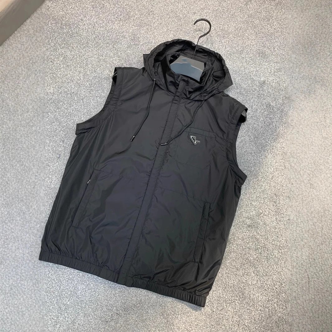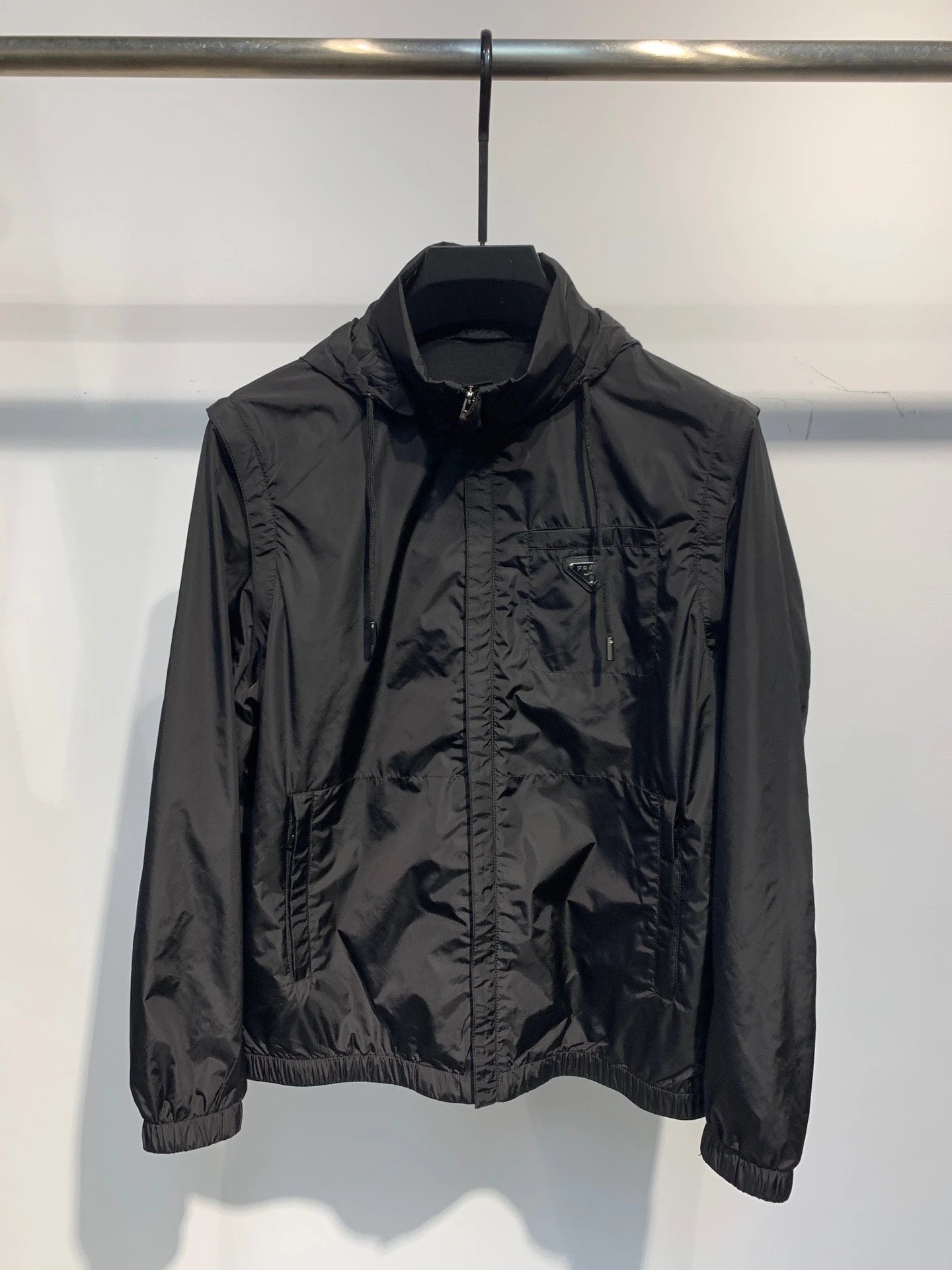 2025早春新款P家三角标铁牌袖子可拆卸男女连帽夹克马甲背心外套