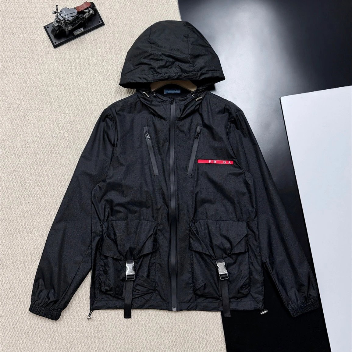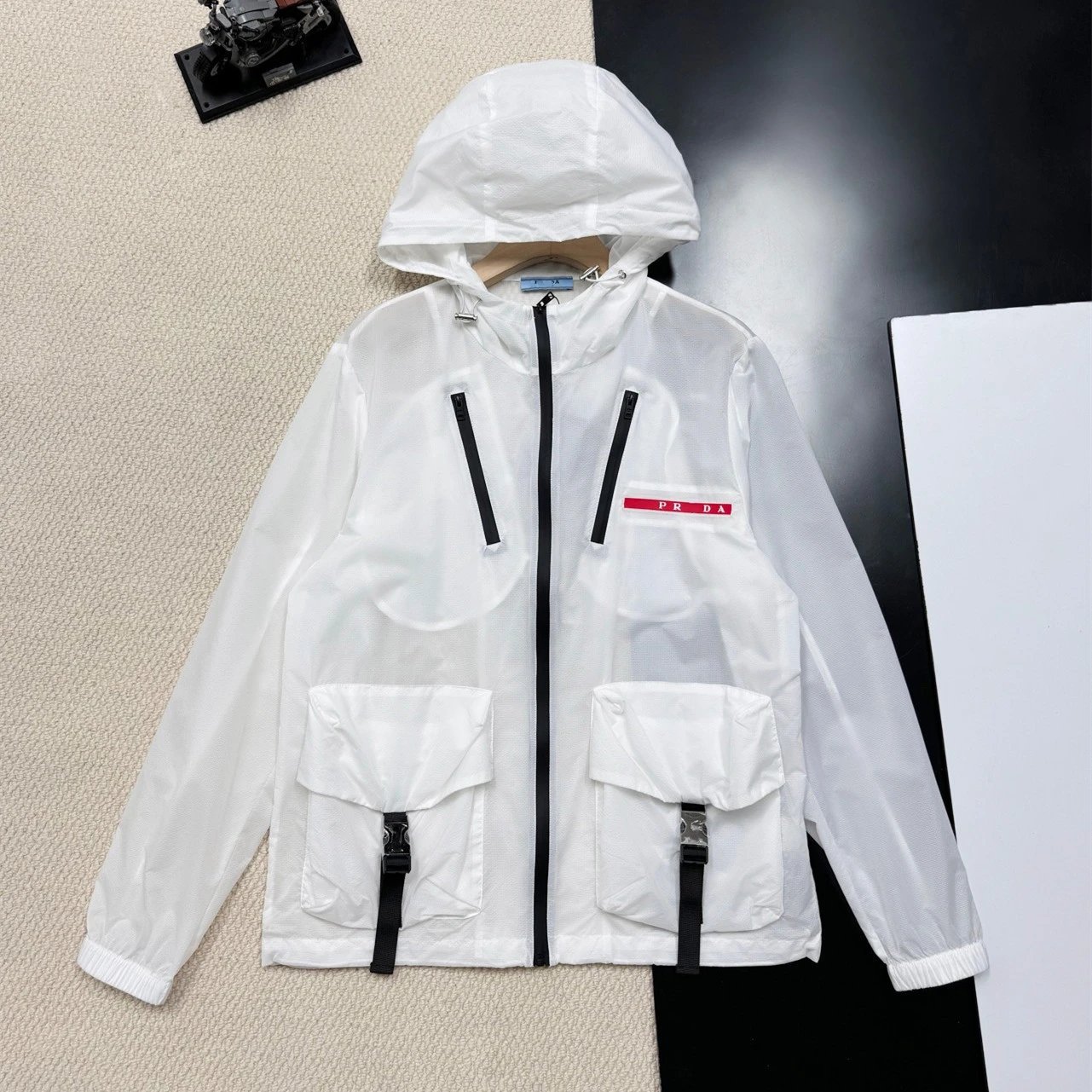 2025春夏新款P家压胶字母红标拉链口袋连帽防晒衣皮肤衣外套男女