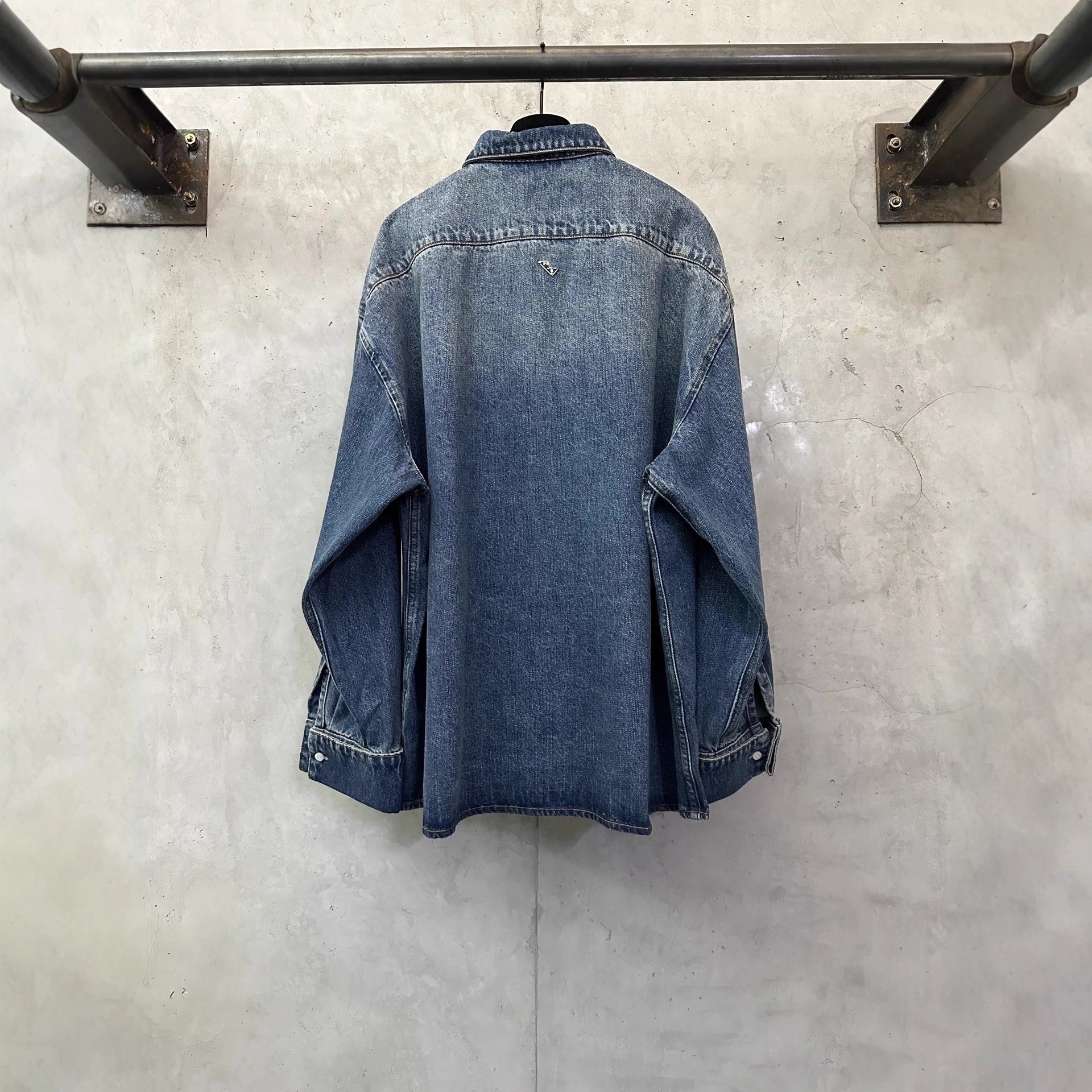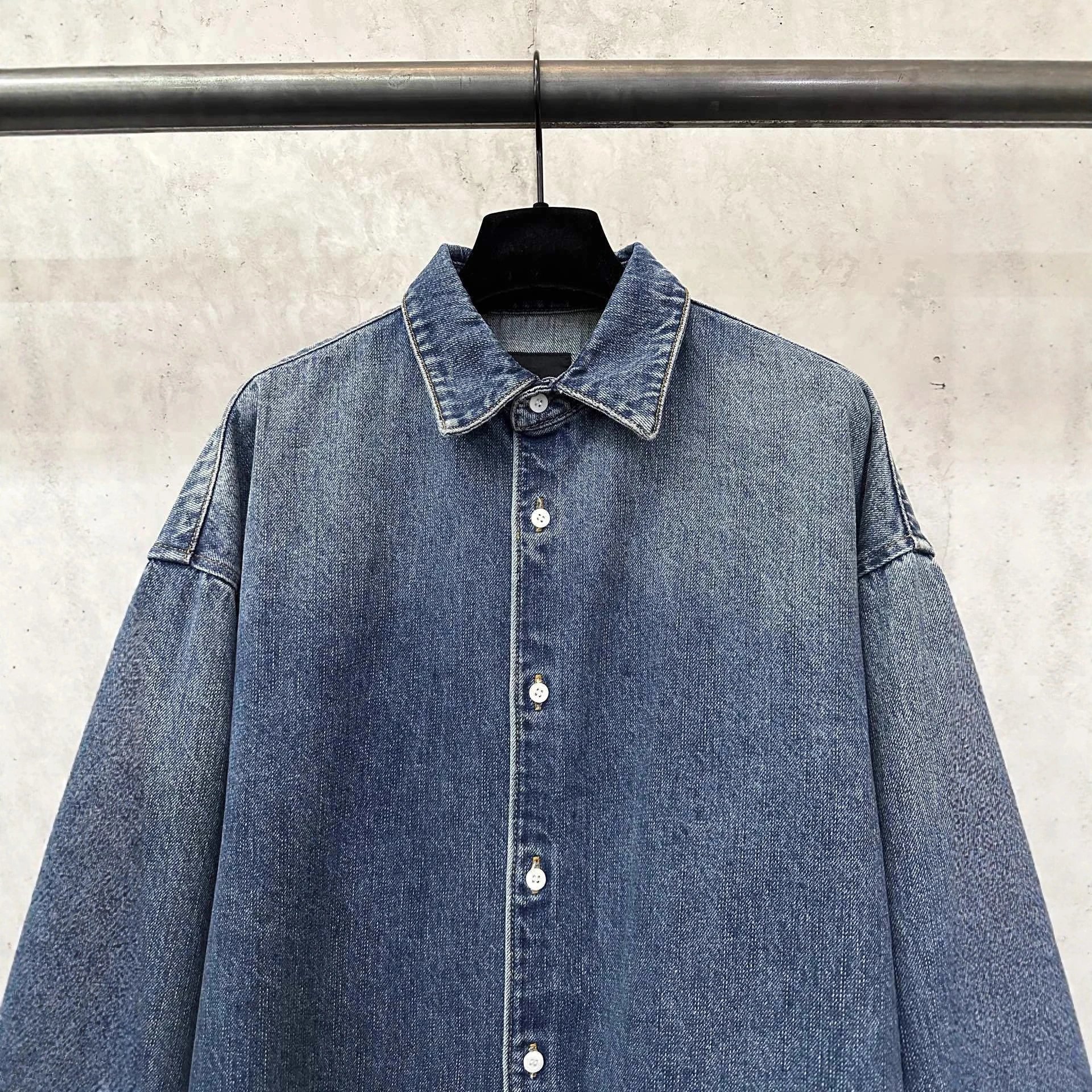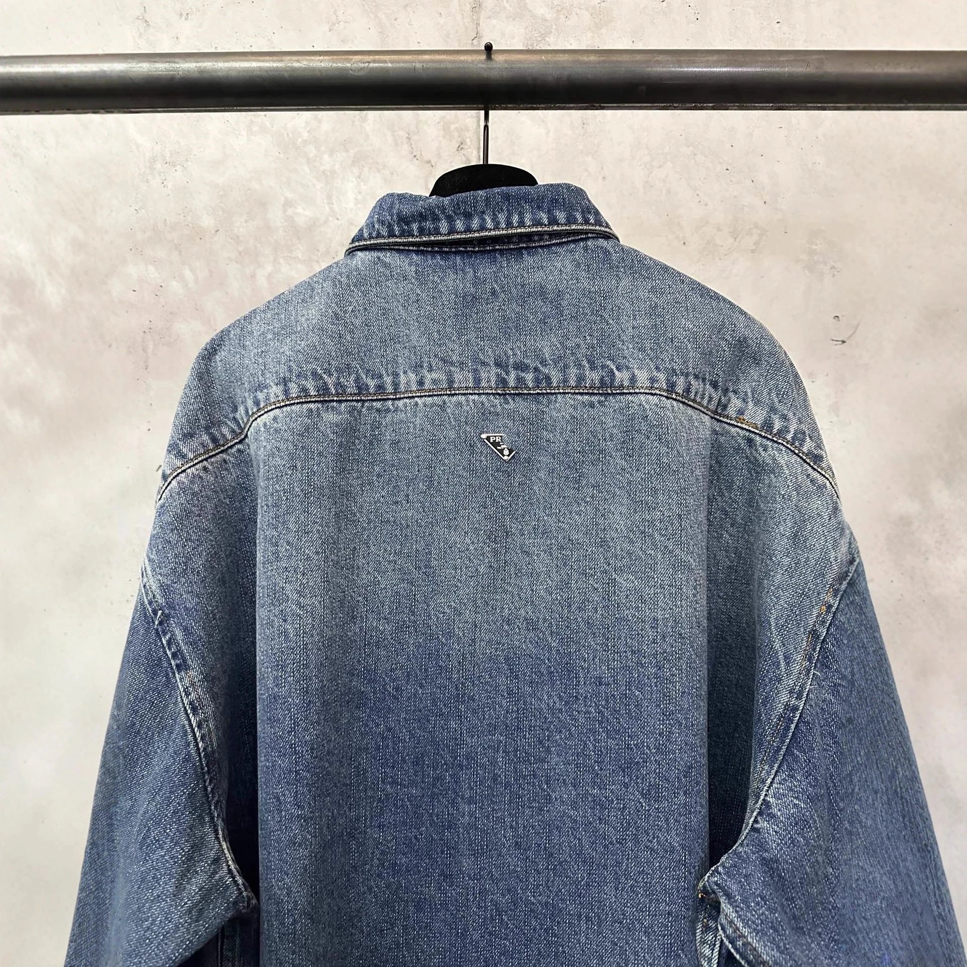 2025秋冬新款P家翻领宽松长袖蓝色牛仔衣夹克外套男女