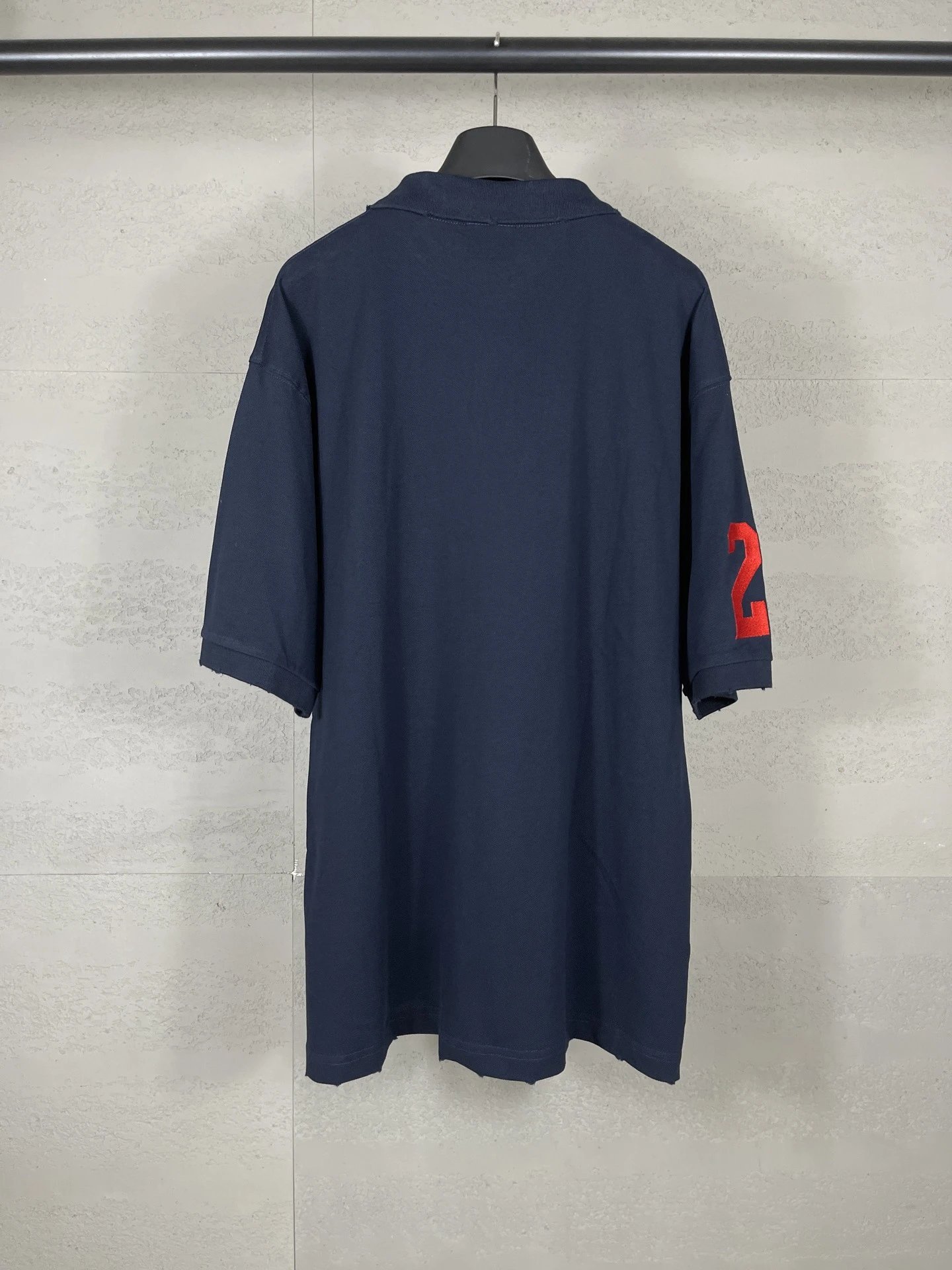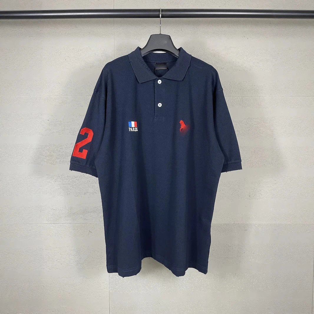 2025夏季巴黎战马刺绣磨烂做旧POLO衫洗水磨烂短袖T恤男女款情侣