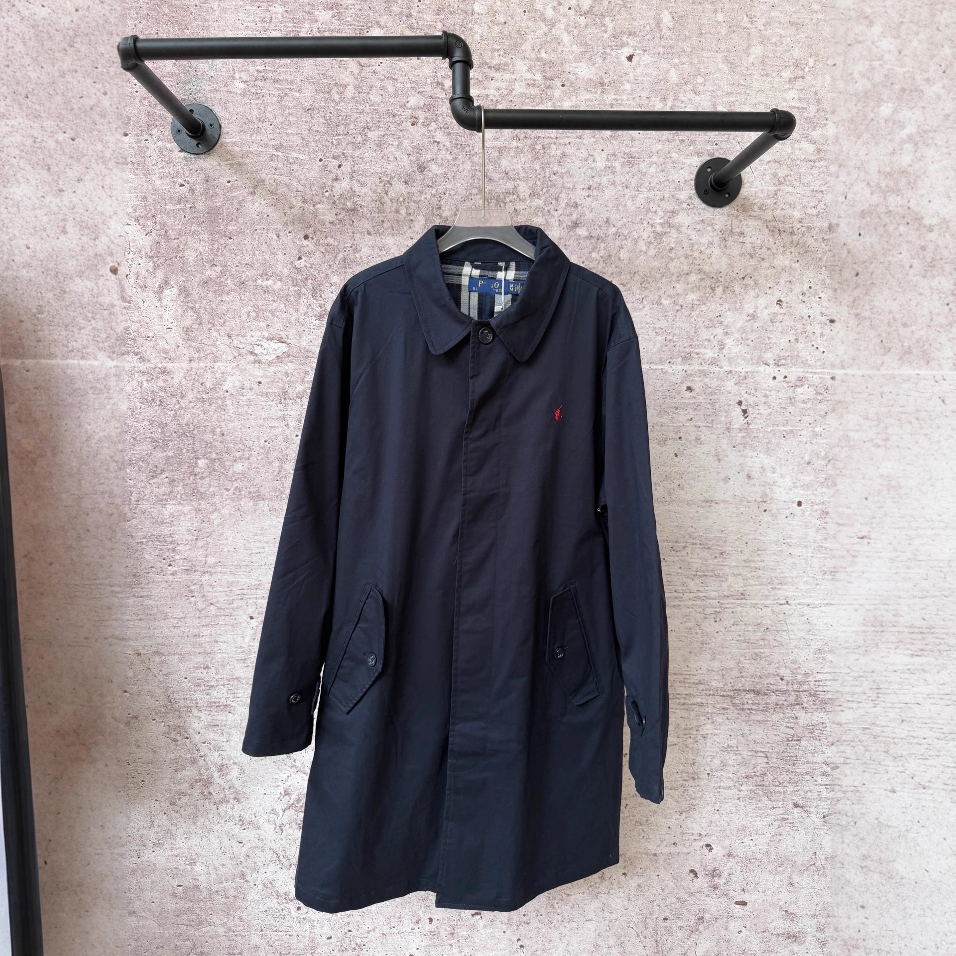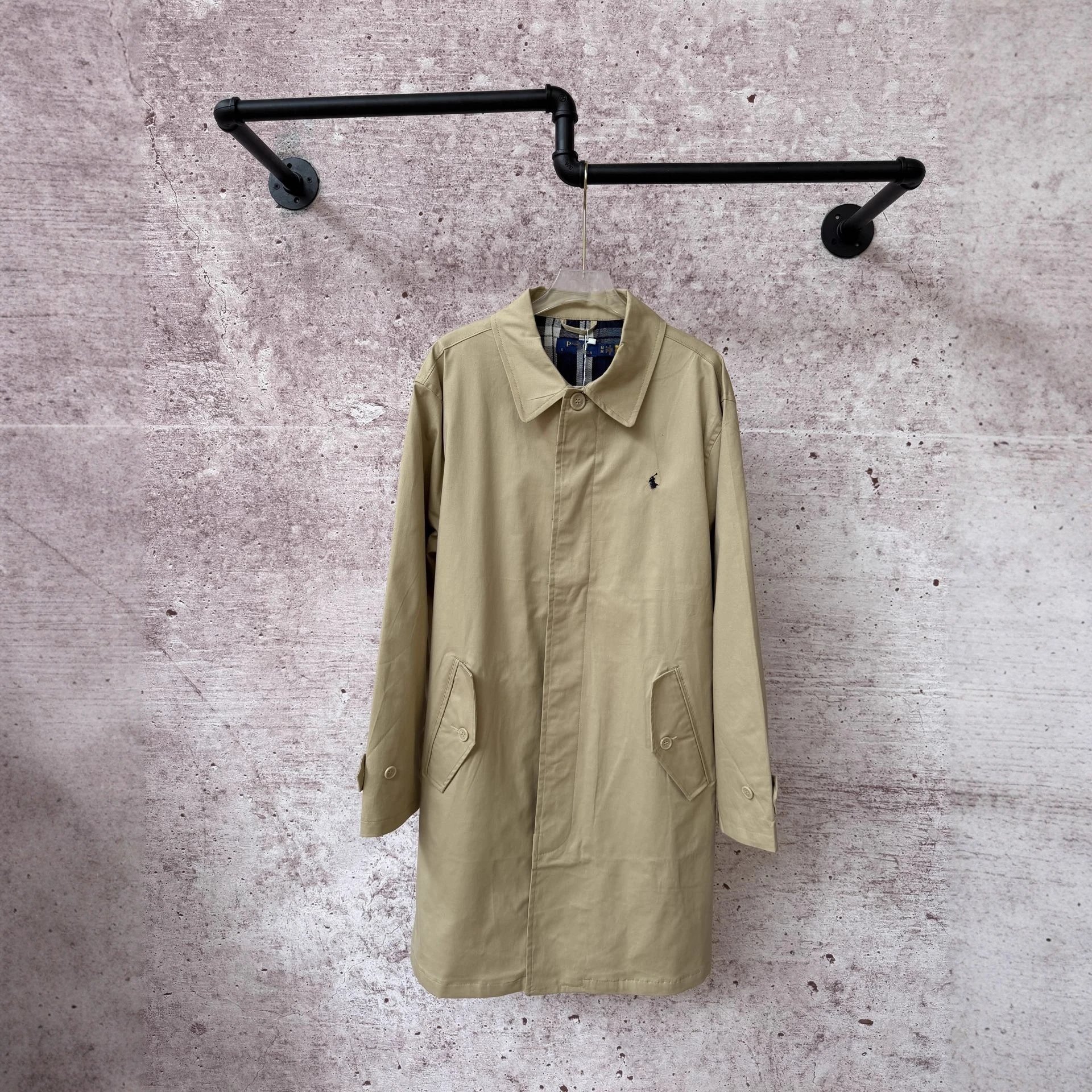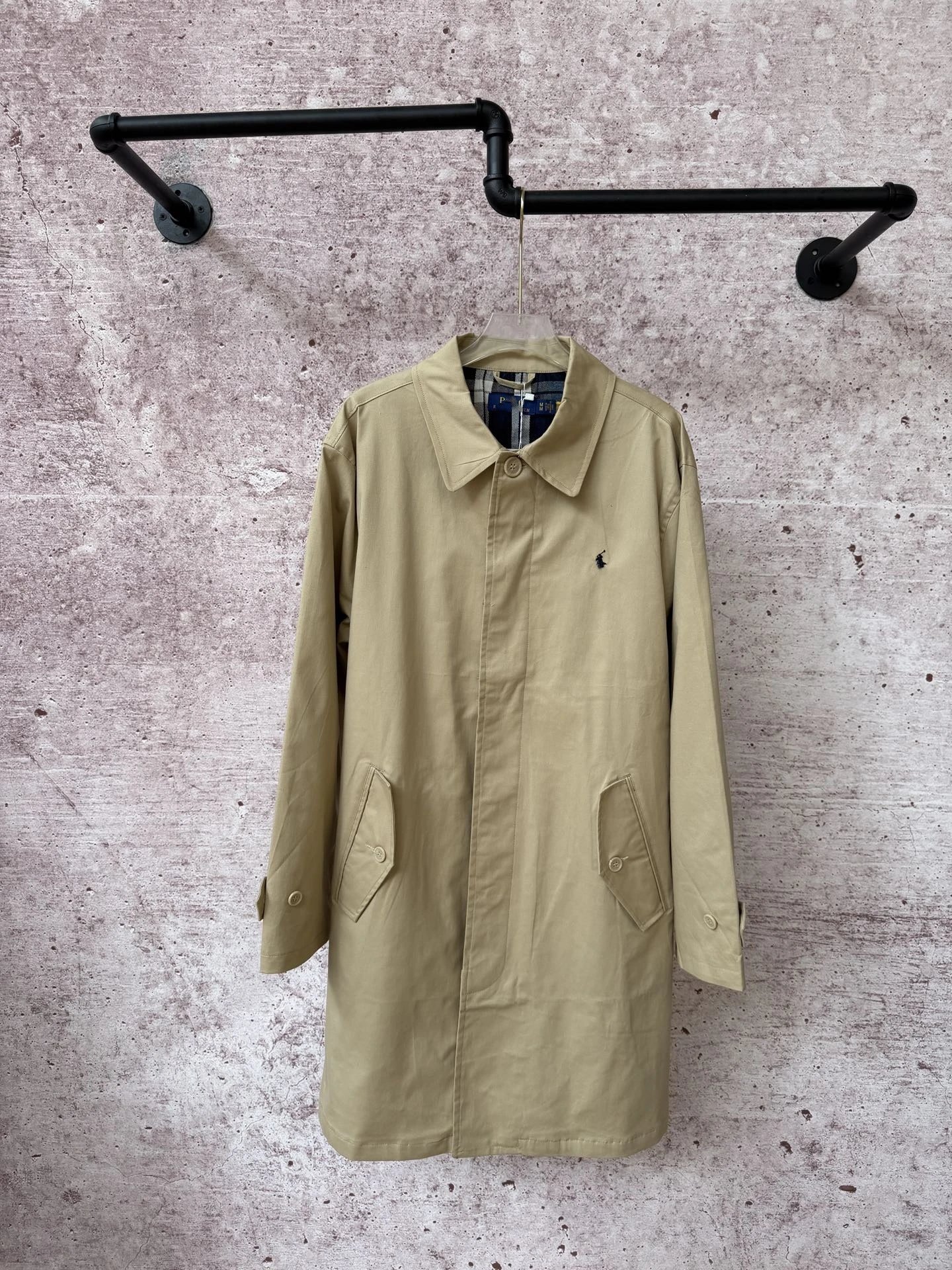 2025秋冬新款RL拉夫小马刺绣内里格纹长款风衣外套男女