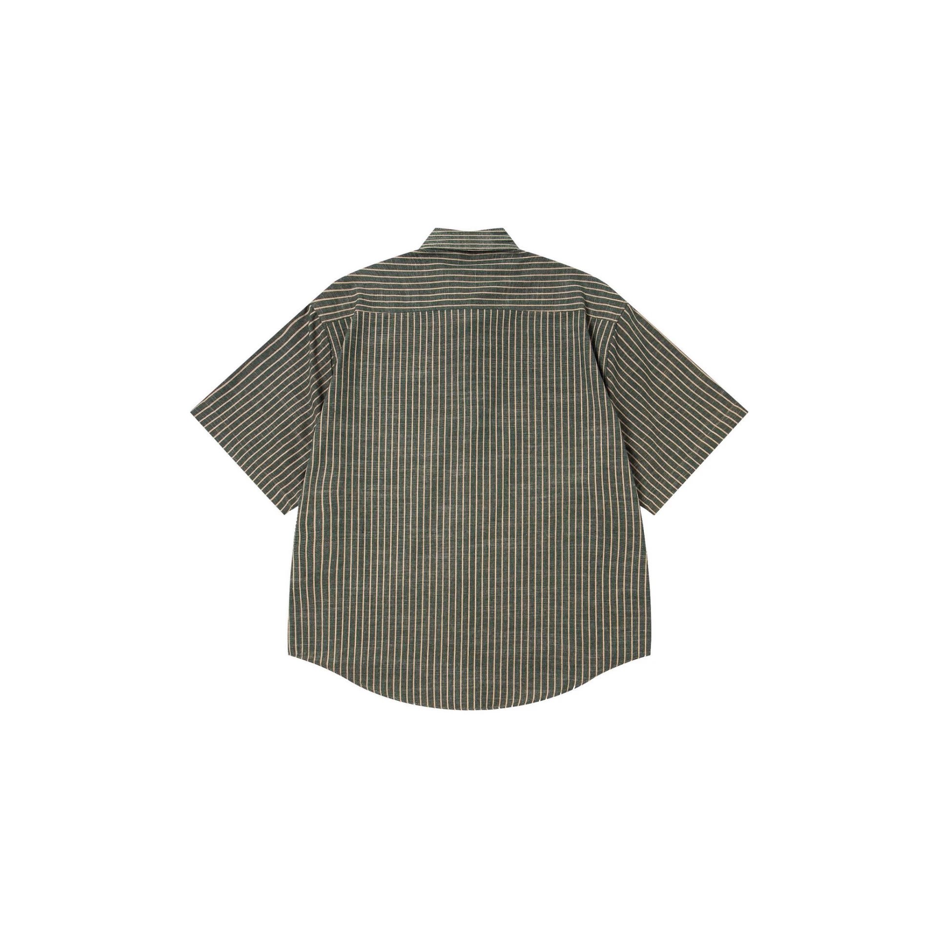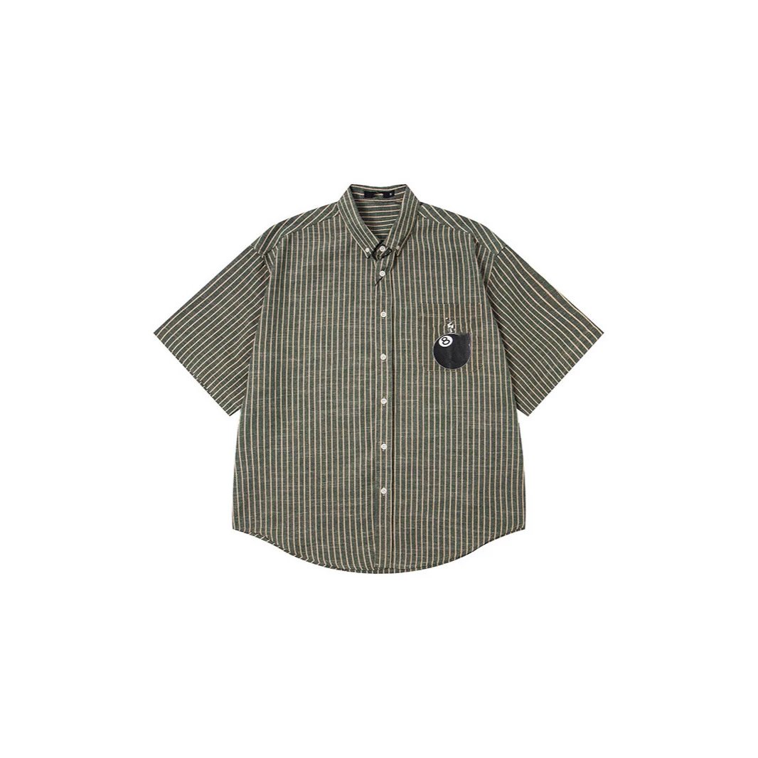 2025夏季经典黑八印花翻领竖条纹短袖衬衫男女同款短袖T宽松上衣