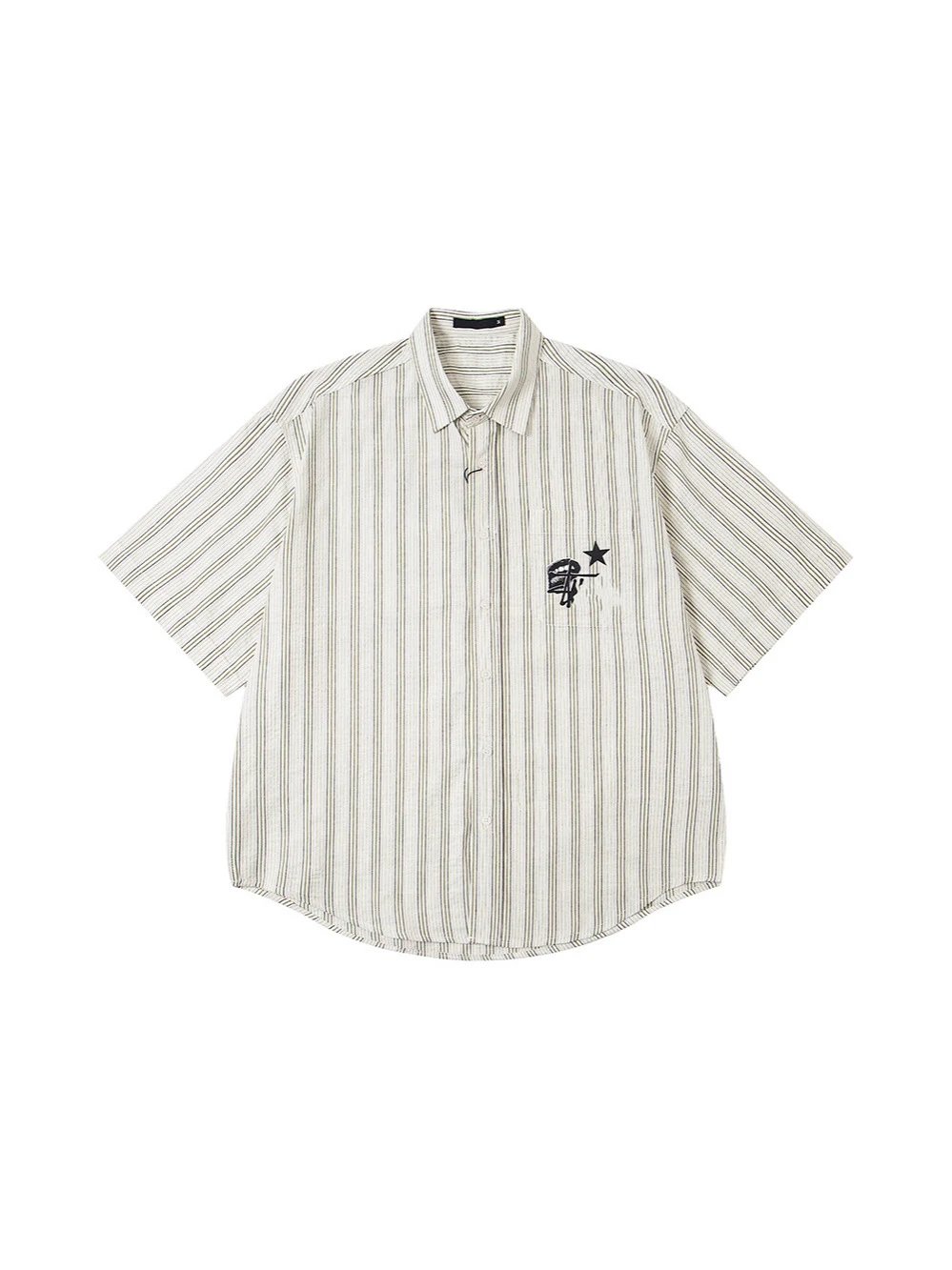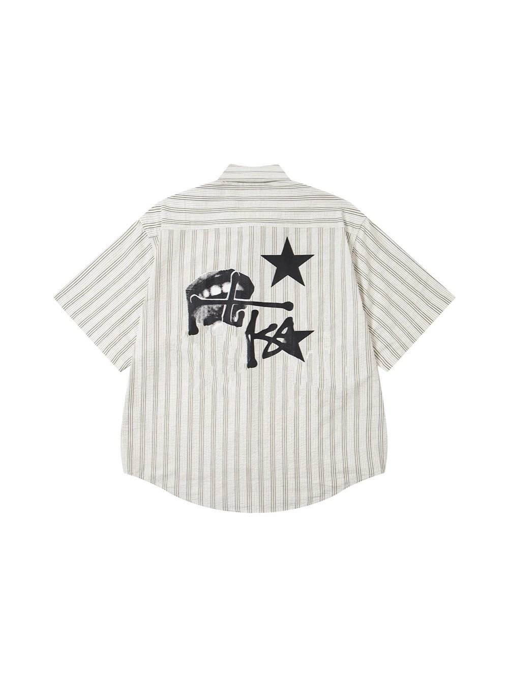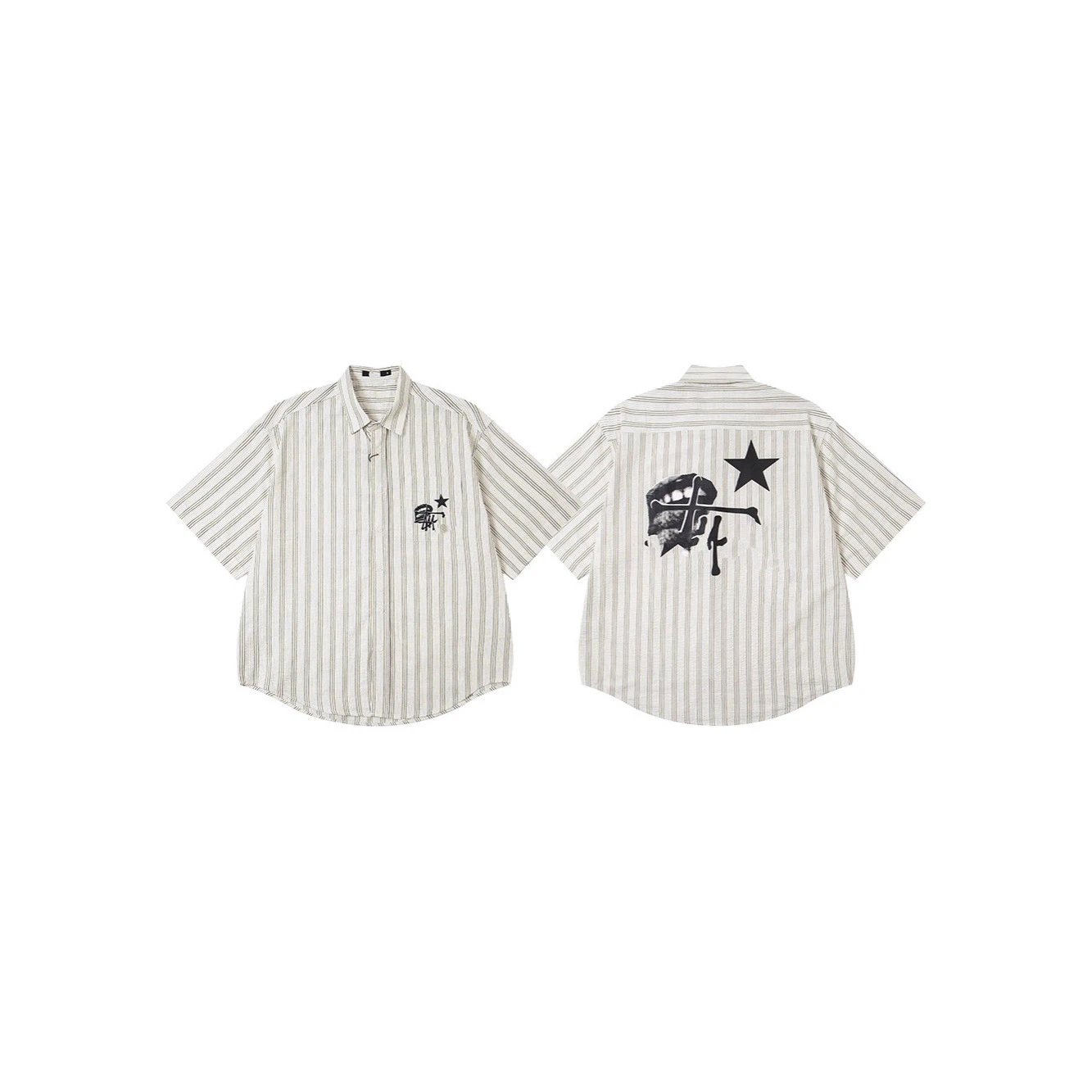 25S夏季日系经典印花翻领短袖衬衫男女同款宽松休闲款ins衬衣