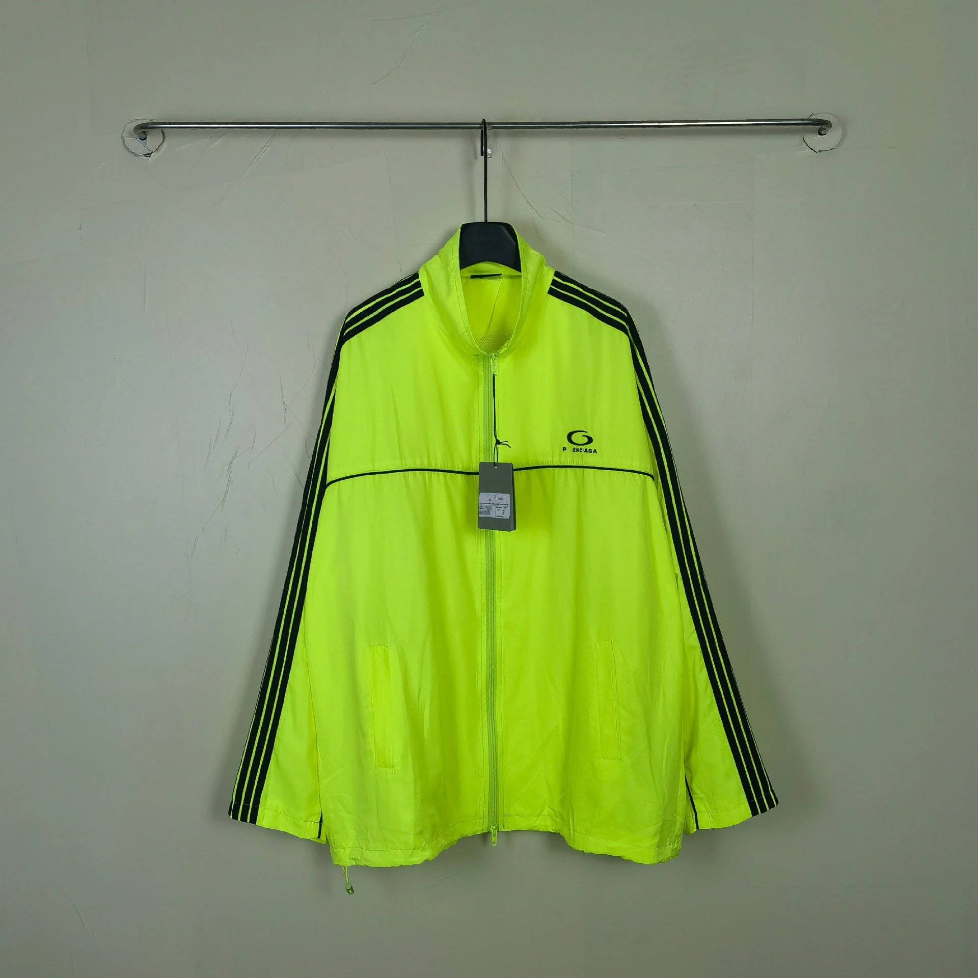 巴黎B家秋冬新款五条杠拉条刺绣运动防晒服夹克外套男女