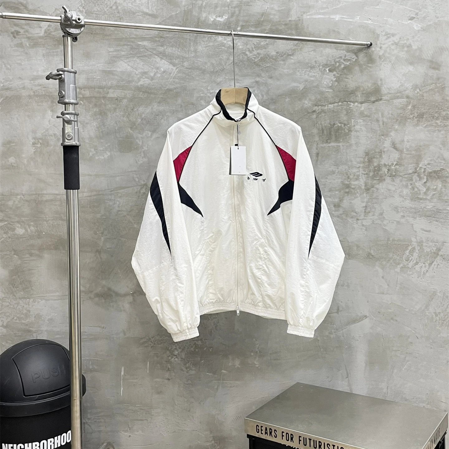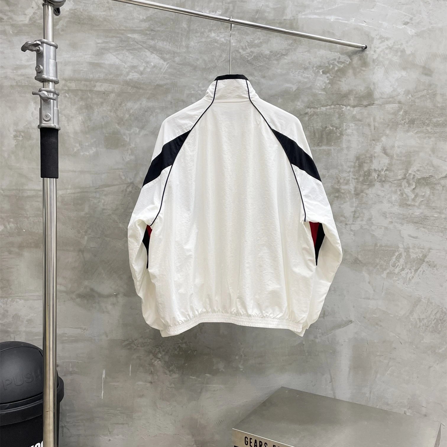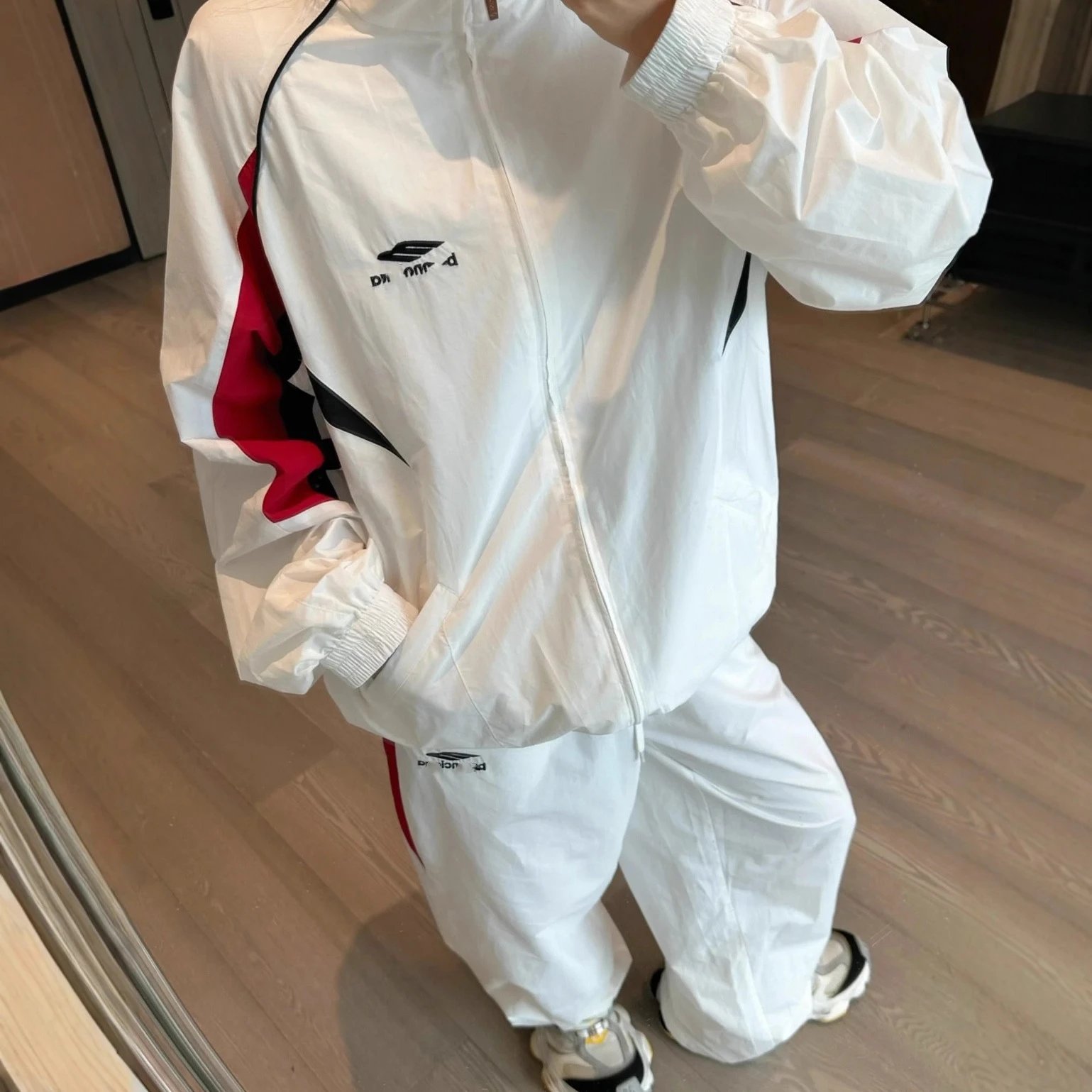 巴黎B家走秀款白红拼接运动校服冲锋衣风衣夹克外套裤子套装