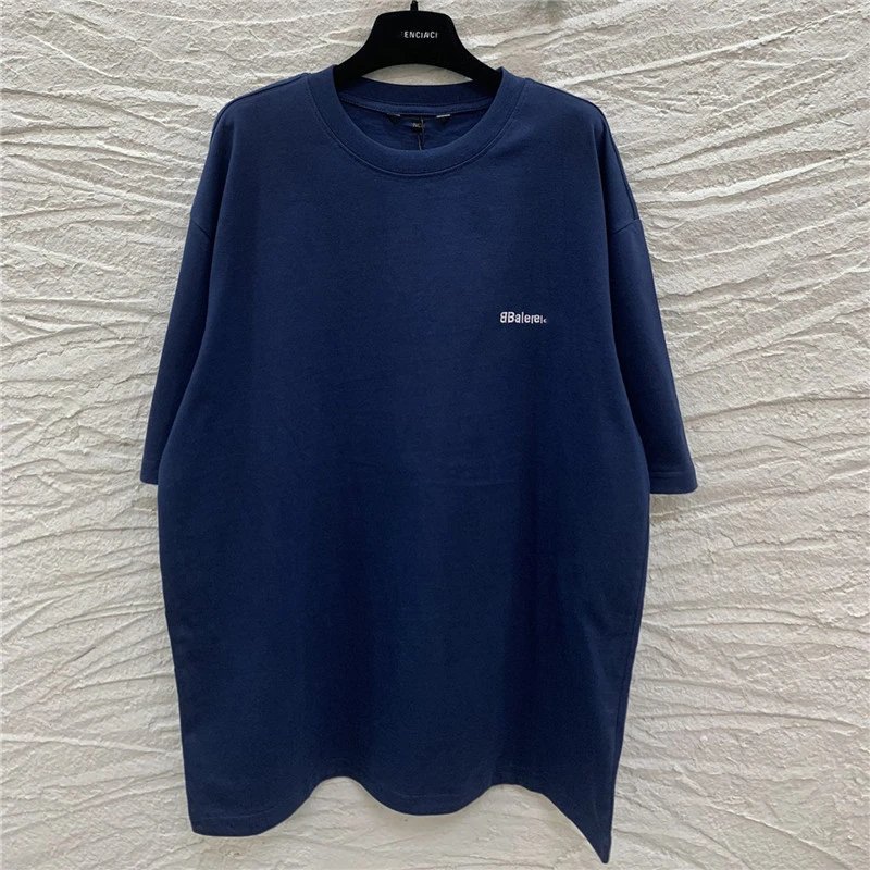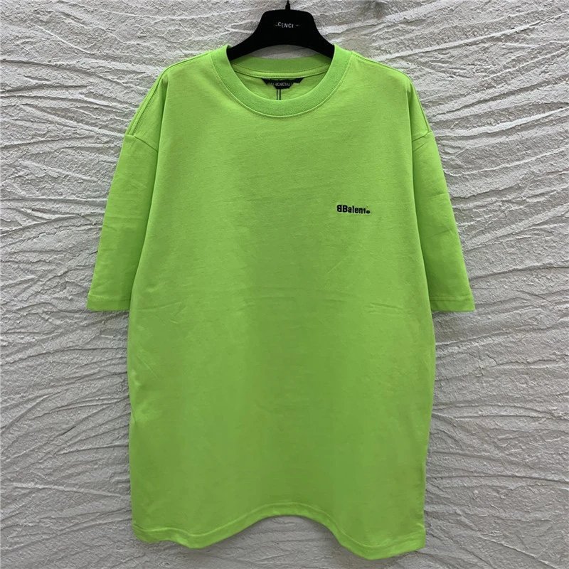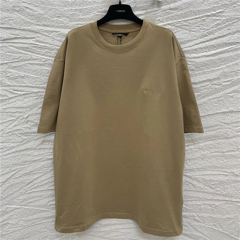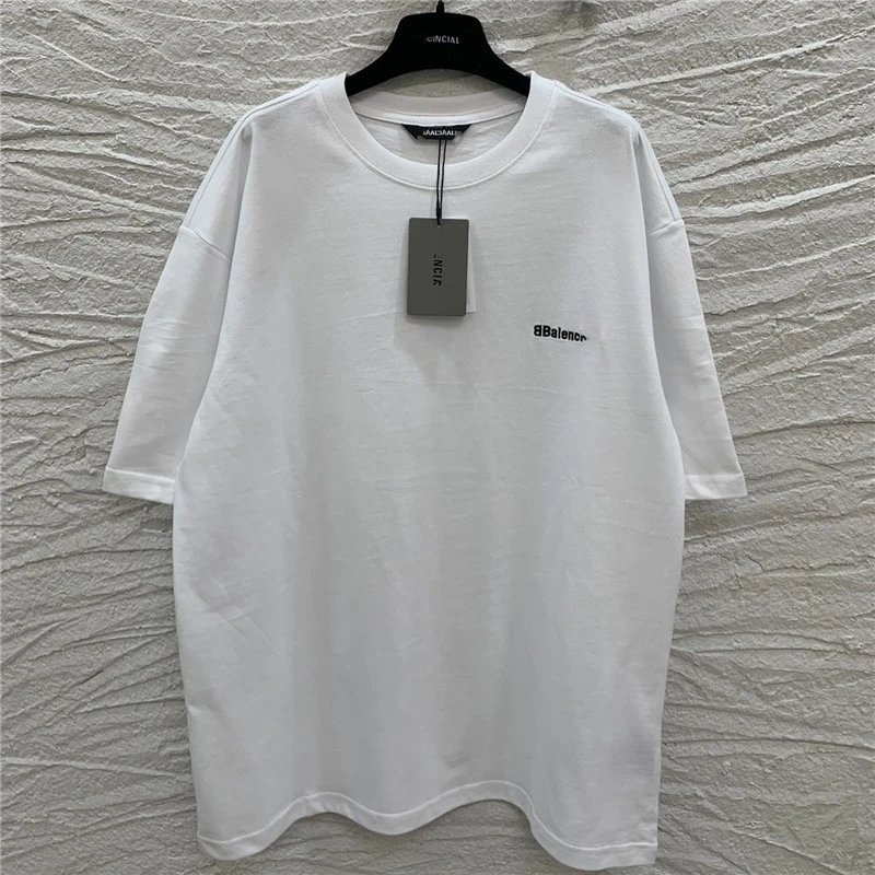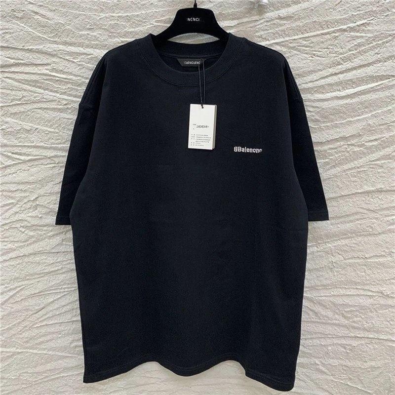 新款巴黎B家BB字母刺绣小logo男女宽松情侣小领口短袖T恤