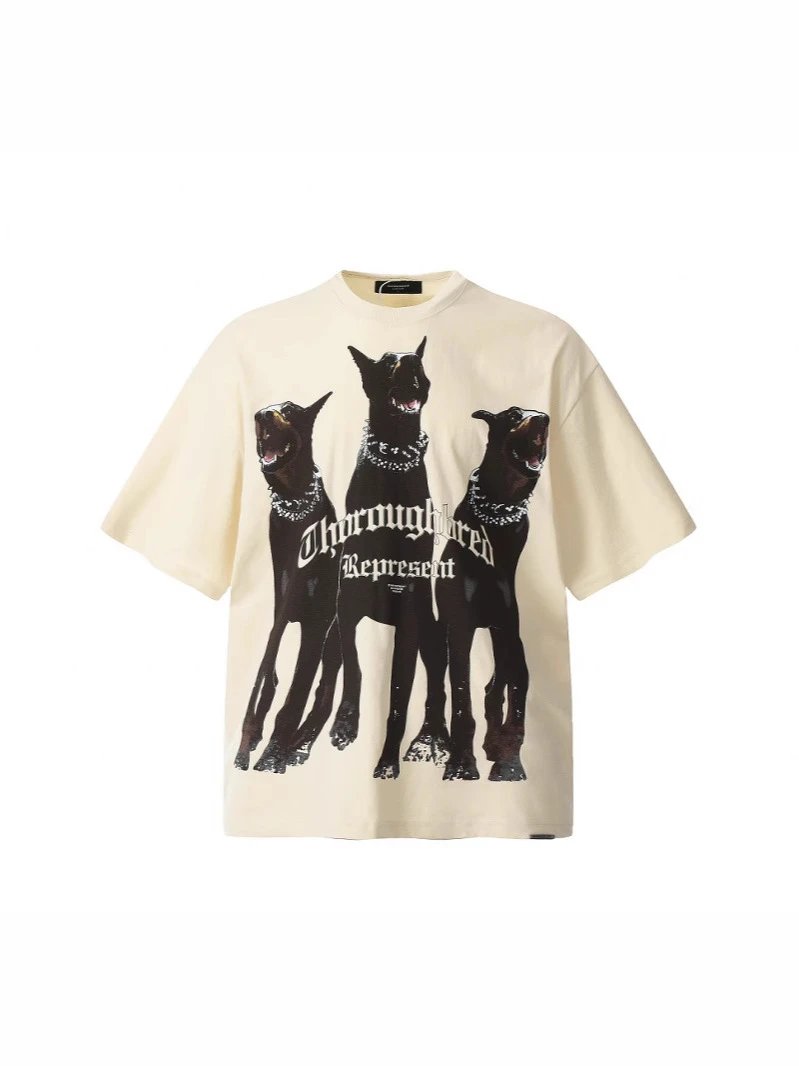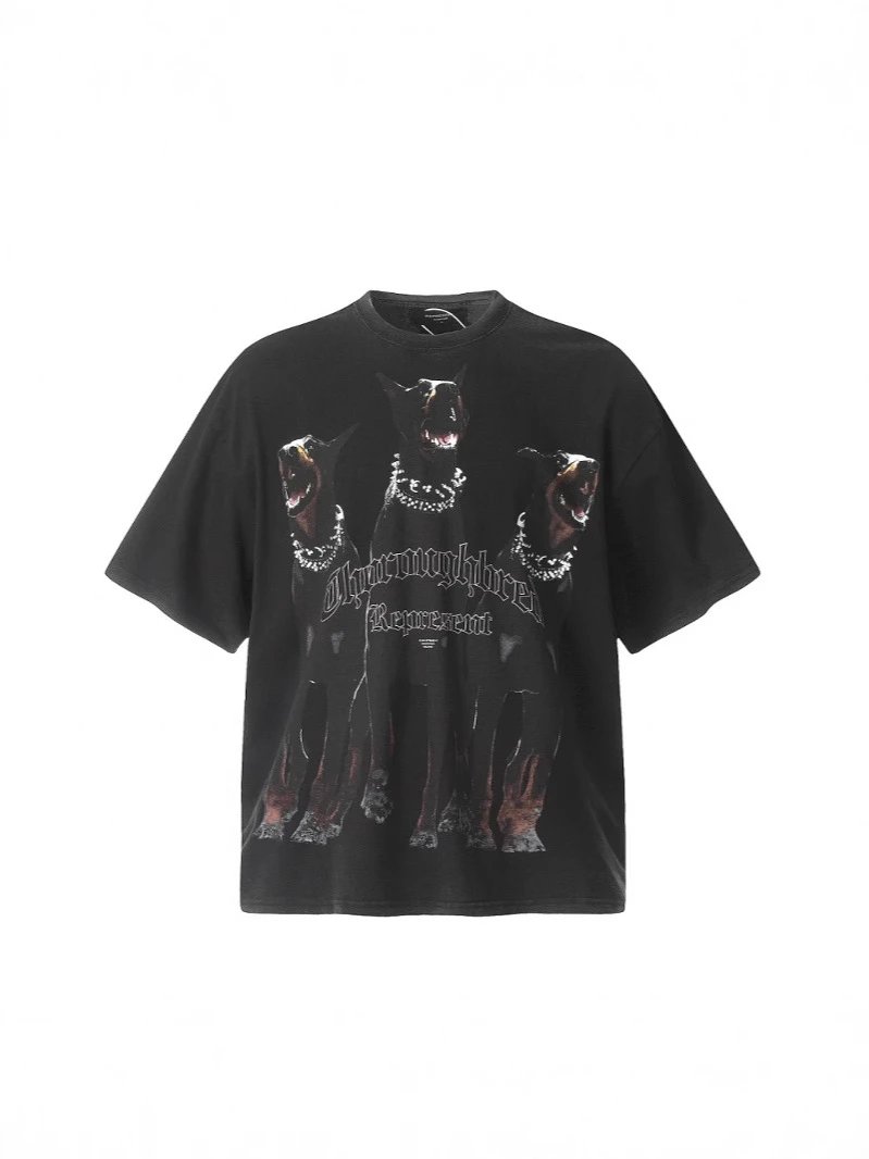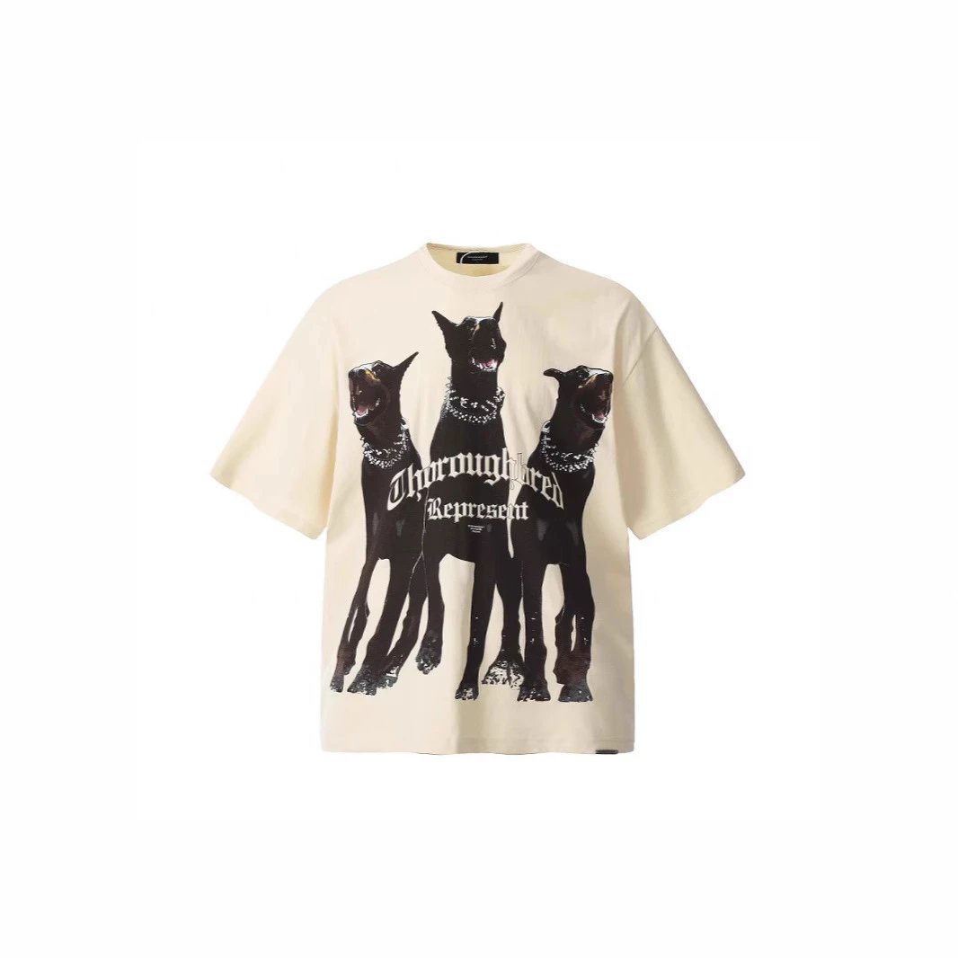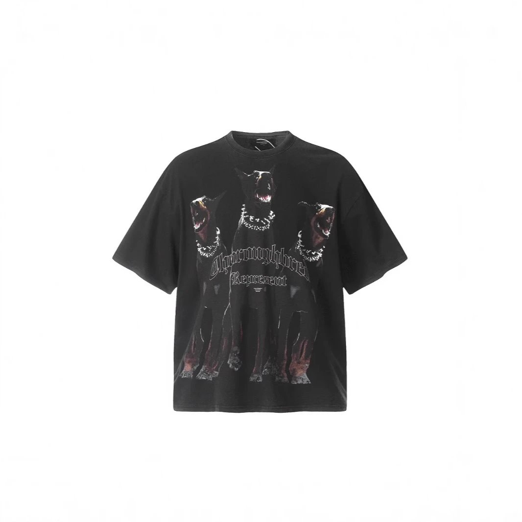 BIGTHING杜宾犬REPRESENT印花水洗vintage美式 潮牌复古宽松短袖