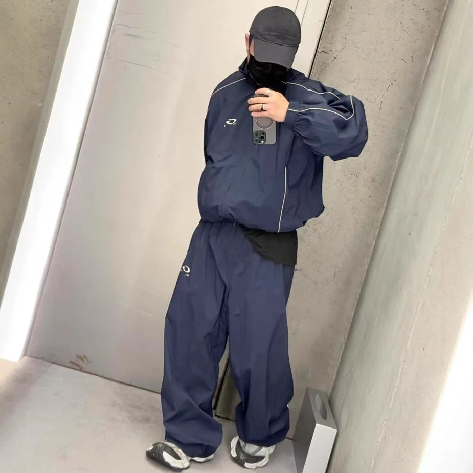 早春新款巴黎B家圆环刺绣字母INS网红款运动校服冲锋衣长裤套装