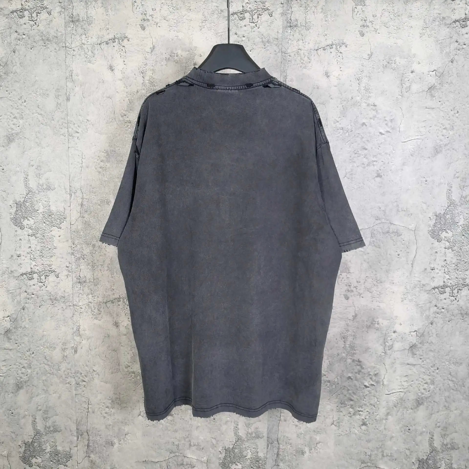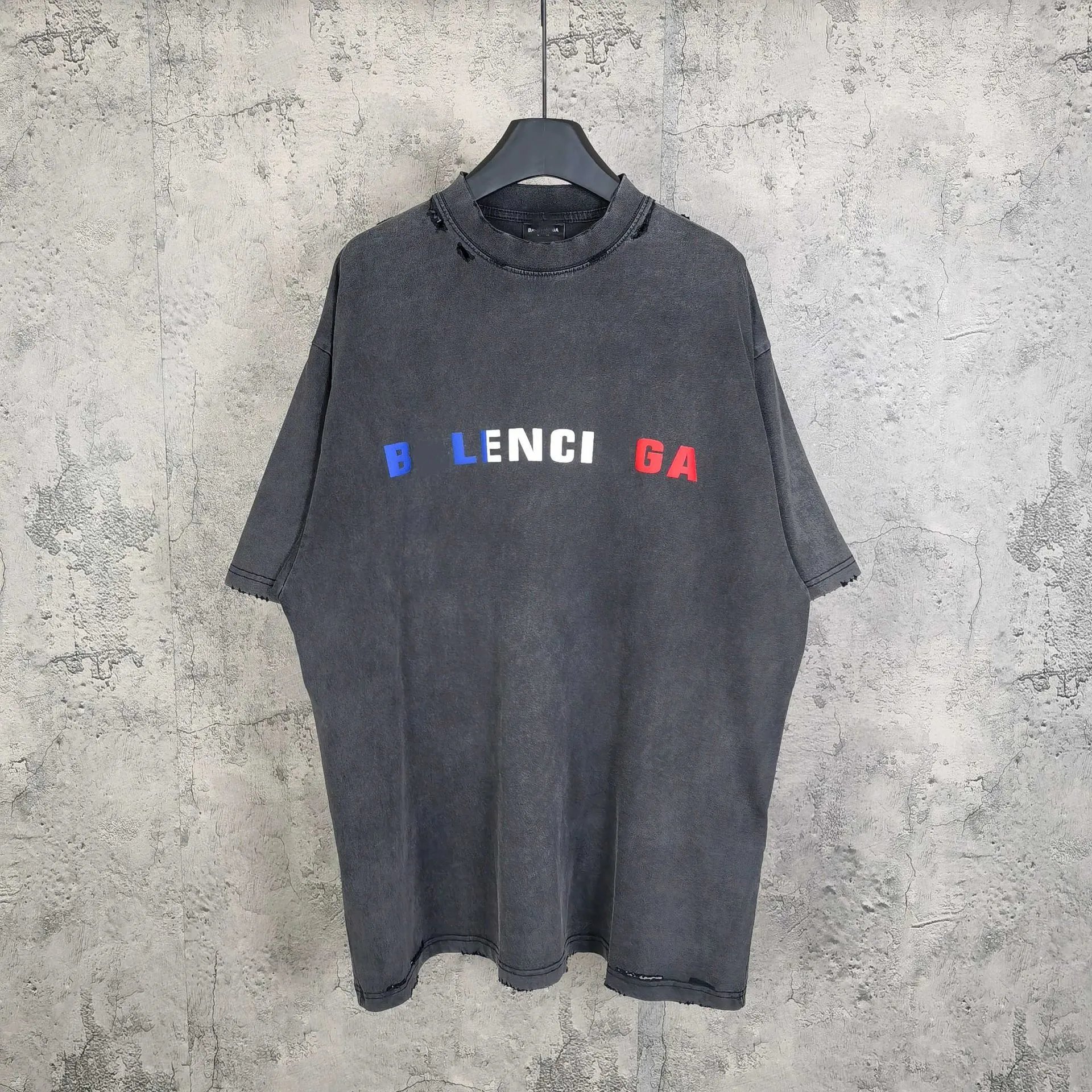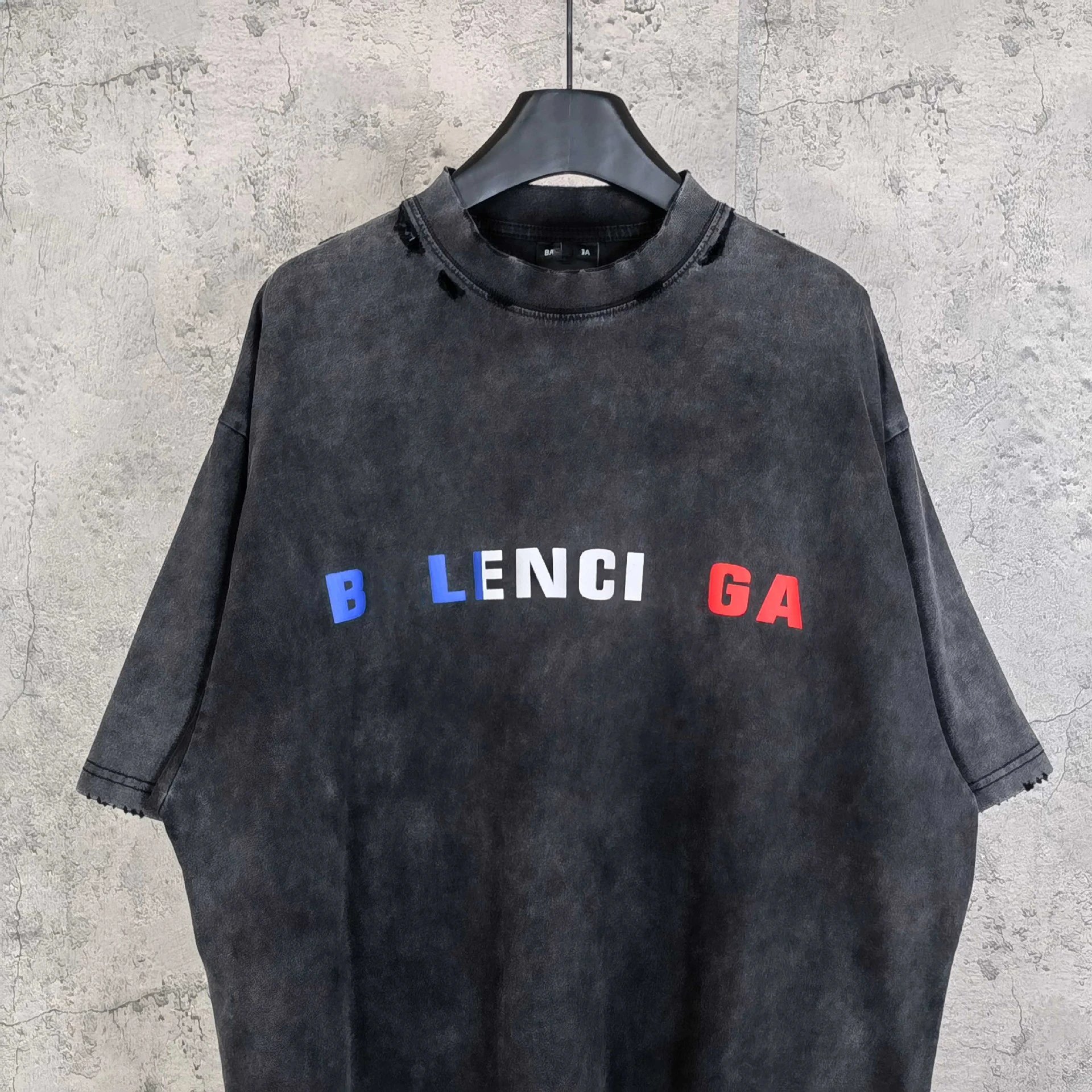 南油巴黎B家限定款法兰西三色发泡Logo磨破洗水短袖T恤
