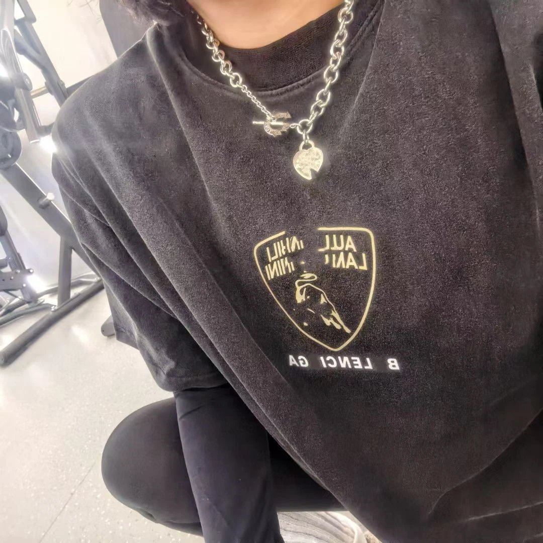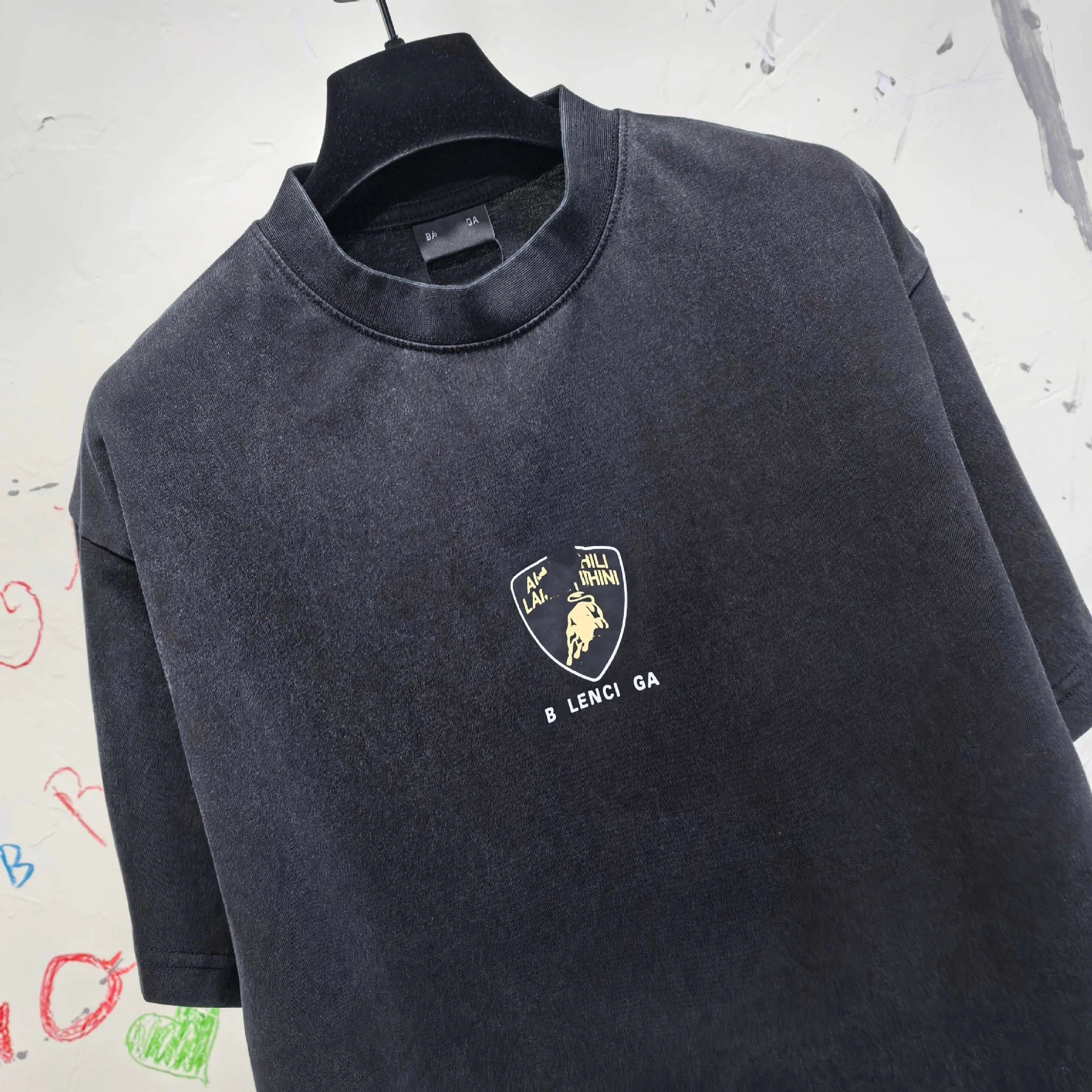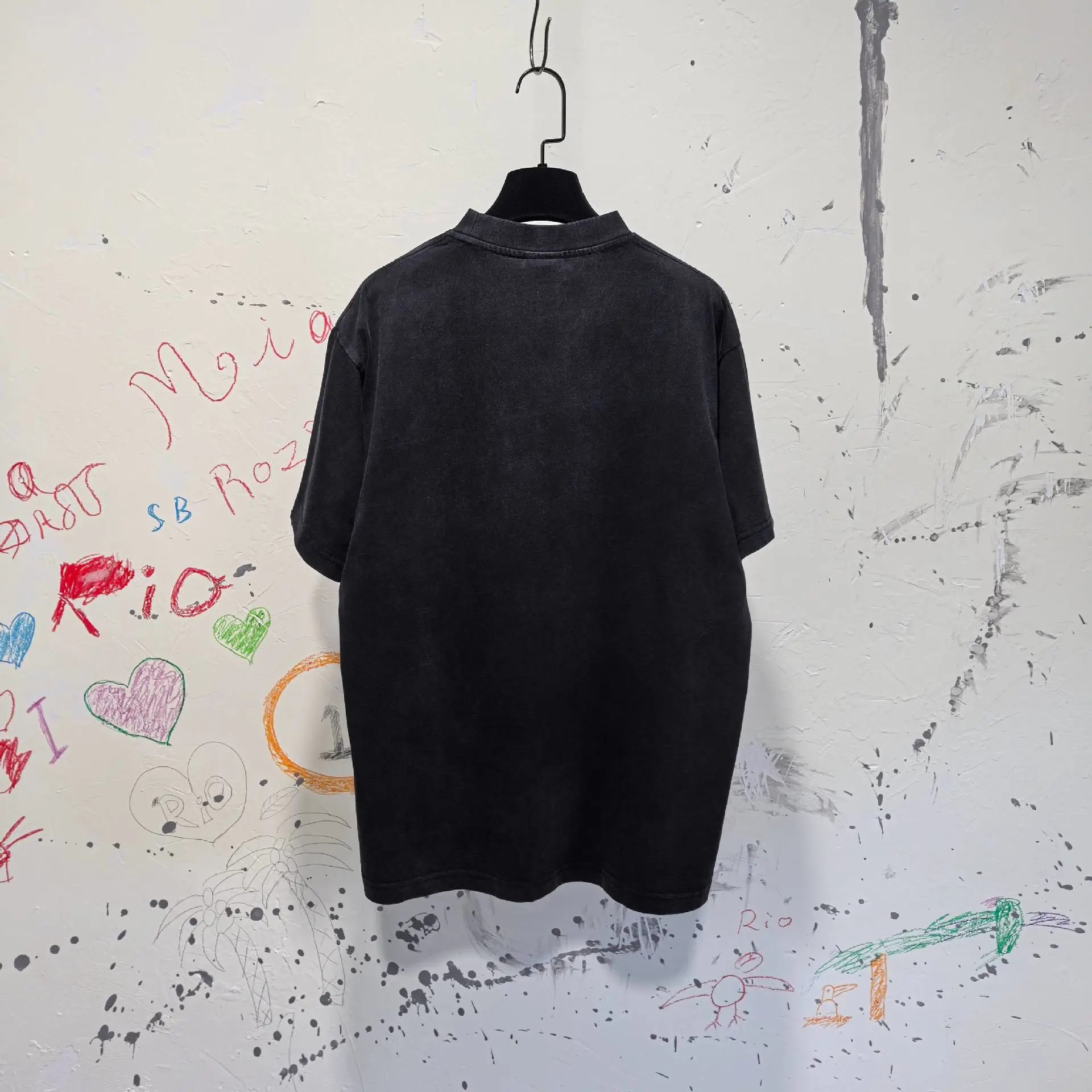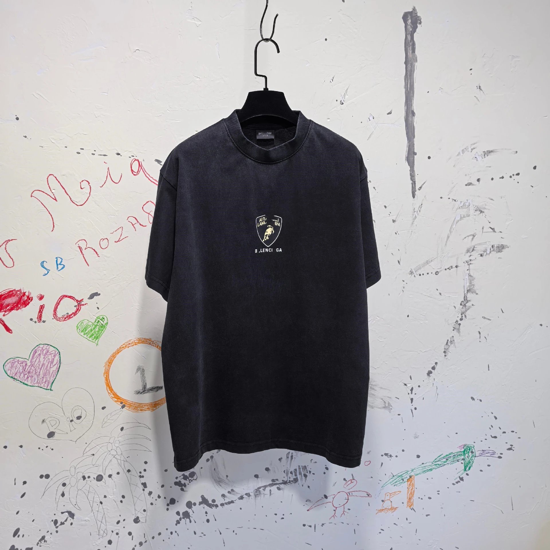 巴黎B家联名款徽章盾牌洗水做旧短袖T恤男女
