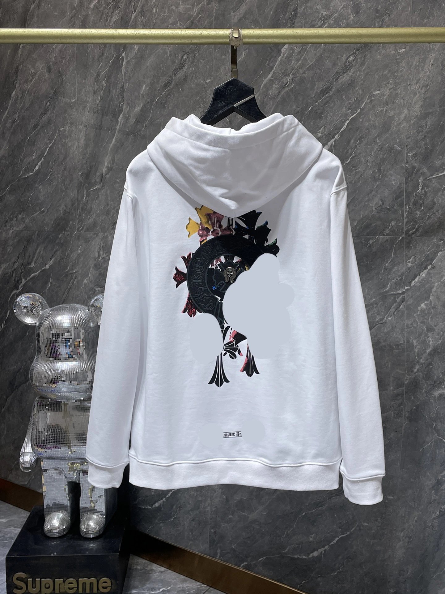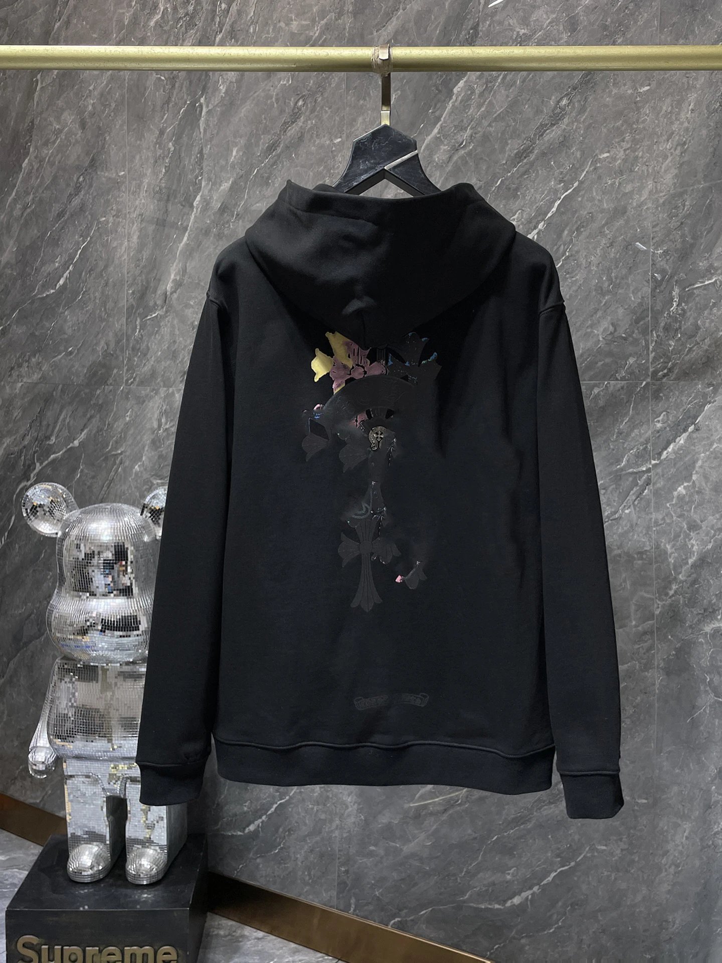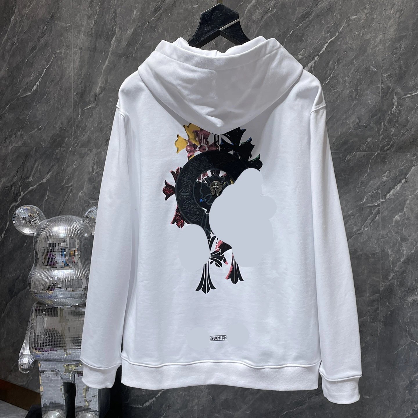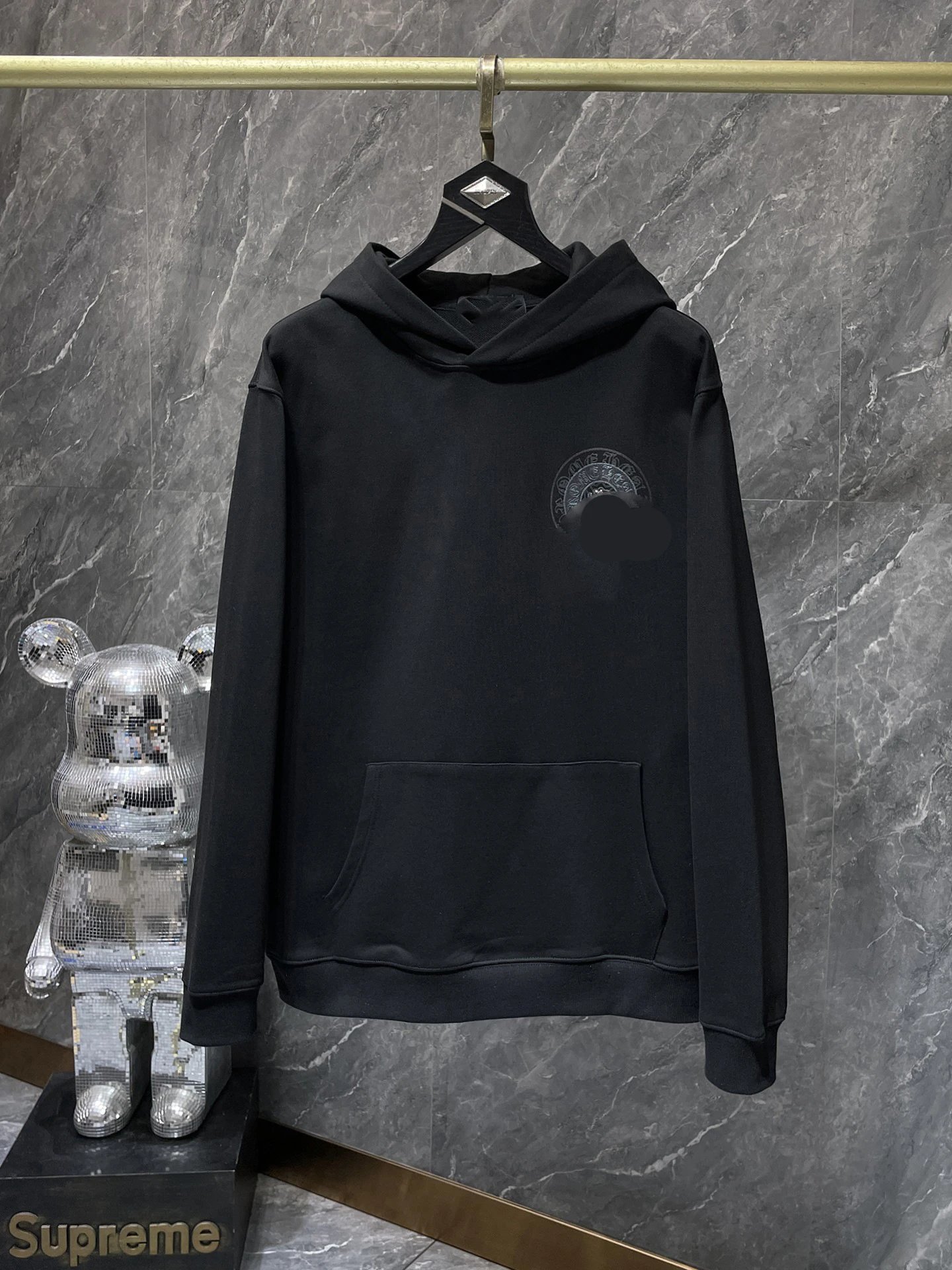 秋冬潮牌CH梵文厚色彩金属点缀刺绣连帽卫衣套头帽衫情侣款