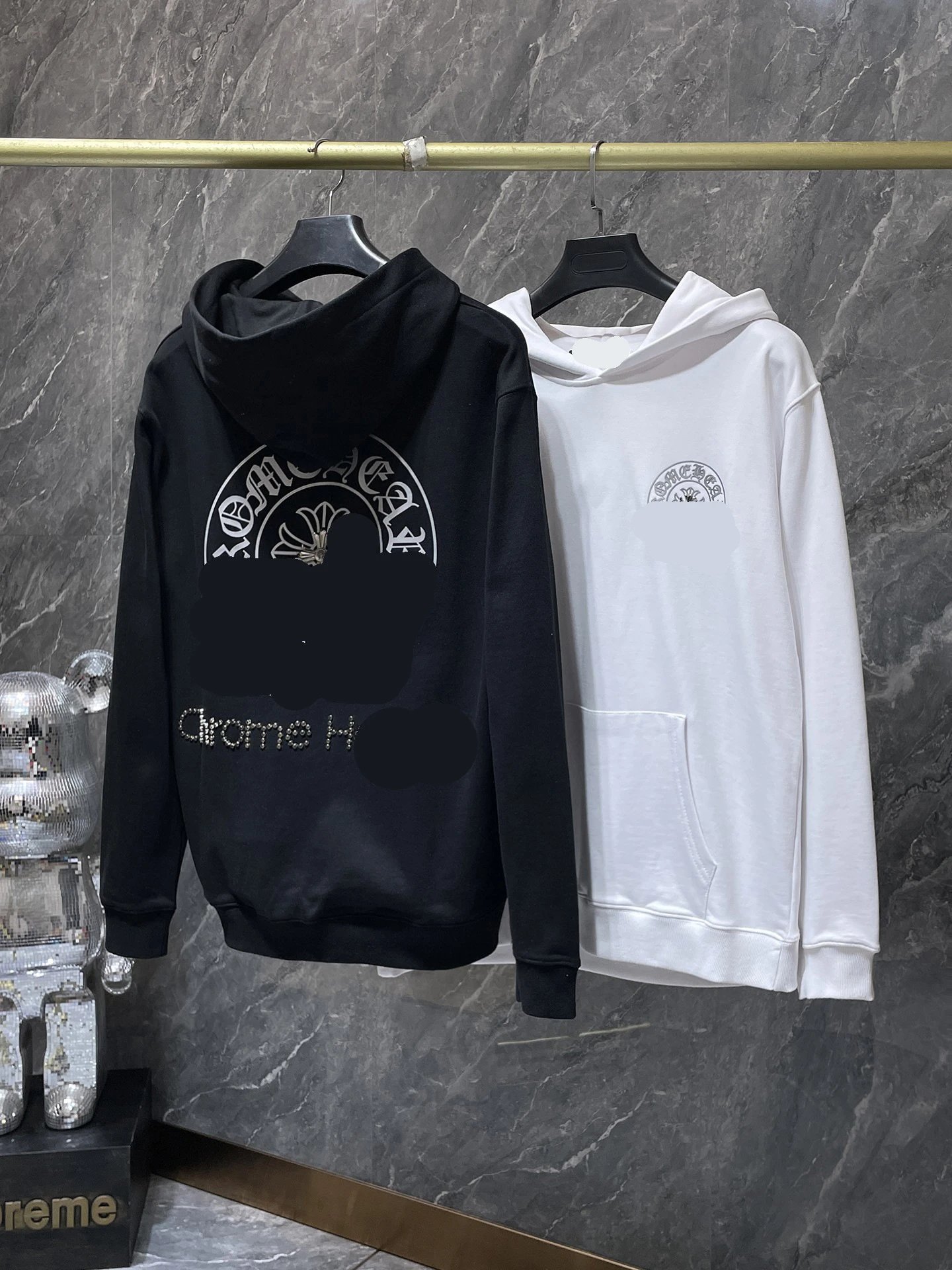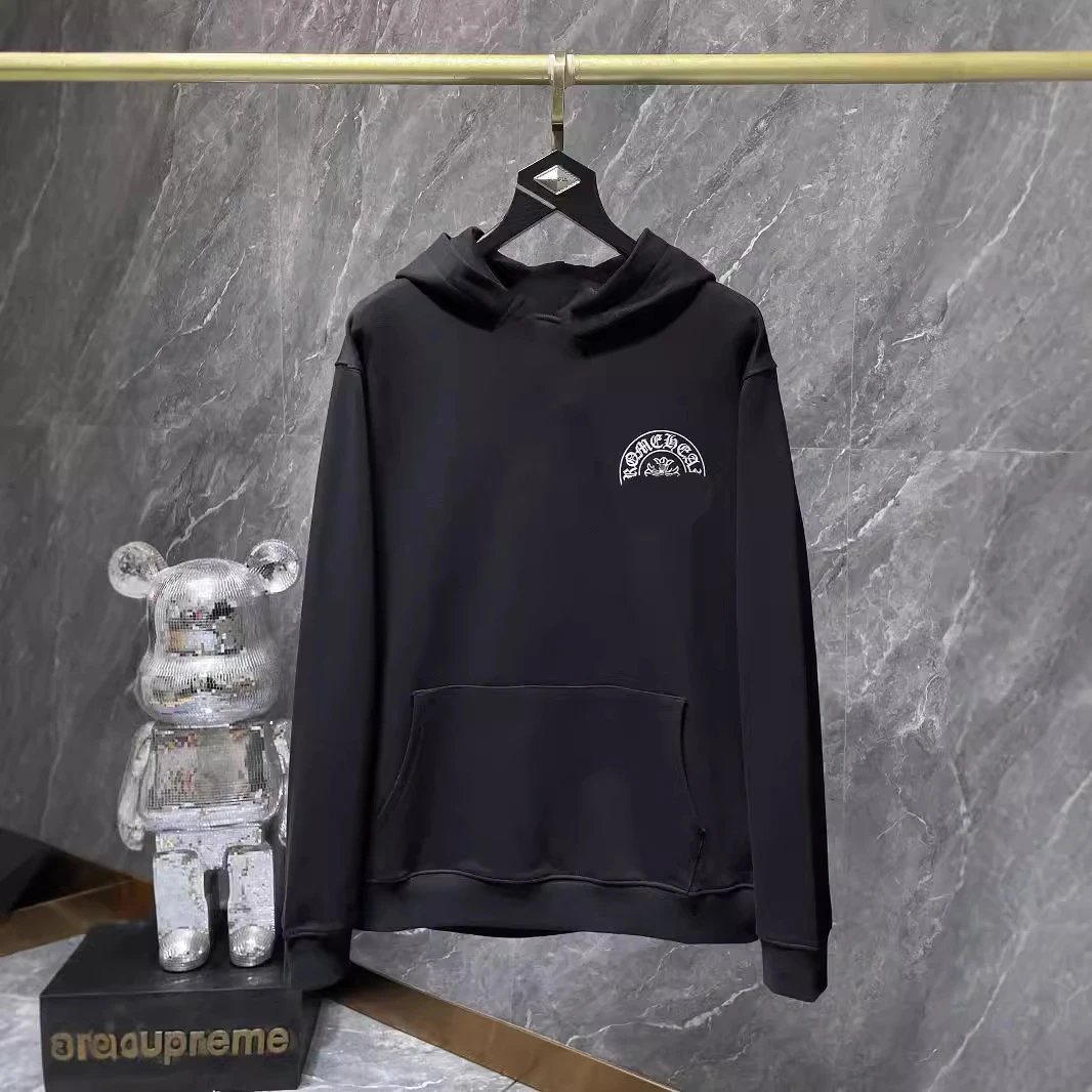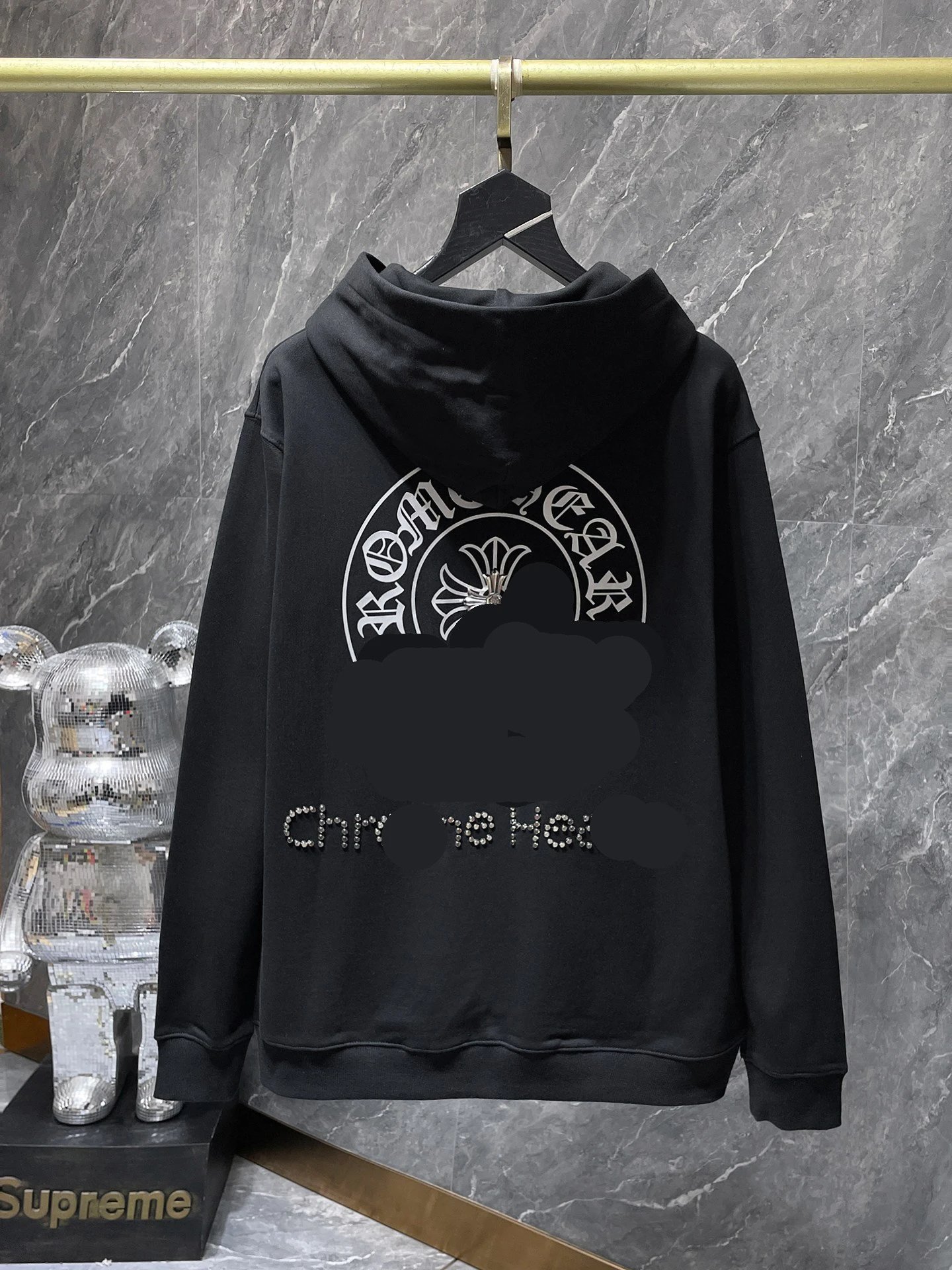 秋冬潮牌CH马蹄梵文十字架刻字膜烫钻手工钉扣套头帽衫情侣装