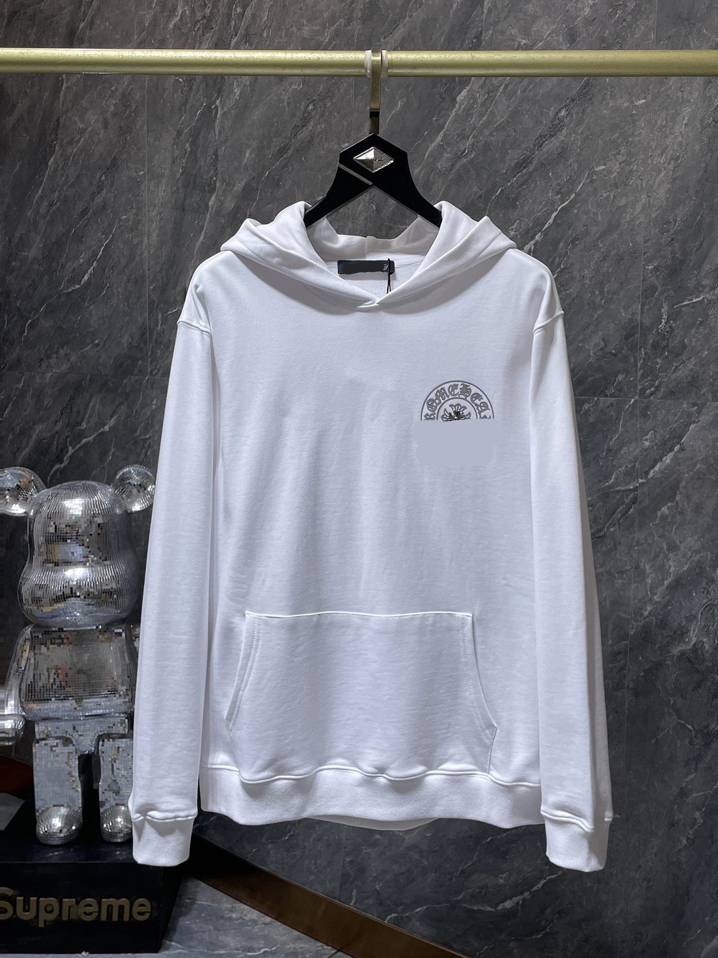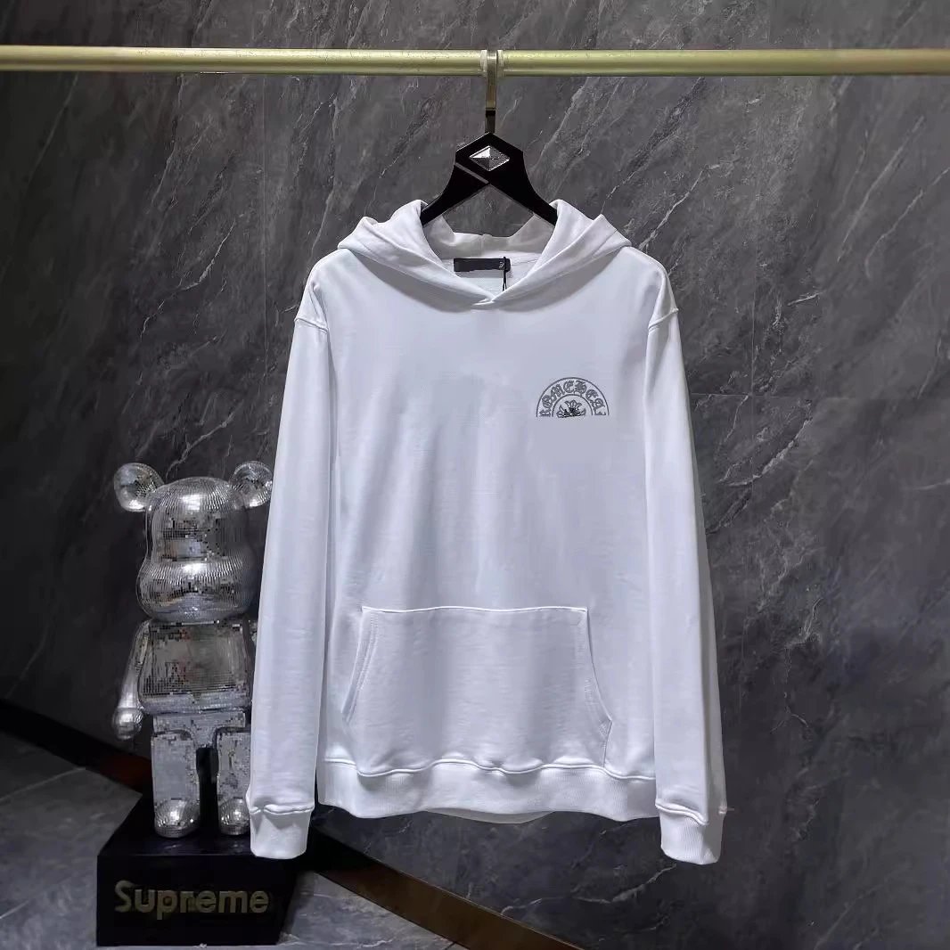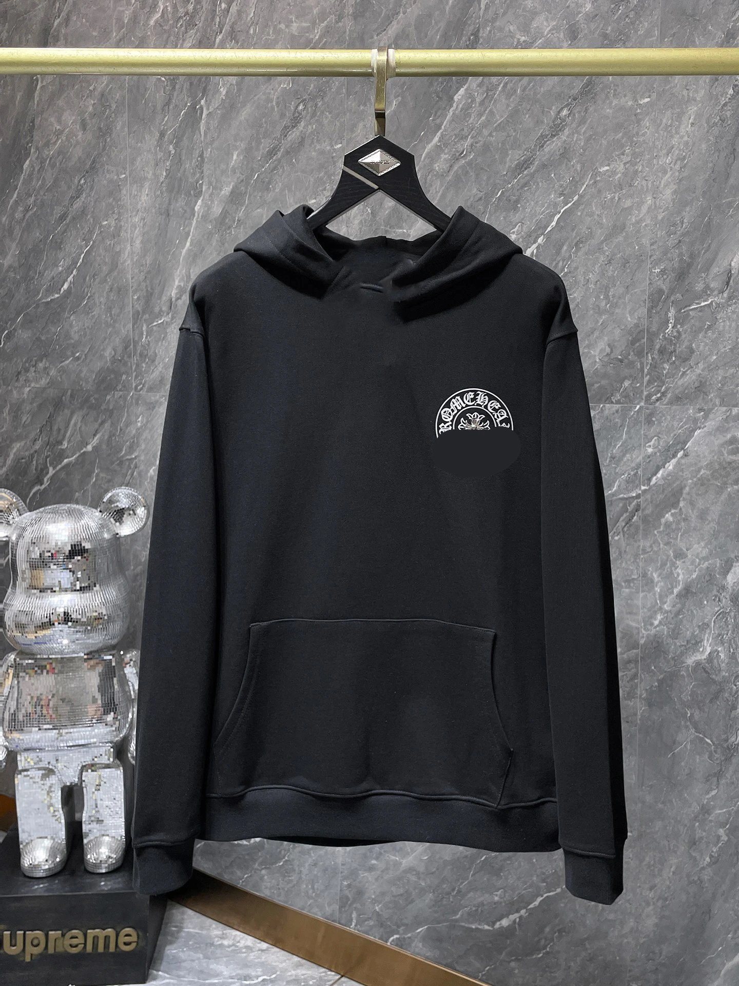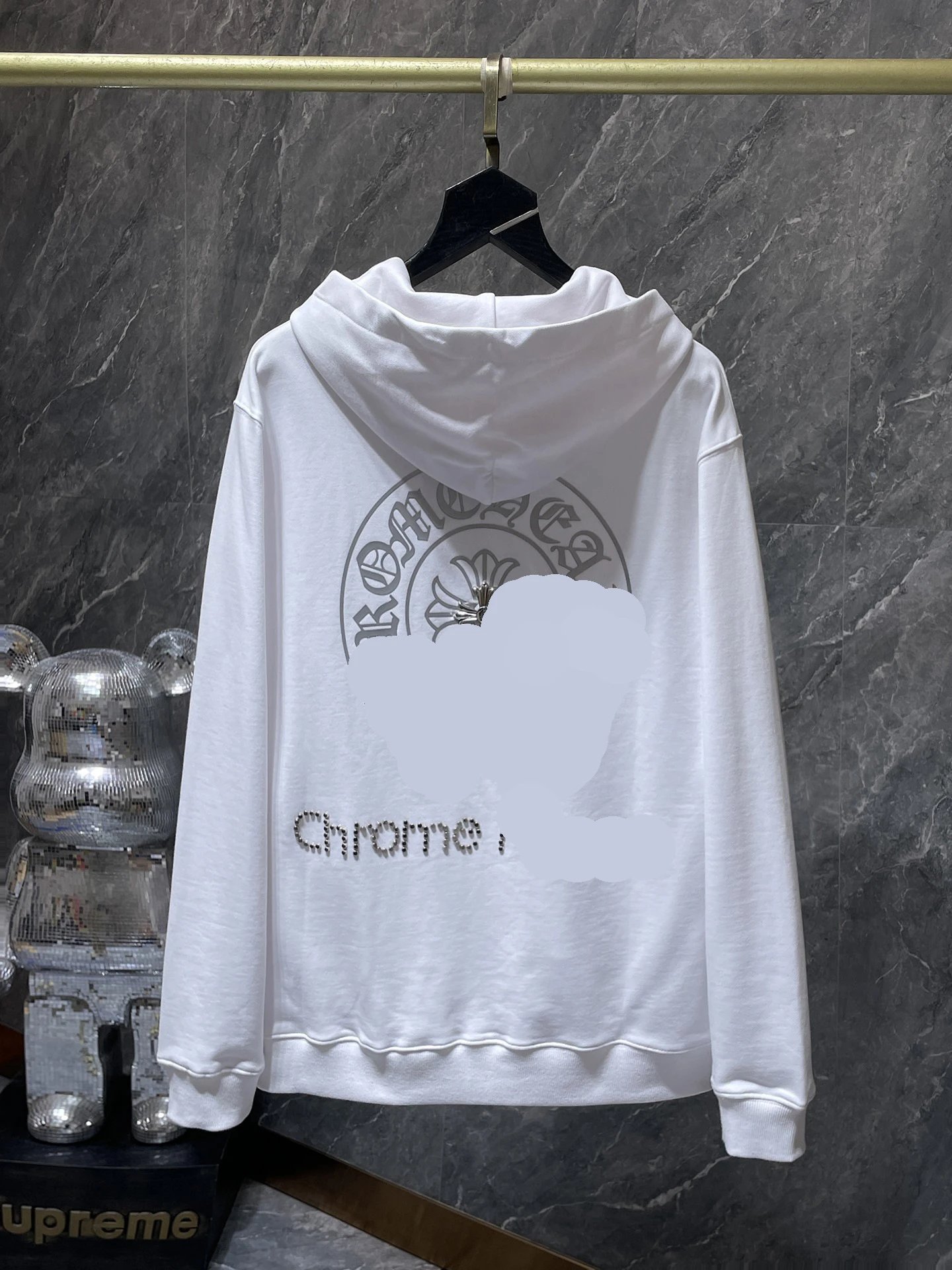 秋冬潮牌CH马蹄梵文十字架刻字膜烫钻手工钉扣套头帽衫情侣装