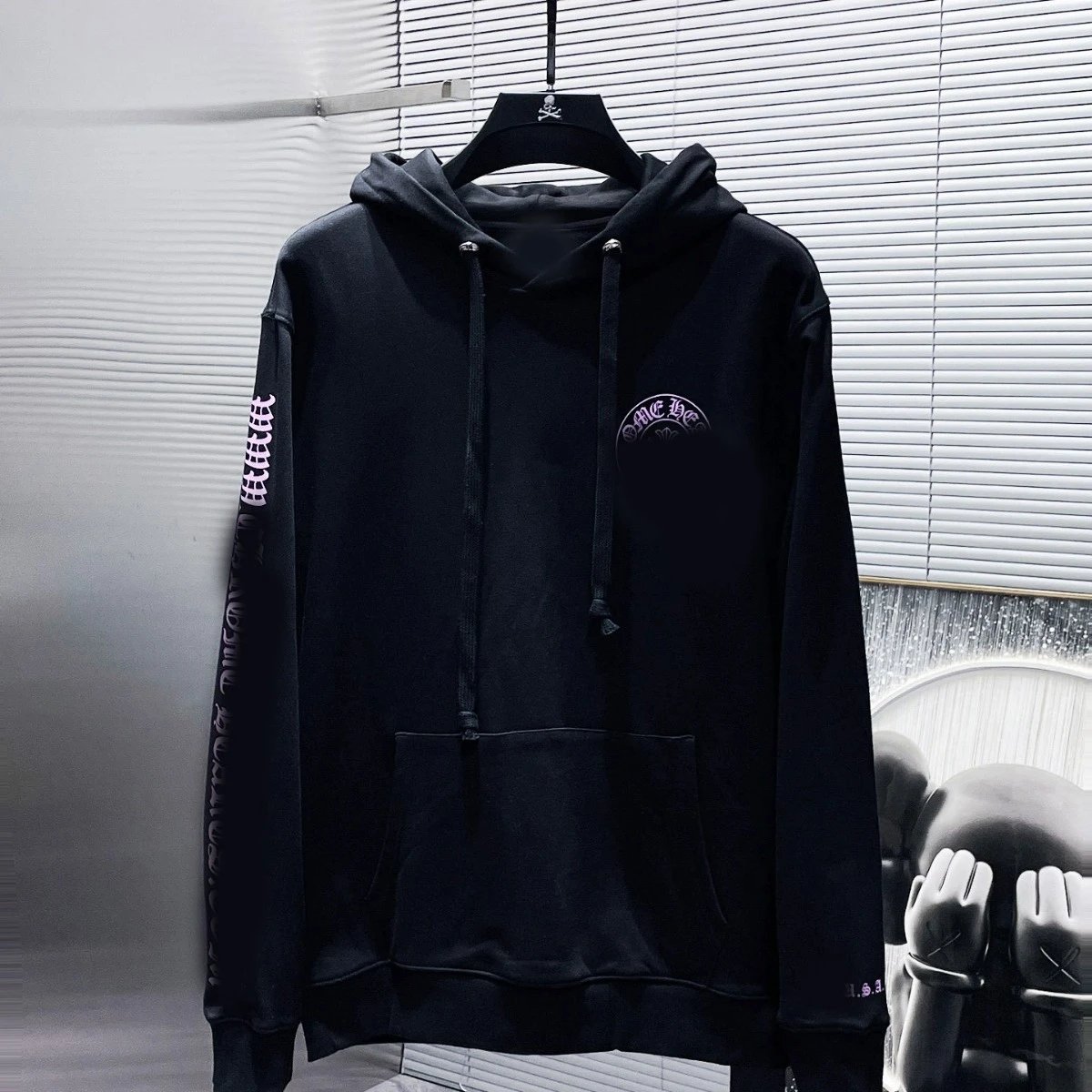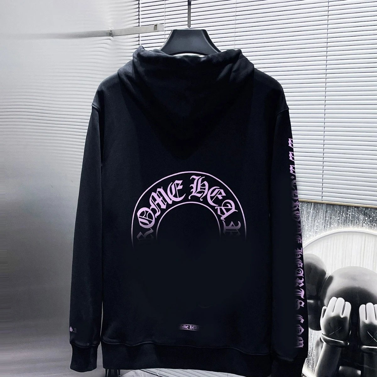 秋冬潮牌CH粉色字母卫衣宽松休闲连帽卫衣套头帽衫情侣款百搭