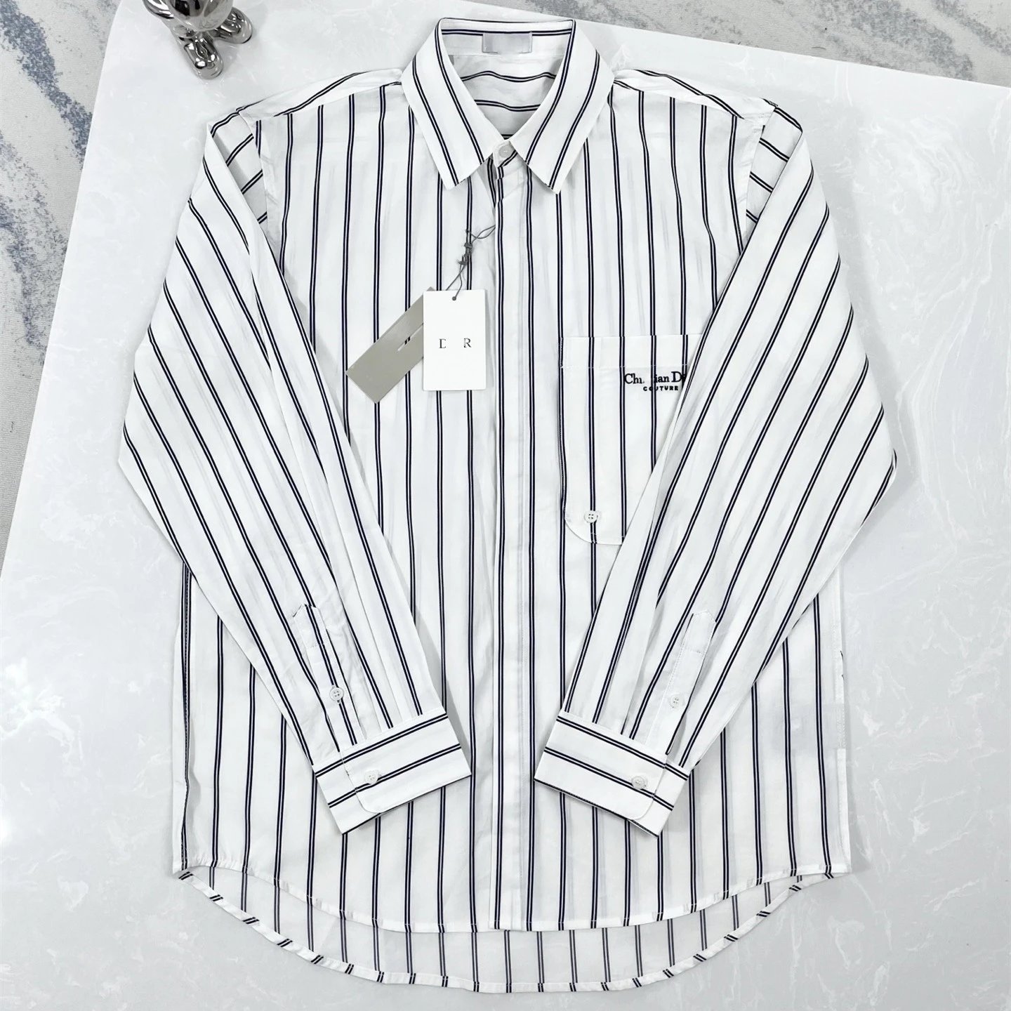 高品质DI家INS网红款条纹刺绣长袖衬衫开衫男女