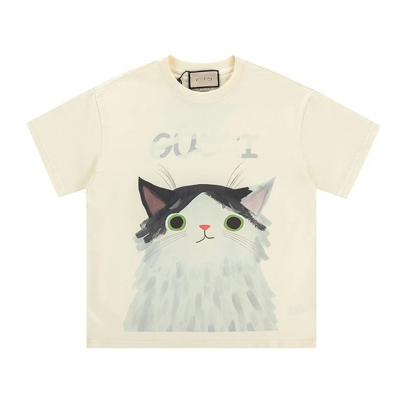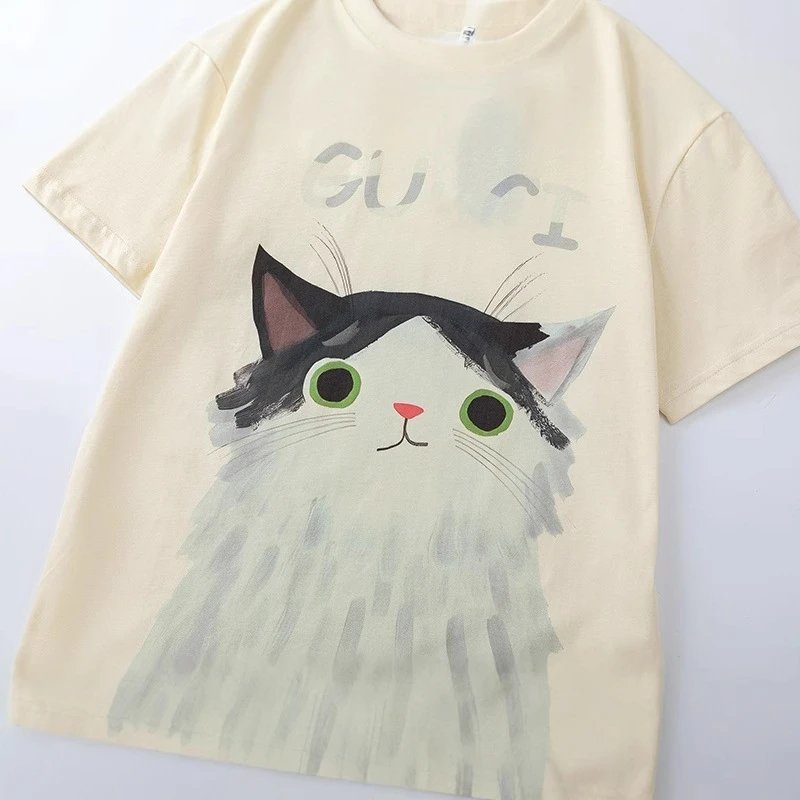 夏季新款GU家卡通系列猫咪印花纯色简约短袖T恤上衣男女