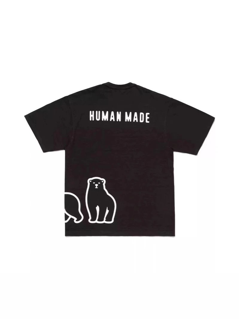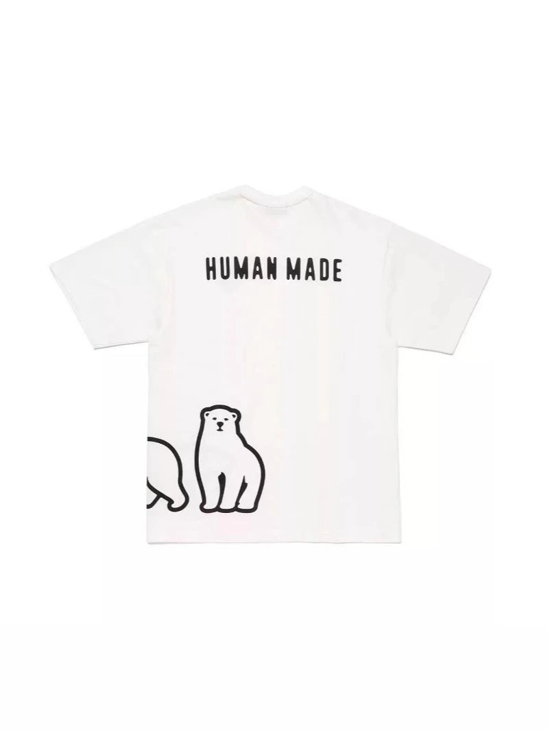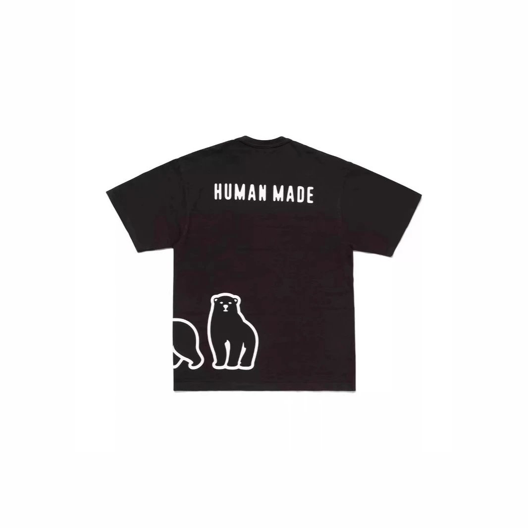 夏季潮牌Human 北极熊图案250克竹节棉短袖T恤宽松男女情侣款打底