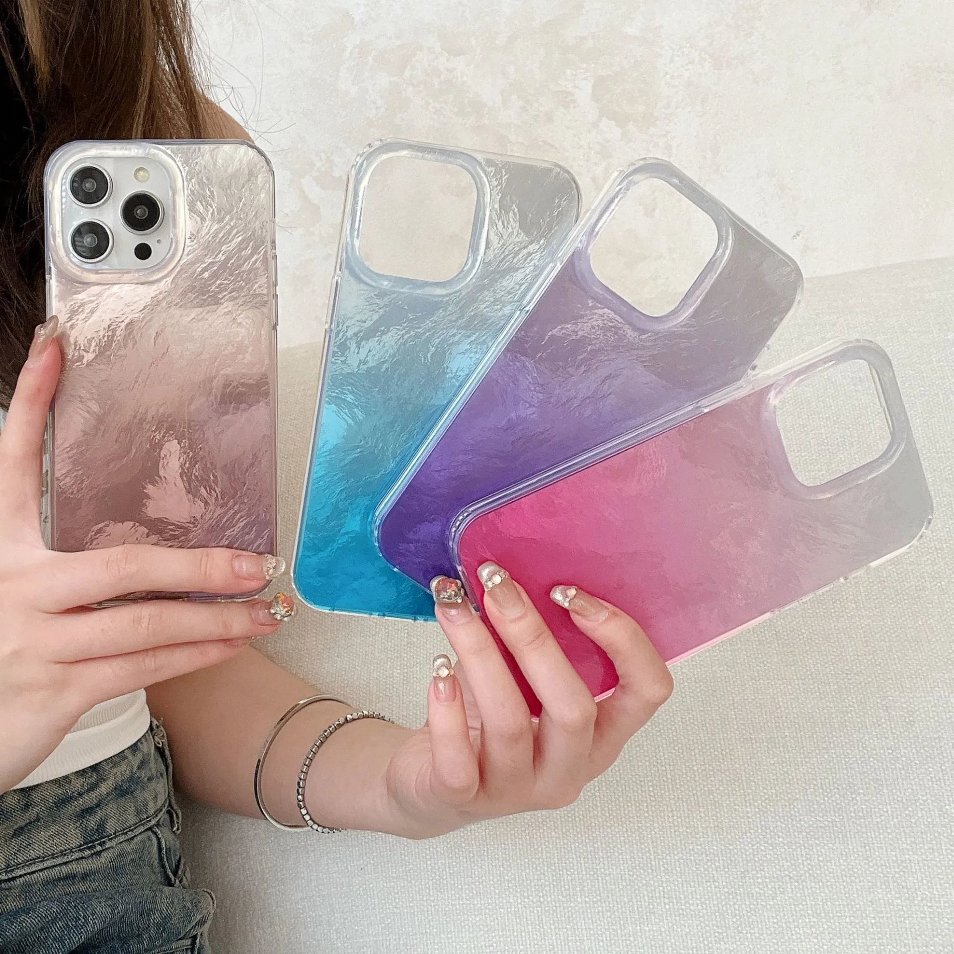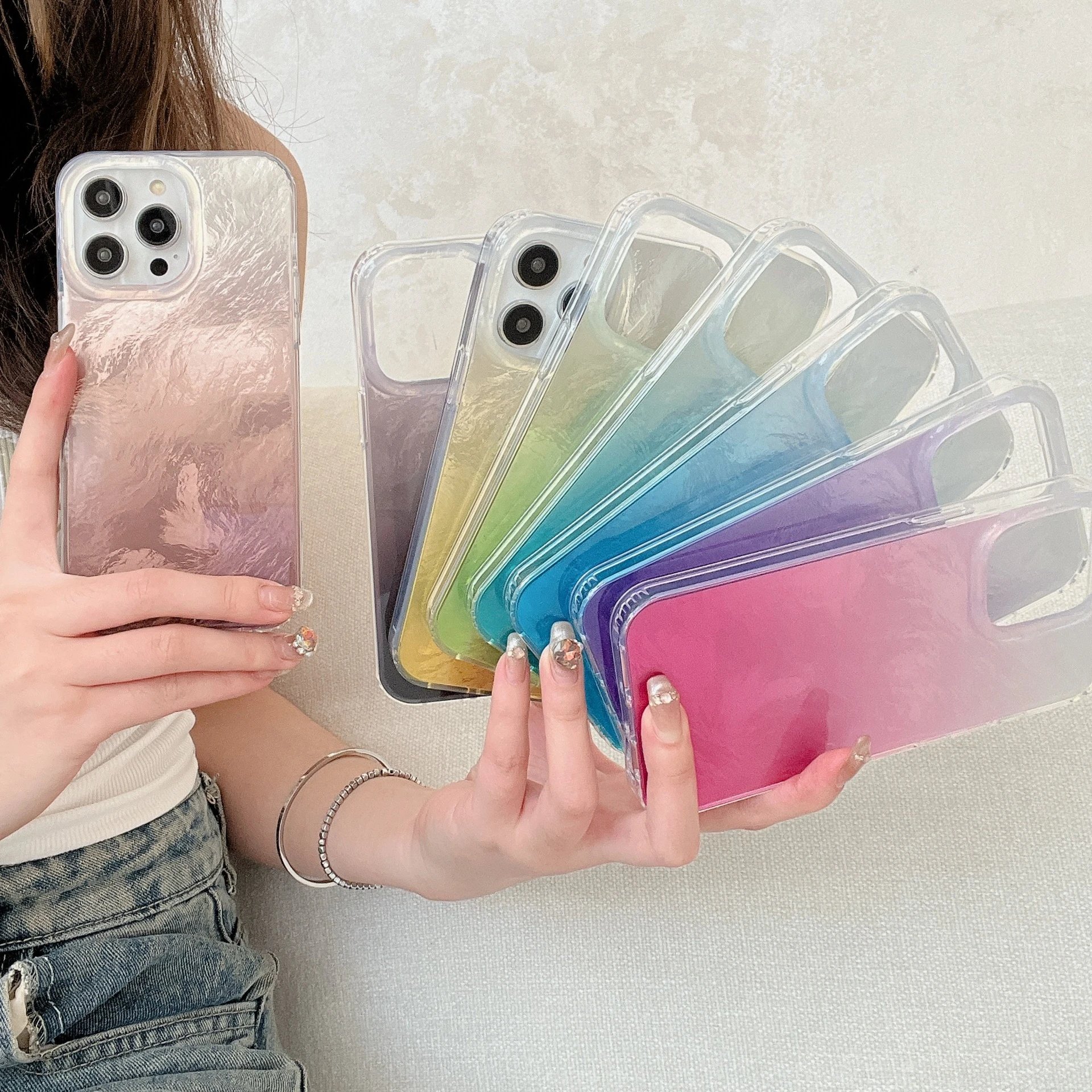 夏天新款双面IMD苹果15promax手机壳晕染极光渐变13防摔16pro女款
