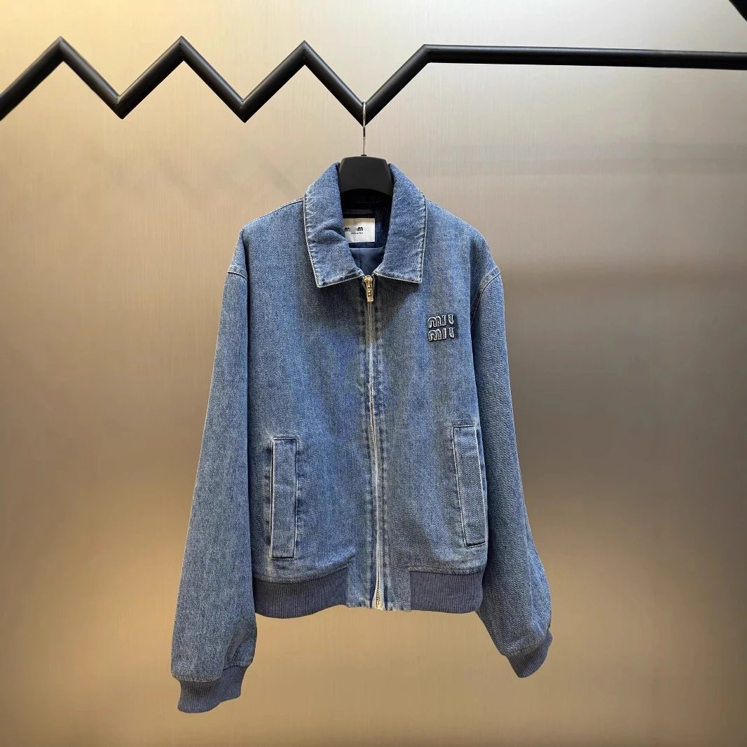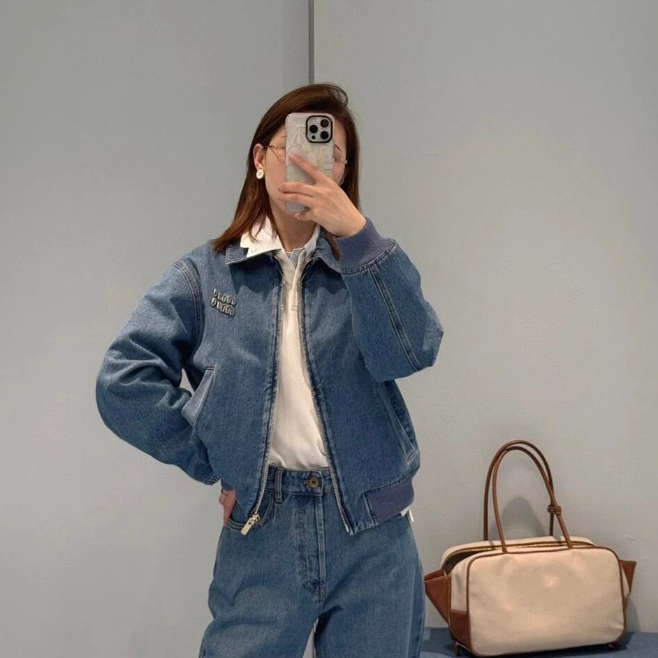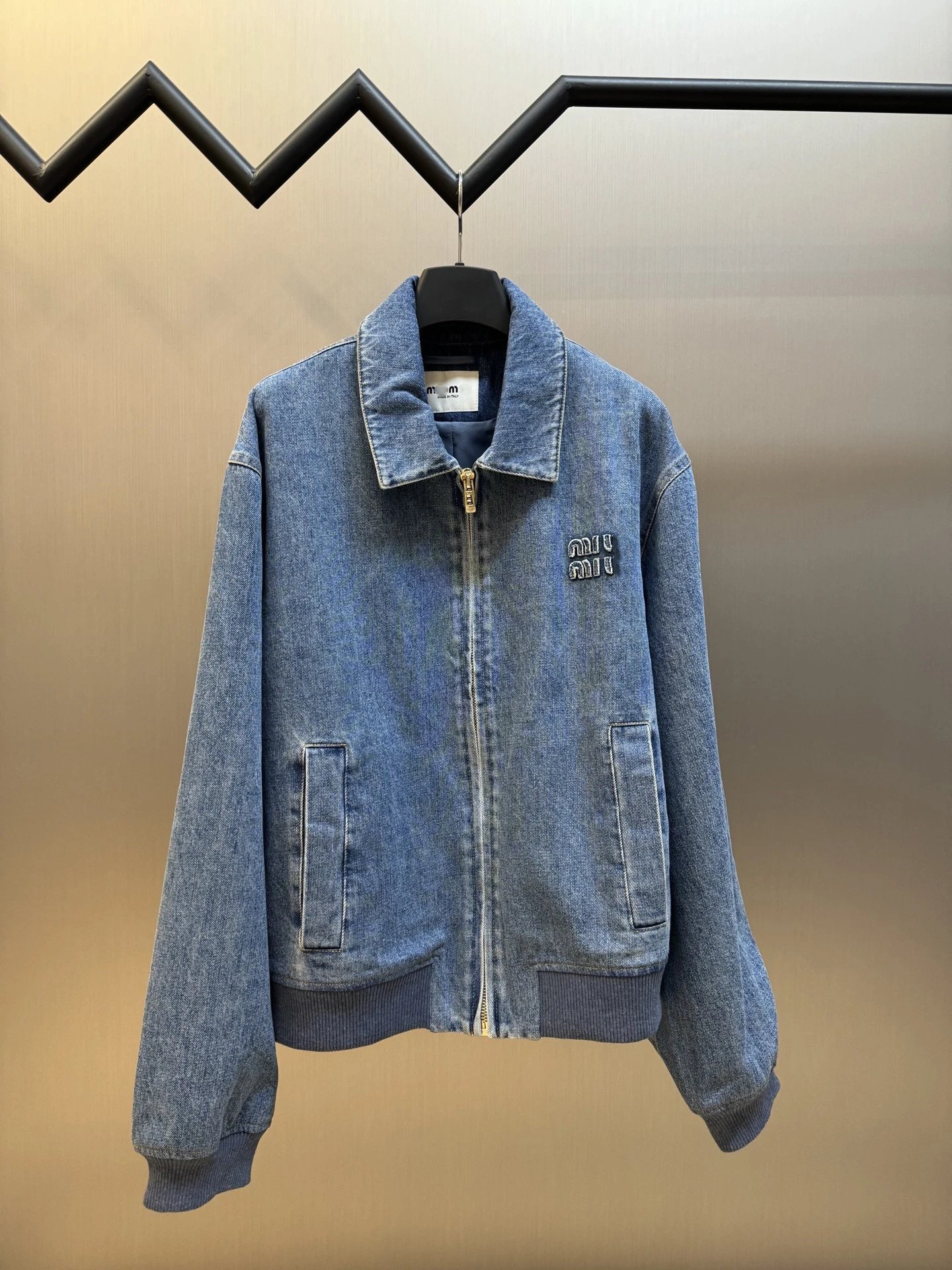 MIU家 贴布刺绣字母水洗复古 牛仔衣男女宽松夹克外套