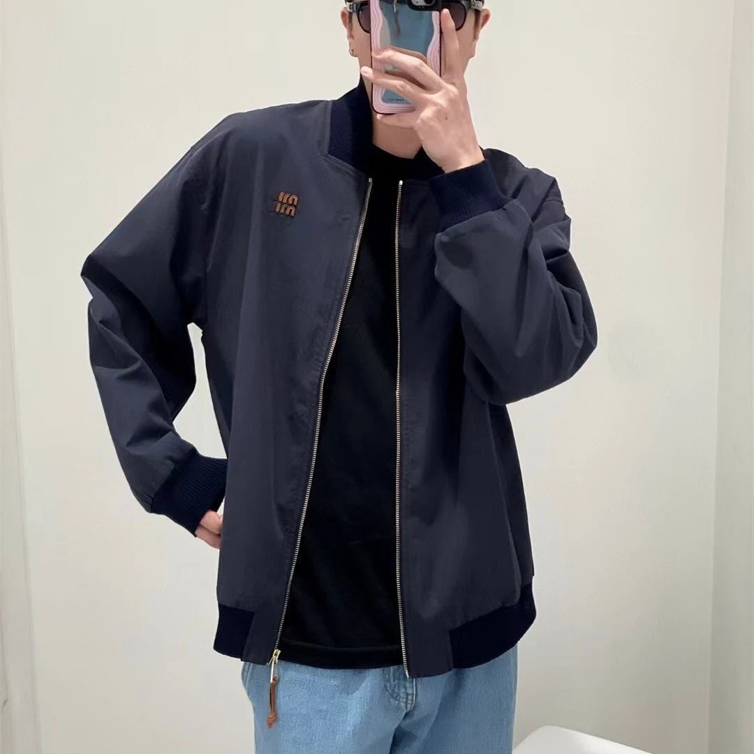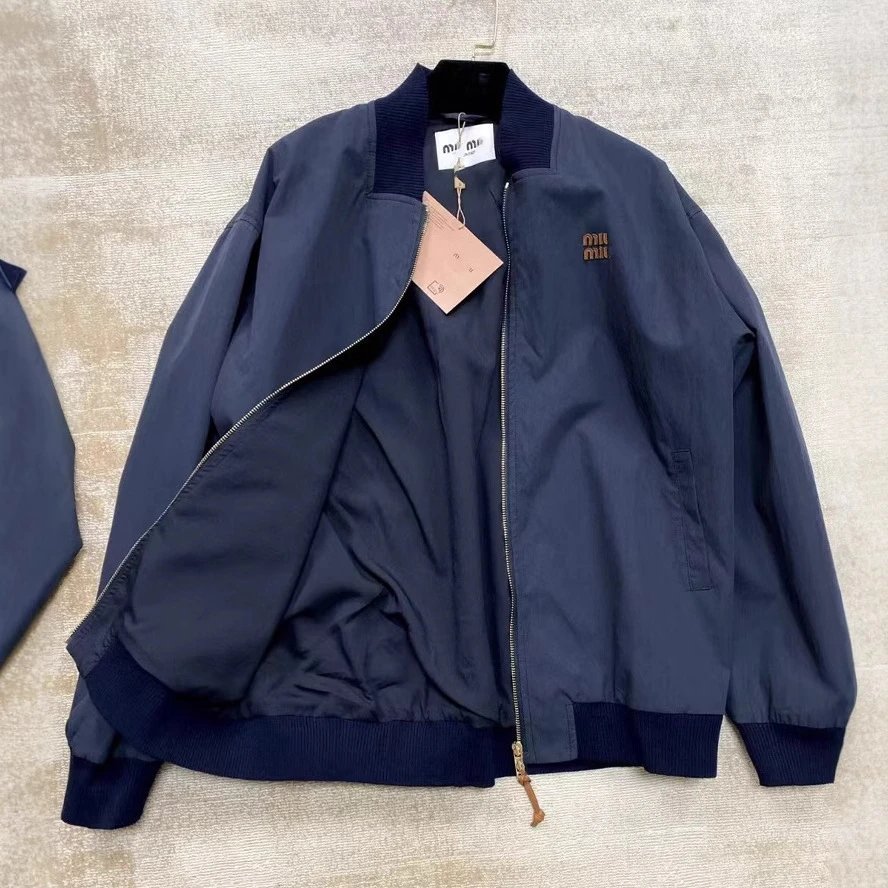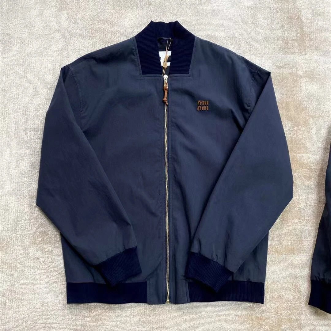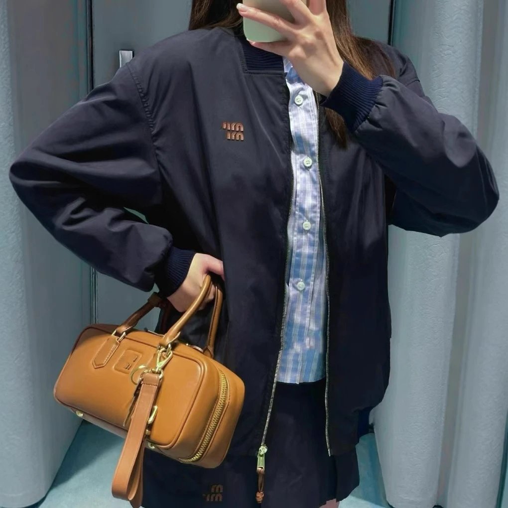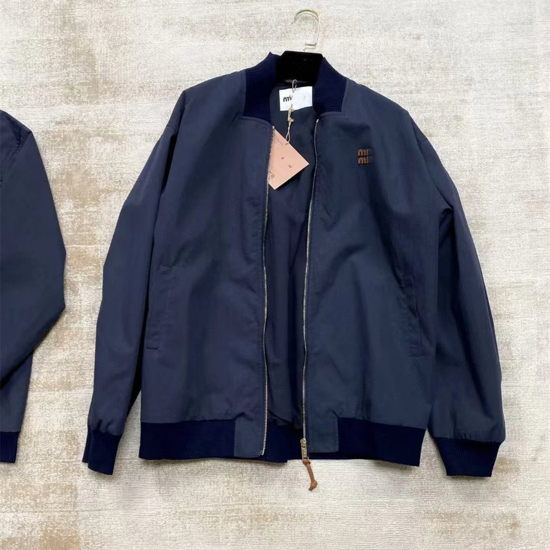 MIU家巴拿马棉质飞行员纯色夹克外套男女开衫