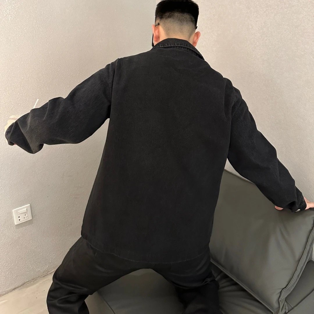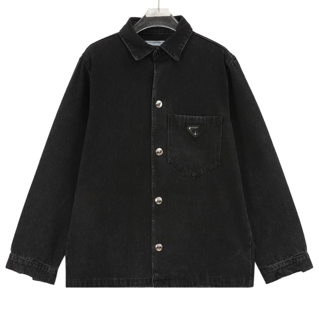 P家走秀款网红款水洗三角标牛仔衬衫男女宽松牛仔衣外套