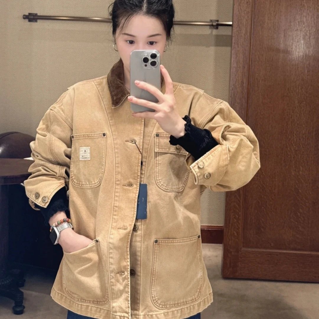 本RL拉夫小马刺绣郑秀晶同款巴恩风帆布工装夹克开衫外套
