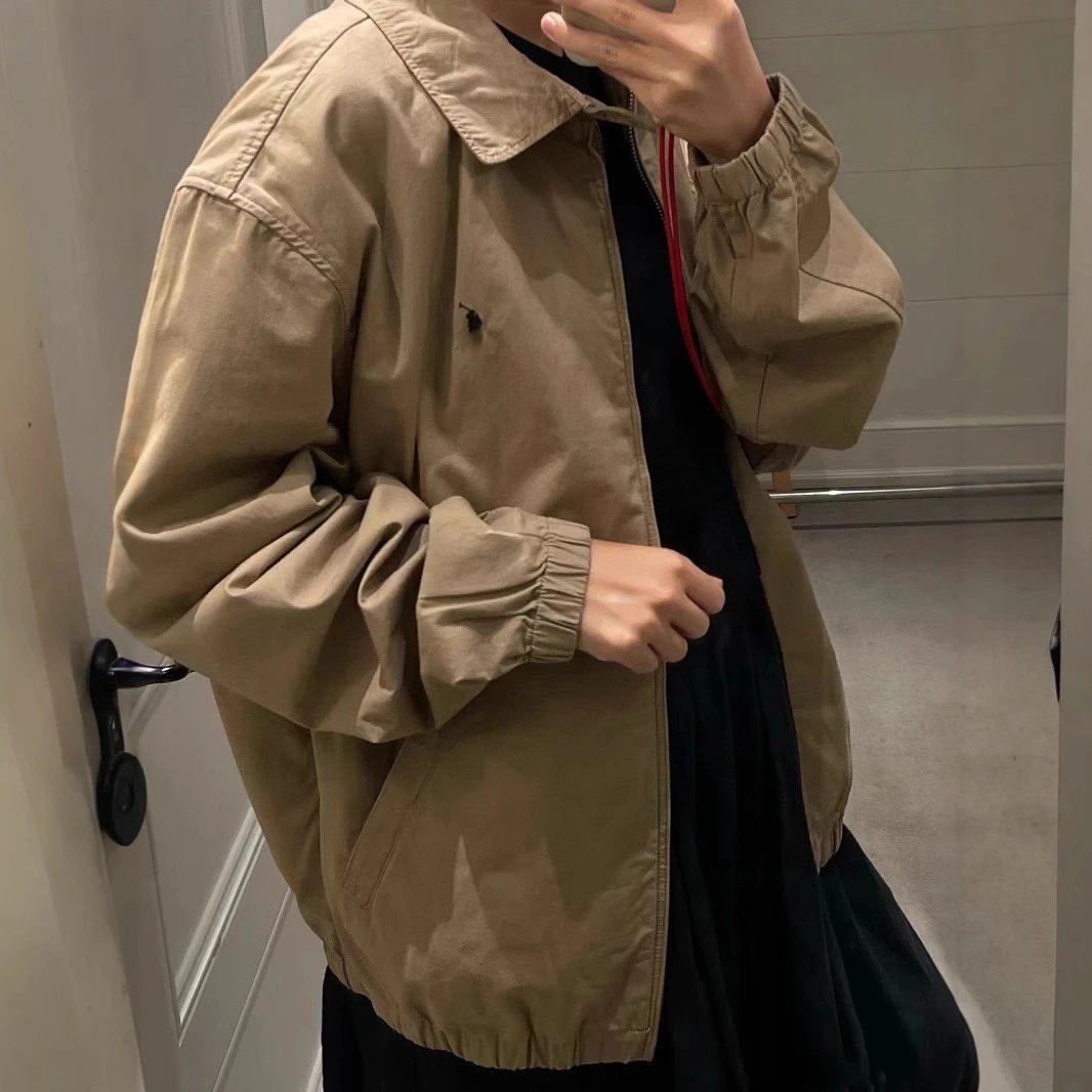 早春新款RL拉夫小马网红款古着复古拉链薄款夹克外套男女