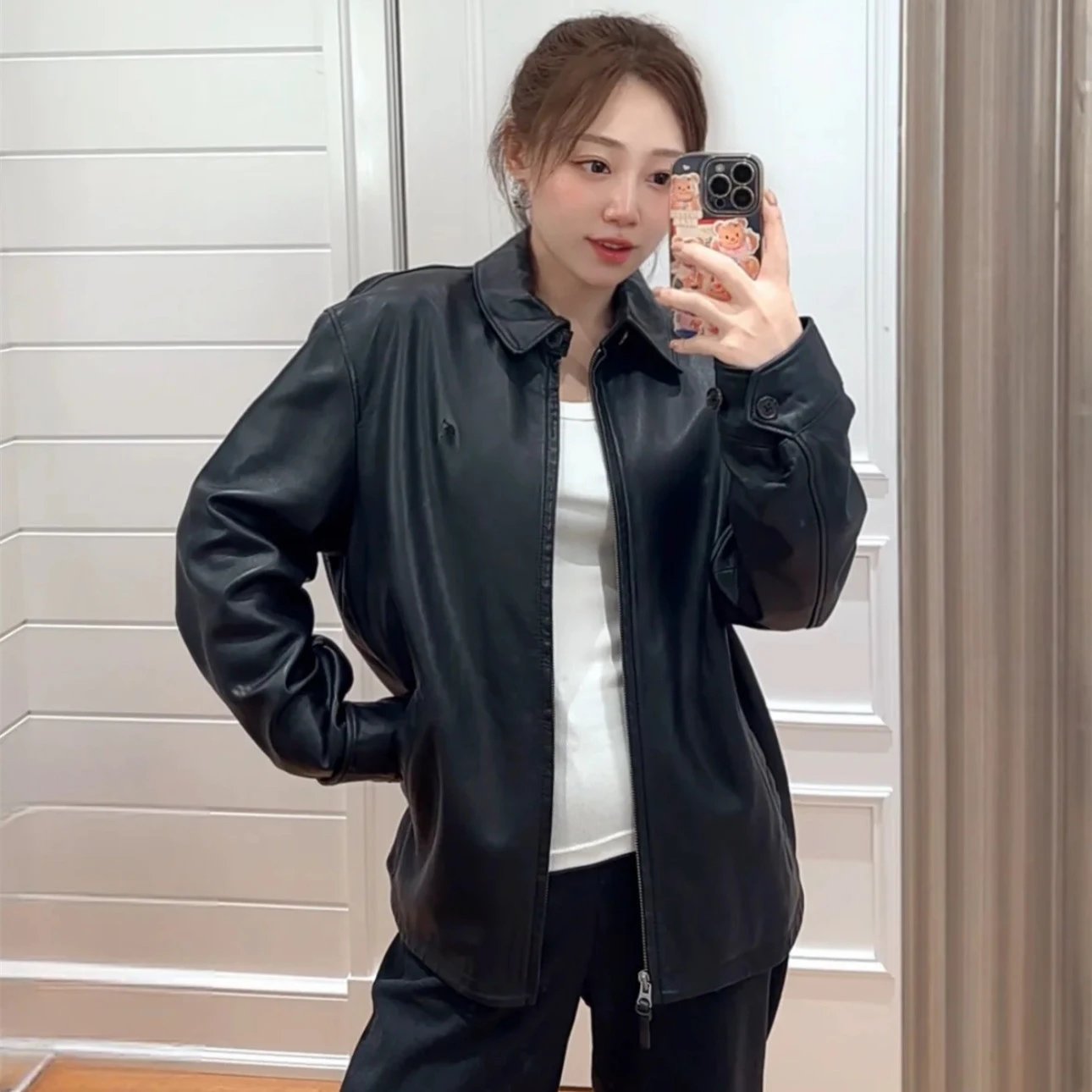 早春新款RL拉夫小马经典刺绣拉链翻领长袖皮衣夹克外套男女