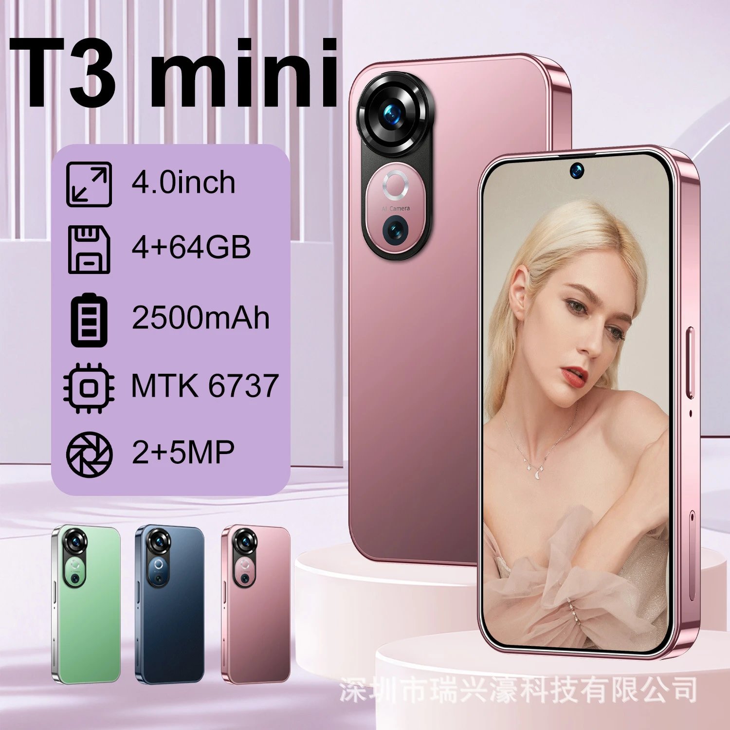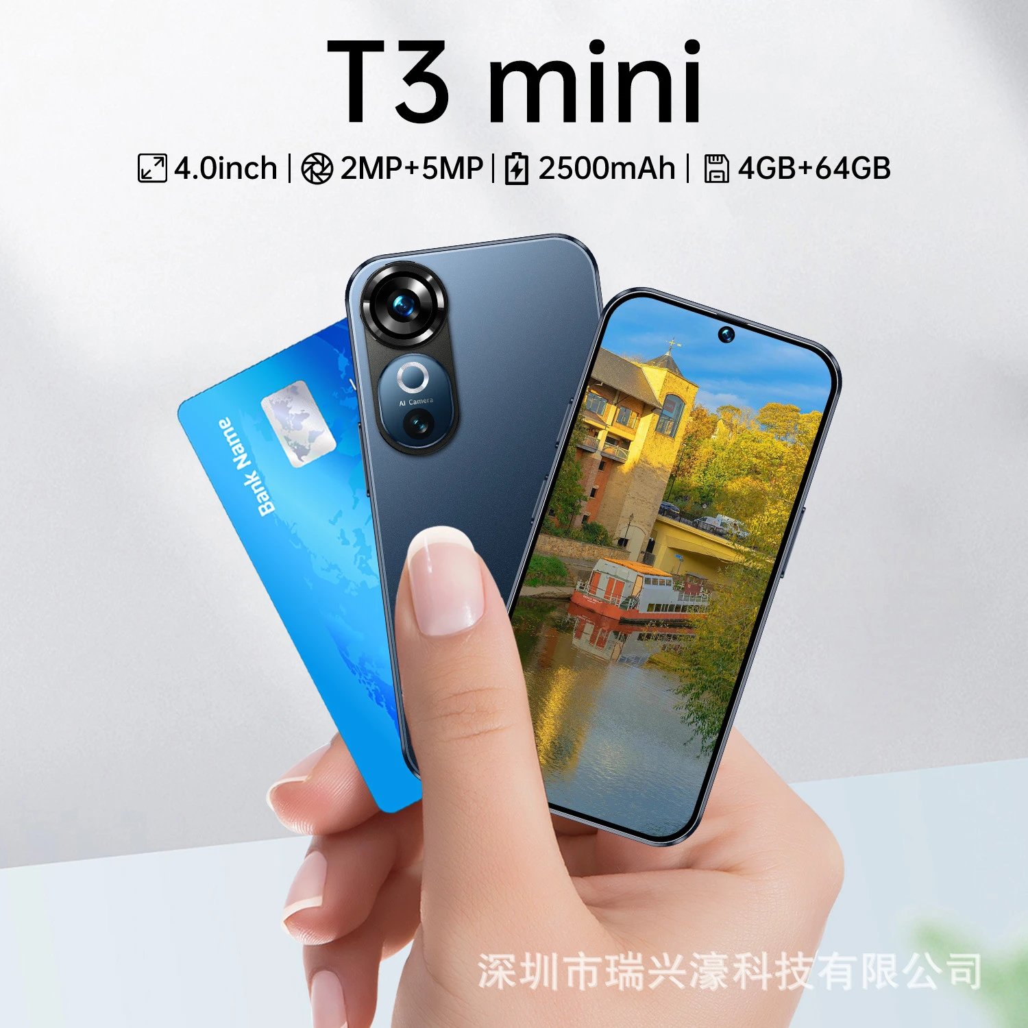 新款手机T3 Mini 4.0寸穿孔屏4+64GB智能手机OZON热销