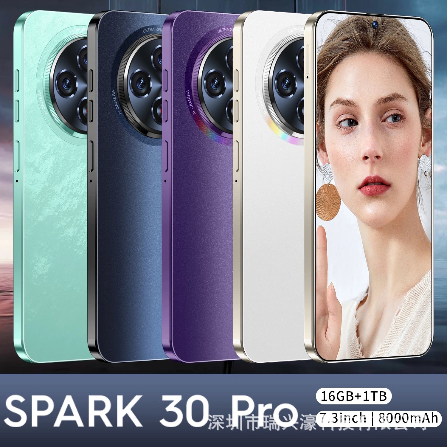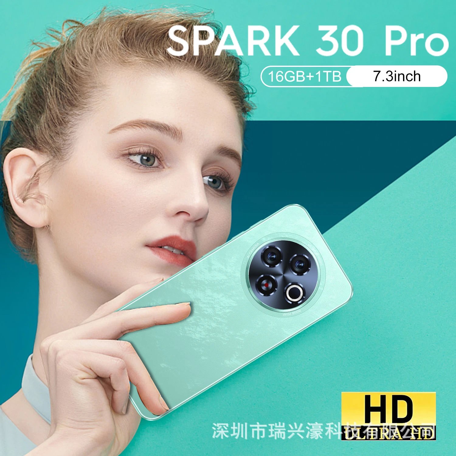 TK新款热销手机Spark30 Pro穿孔屏7.3大屏16+1TB代贴