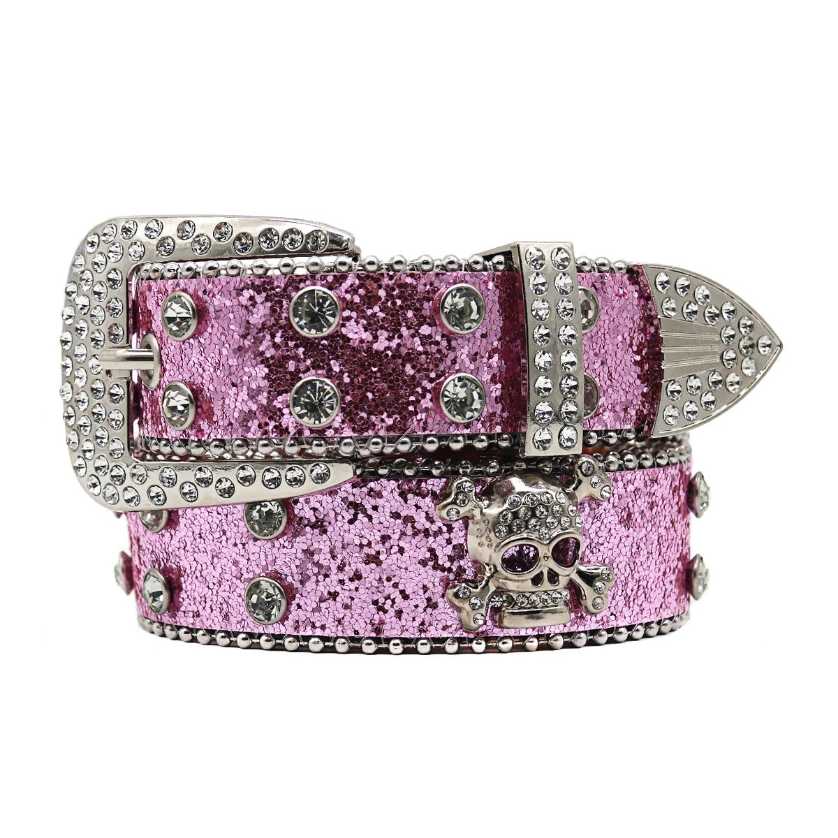 跨境皮带水钻骷髅头宽腰带镶嵌闪钻嘻哈朋克个性时尚非主流批发