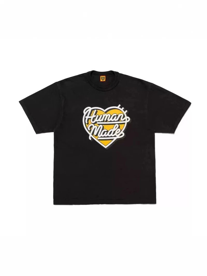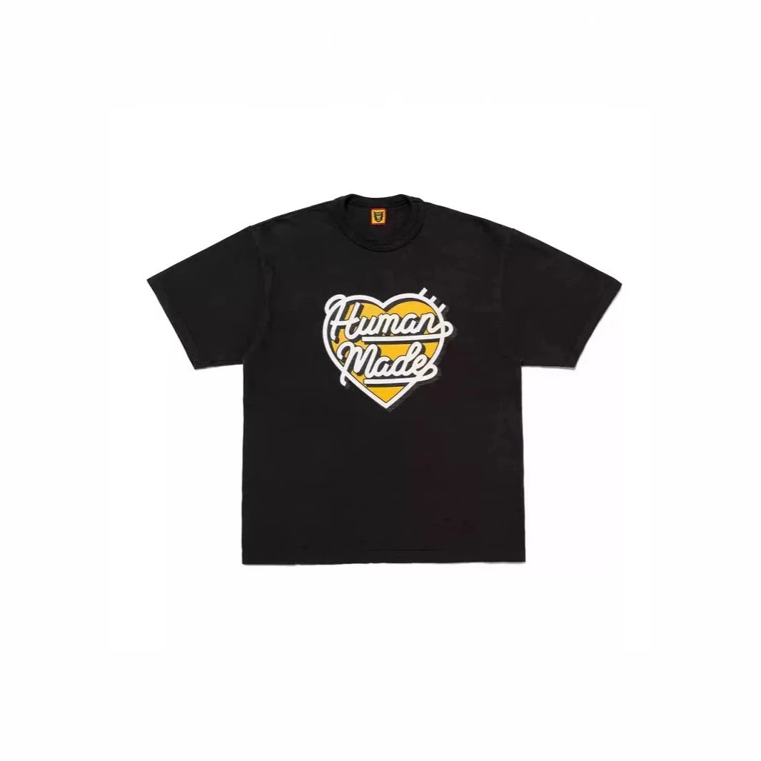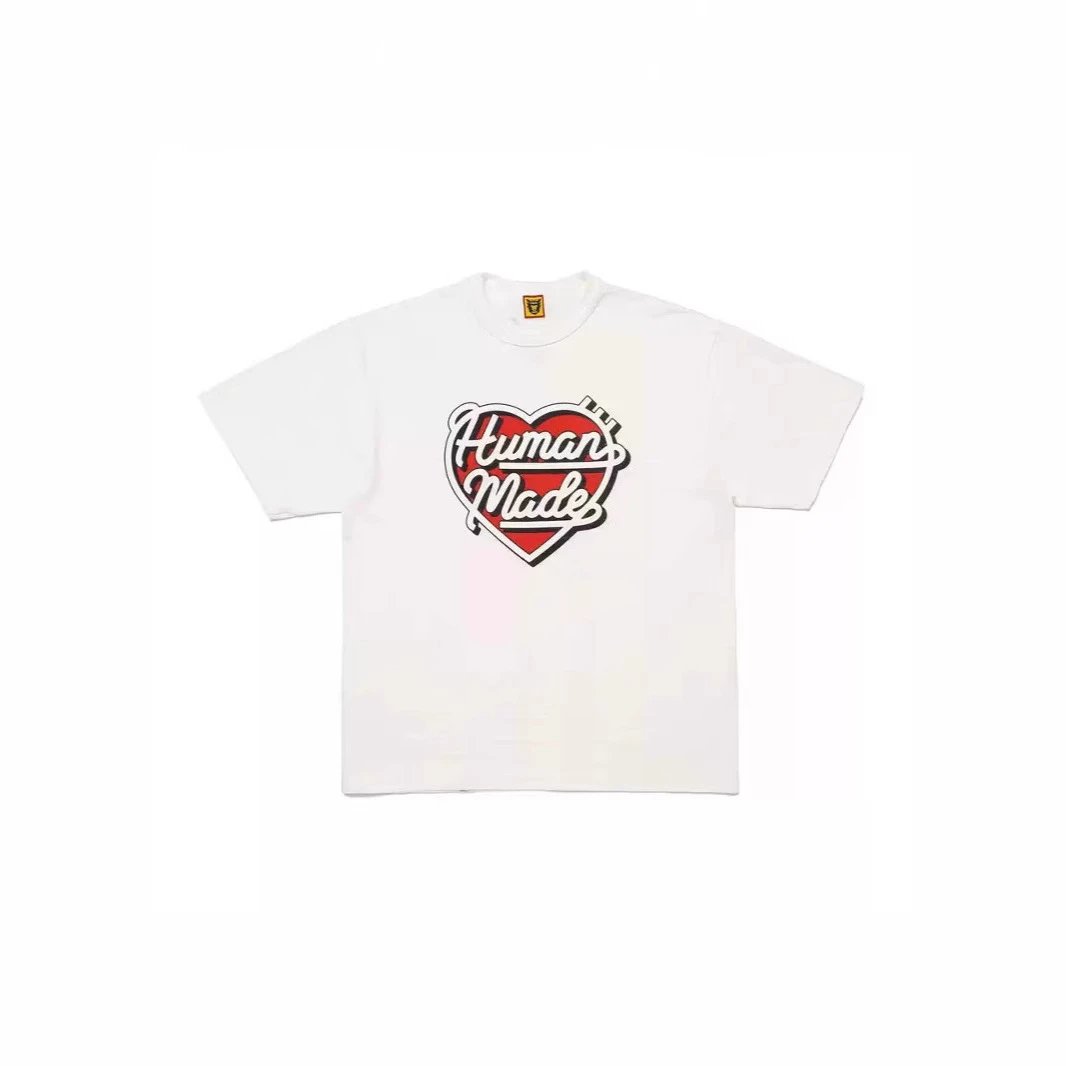 日系潮牌human 爱心图案宽松男女情侣款圆筒短袖T恤半袖TEE打底衫