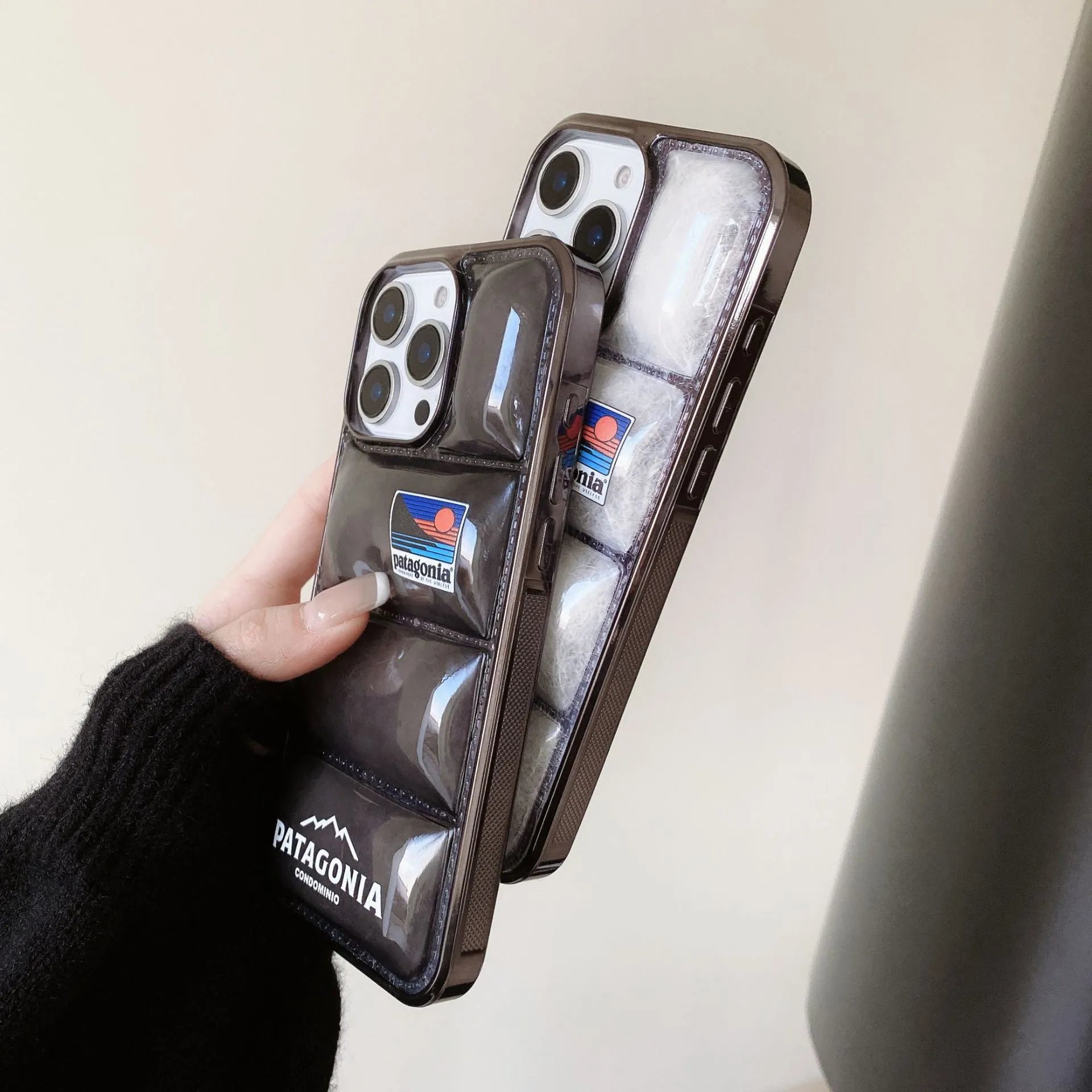 适用iPhone16promax手机壳透明真空绒羽绒服苹果1311情侣