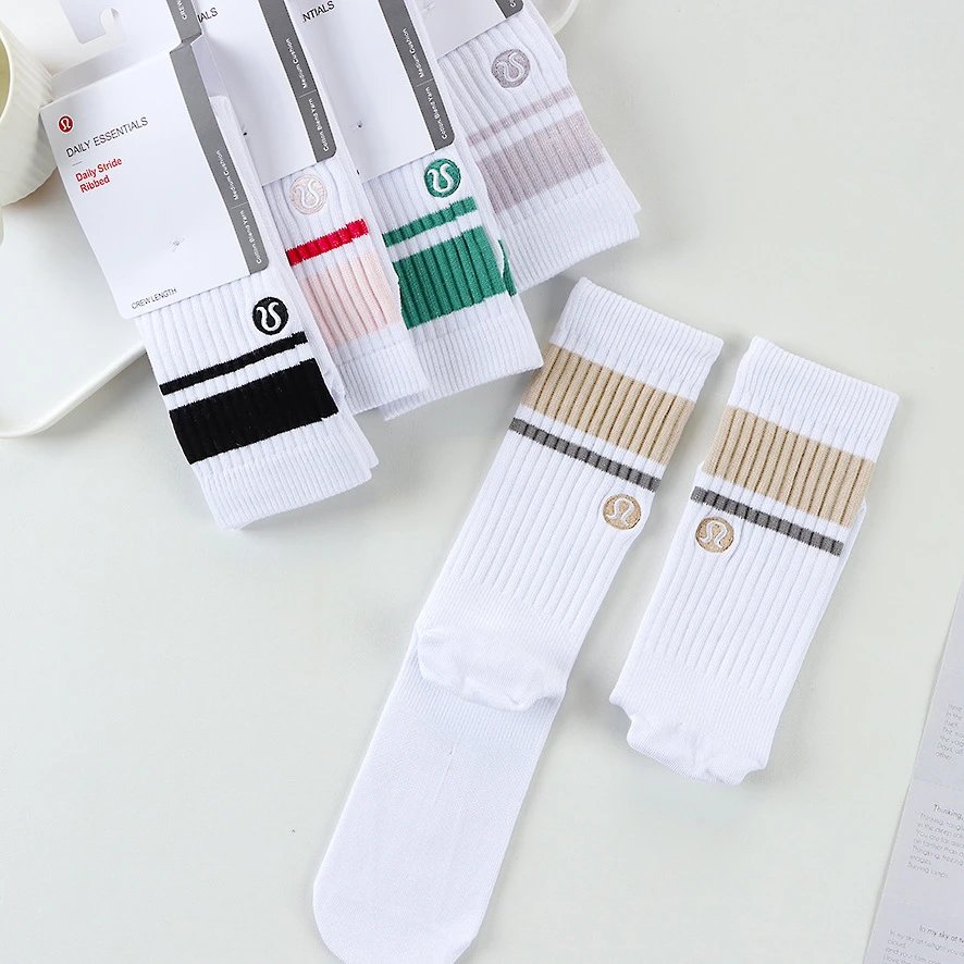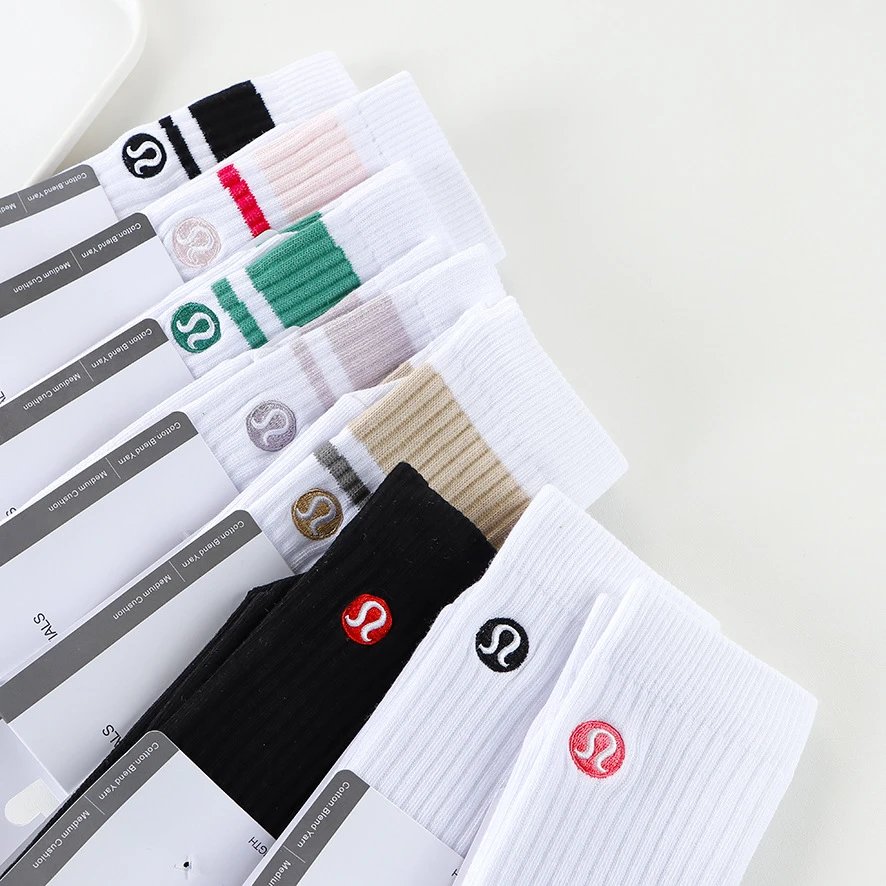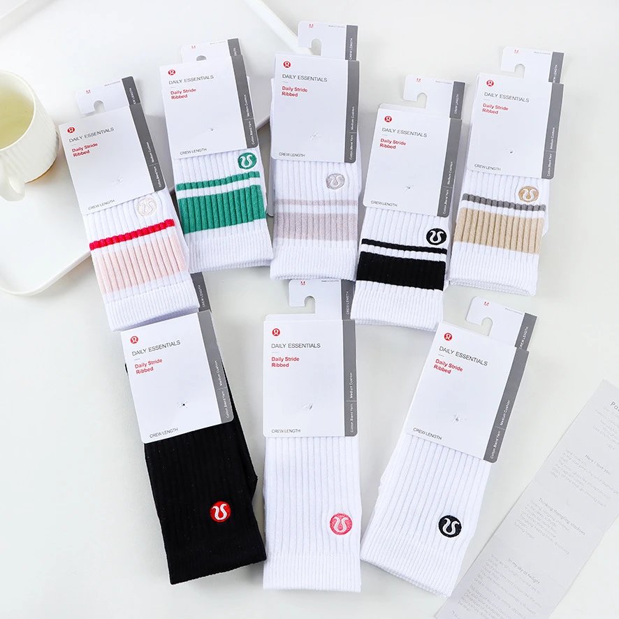 lulu刺绣款袜子女四季瑜伽袜防滑普拉提健身跑步男女ins百搭ins风