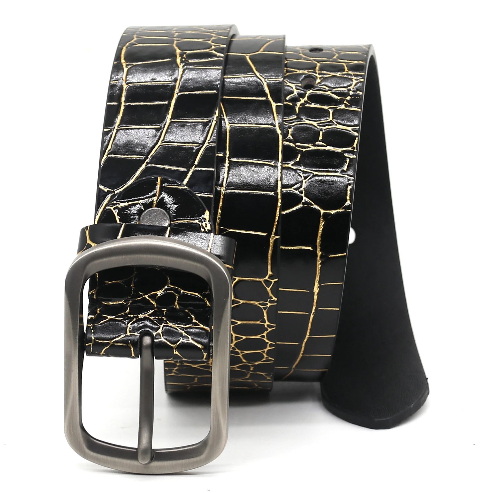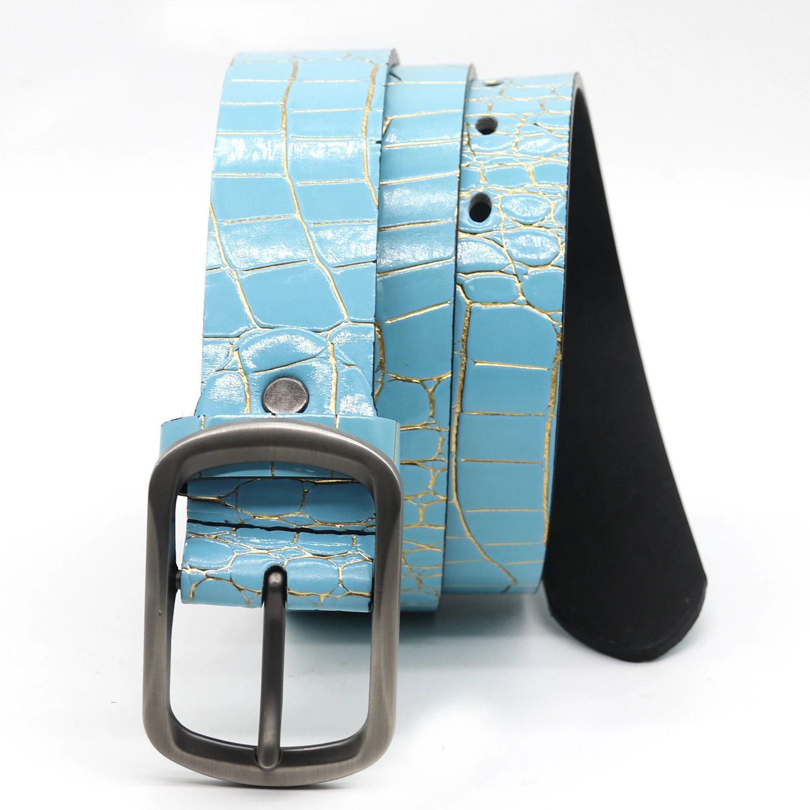 广州新款pu皮带男士女士时尚鳄鱼纹理简约潮流复古针扣裤腰带男